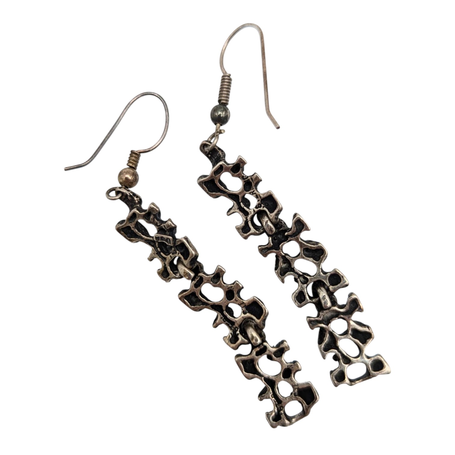 Sterling Dangle Earrings with Textured Design 7.43g USA