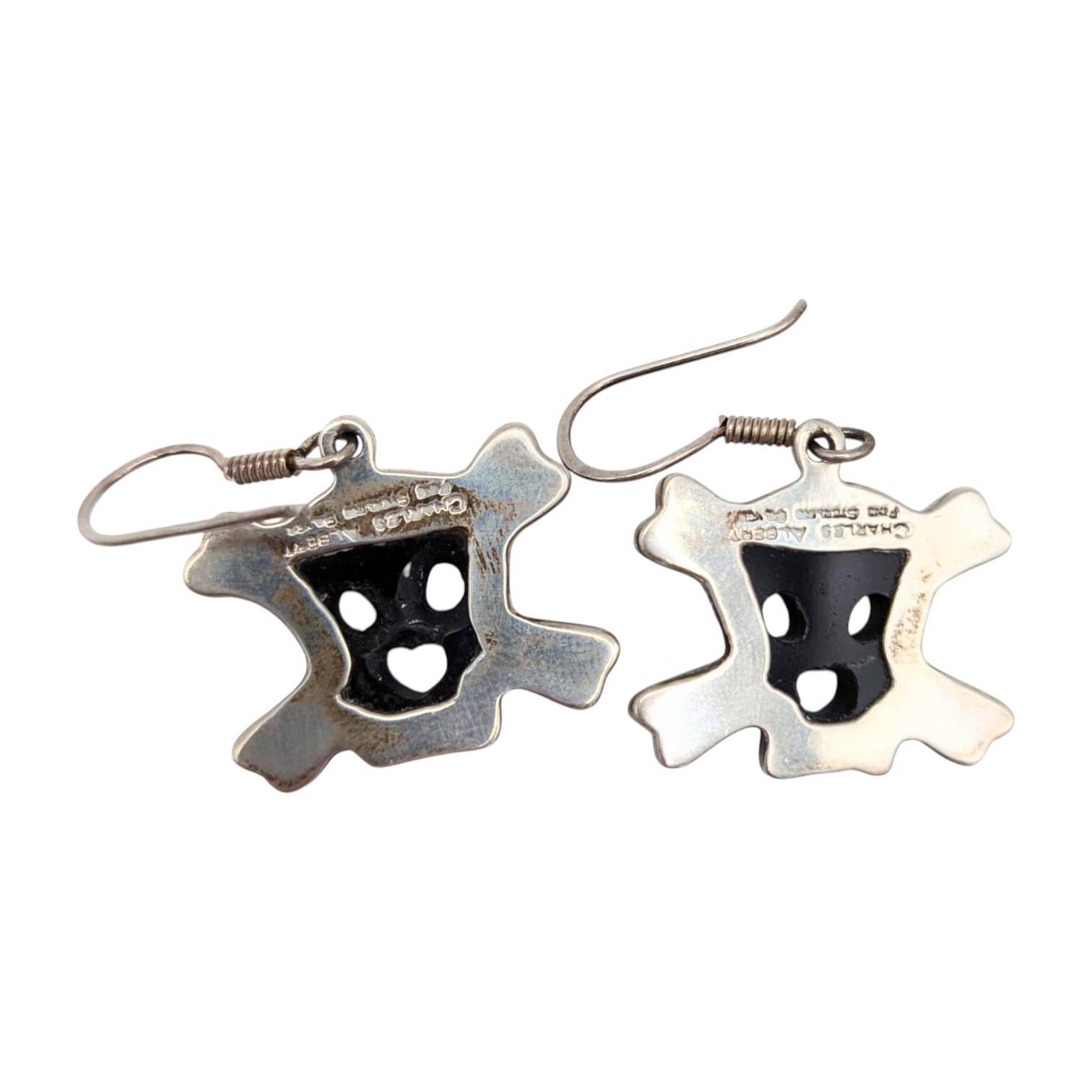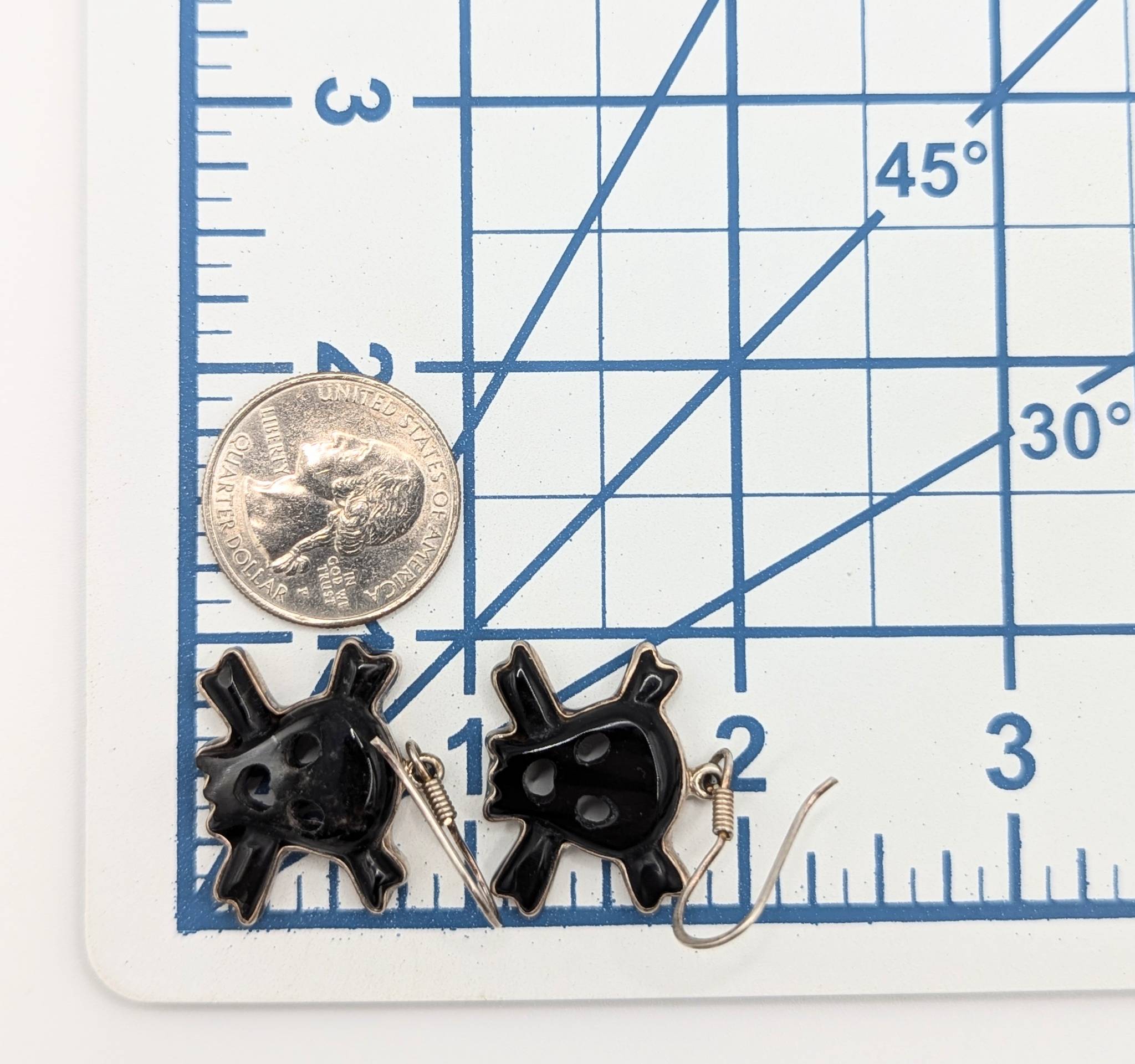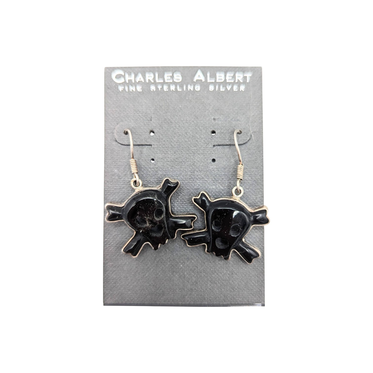 Charles Albert Fine Sterling Black Onyx Skull Earrings 10.51g