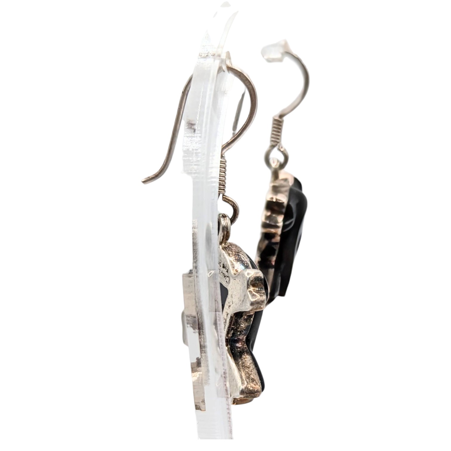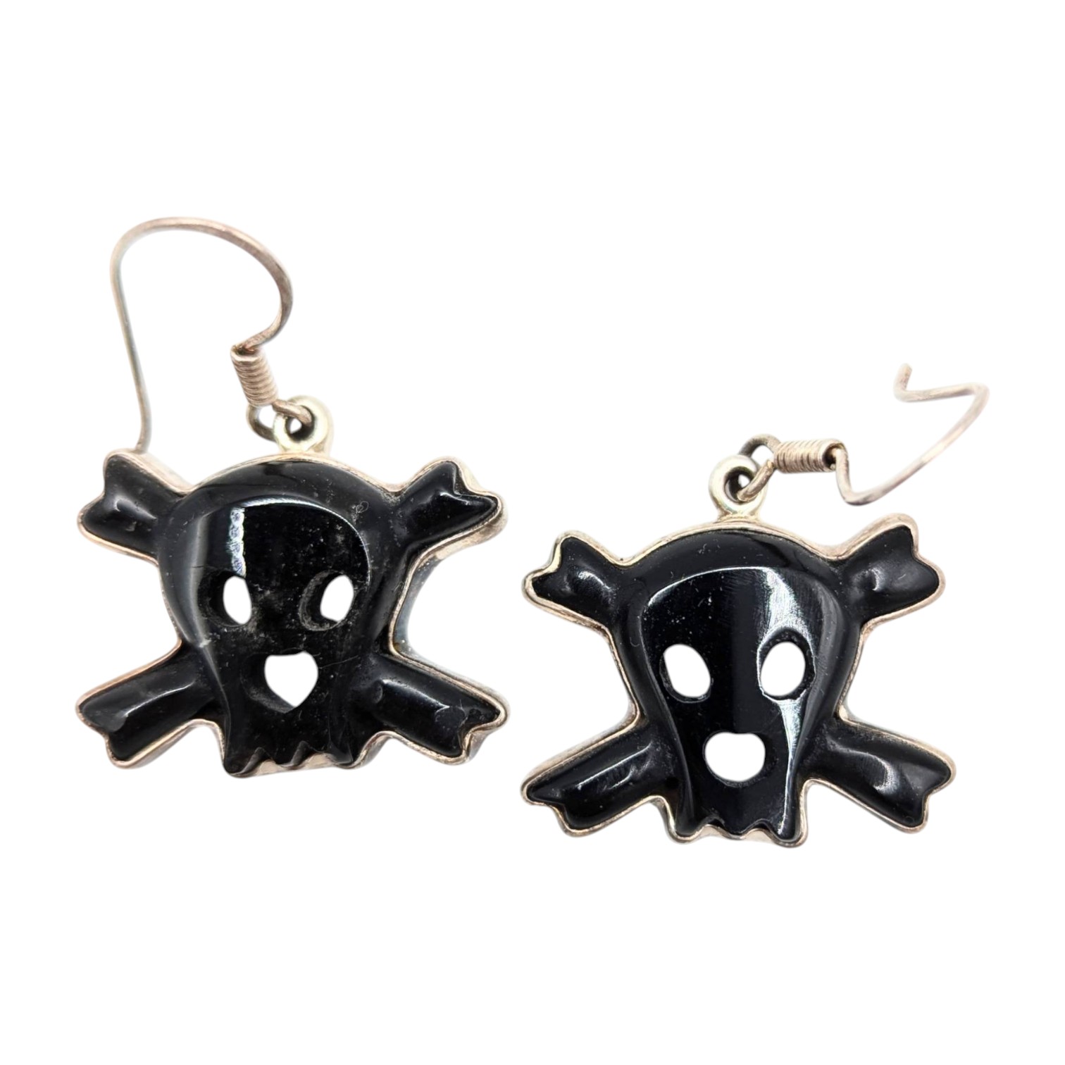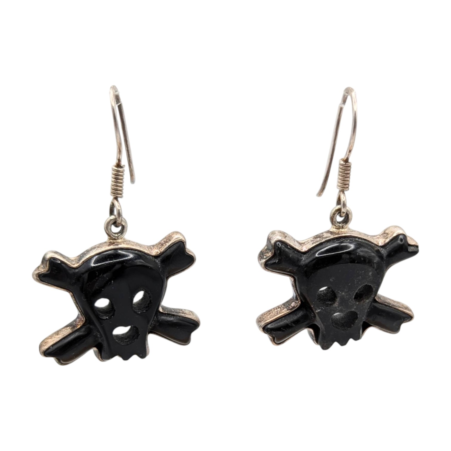 Charles Albert Fine Sterling Black Onyx Skull Earrings 10.51g