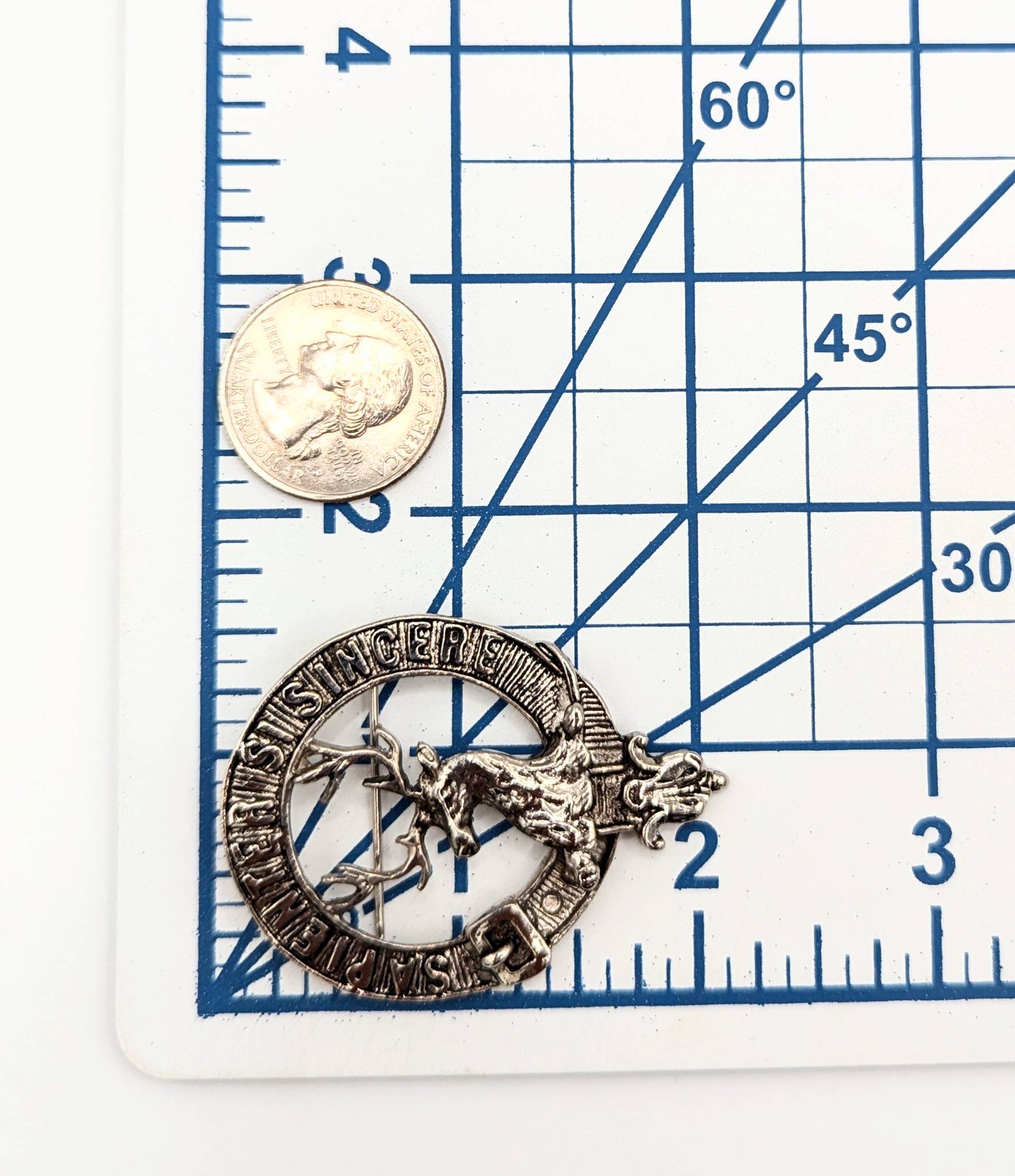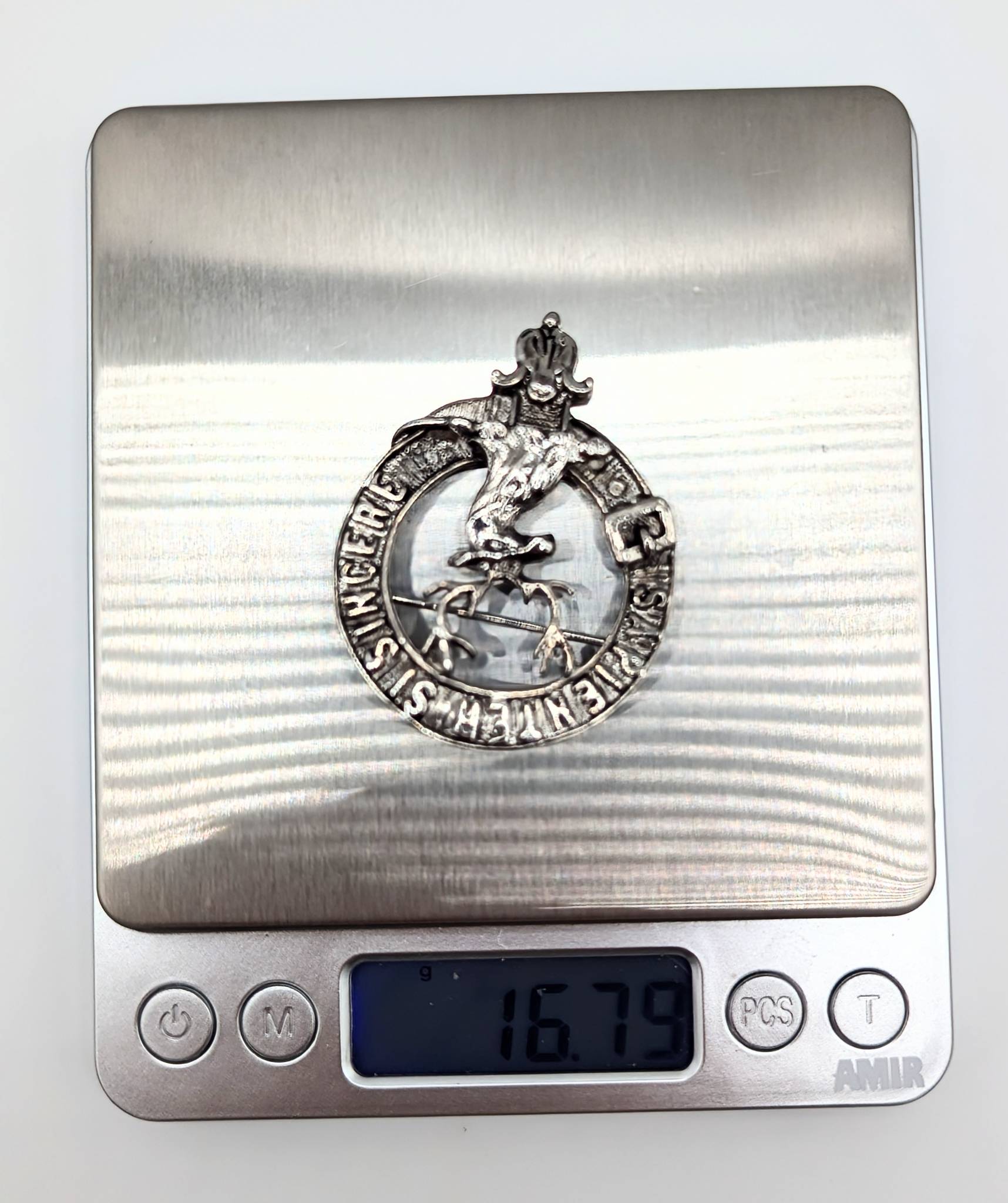 Sterling Stag Crest Badge Motto ‘Sapienter Si Sincere’ 16.75g