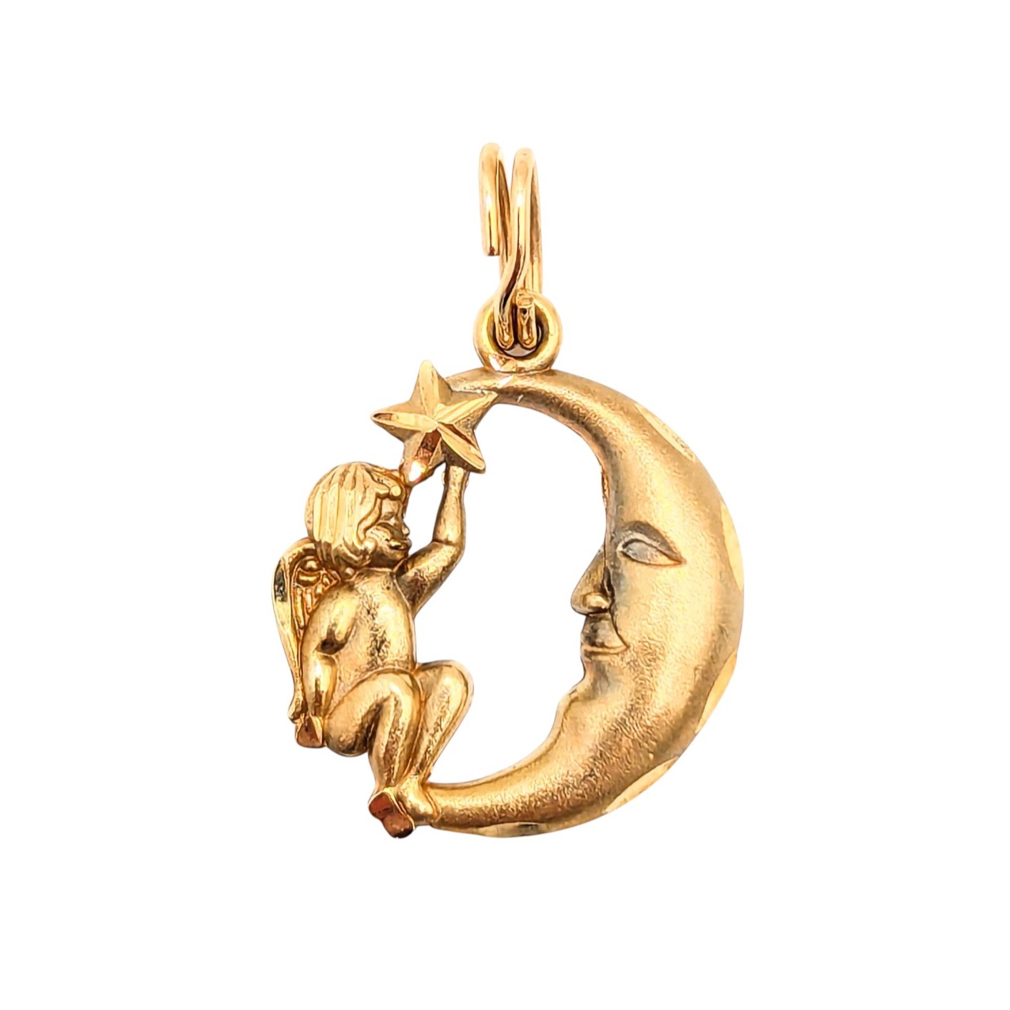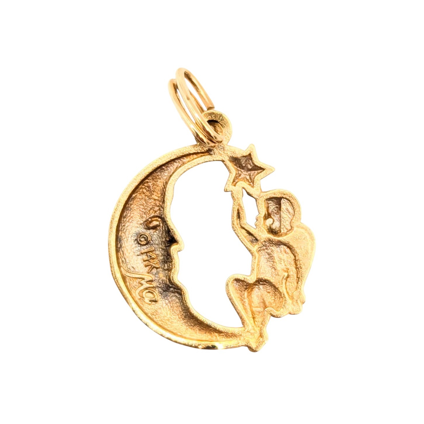 14K Gold Moon and Angel Pendant Charm .72g Ma