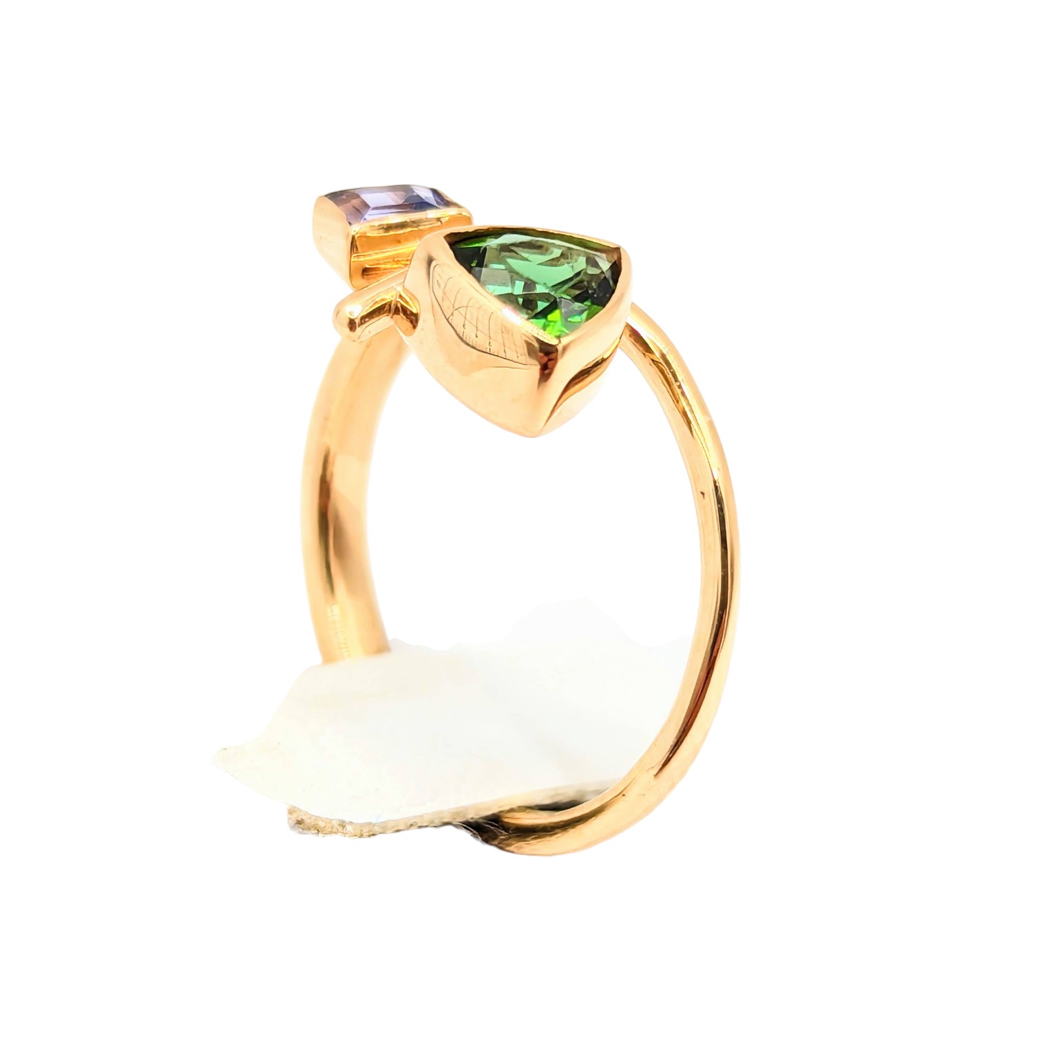 14K Gold Ring with Diamond, Emerald, and Iolite, Size 5 2.62g