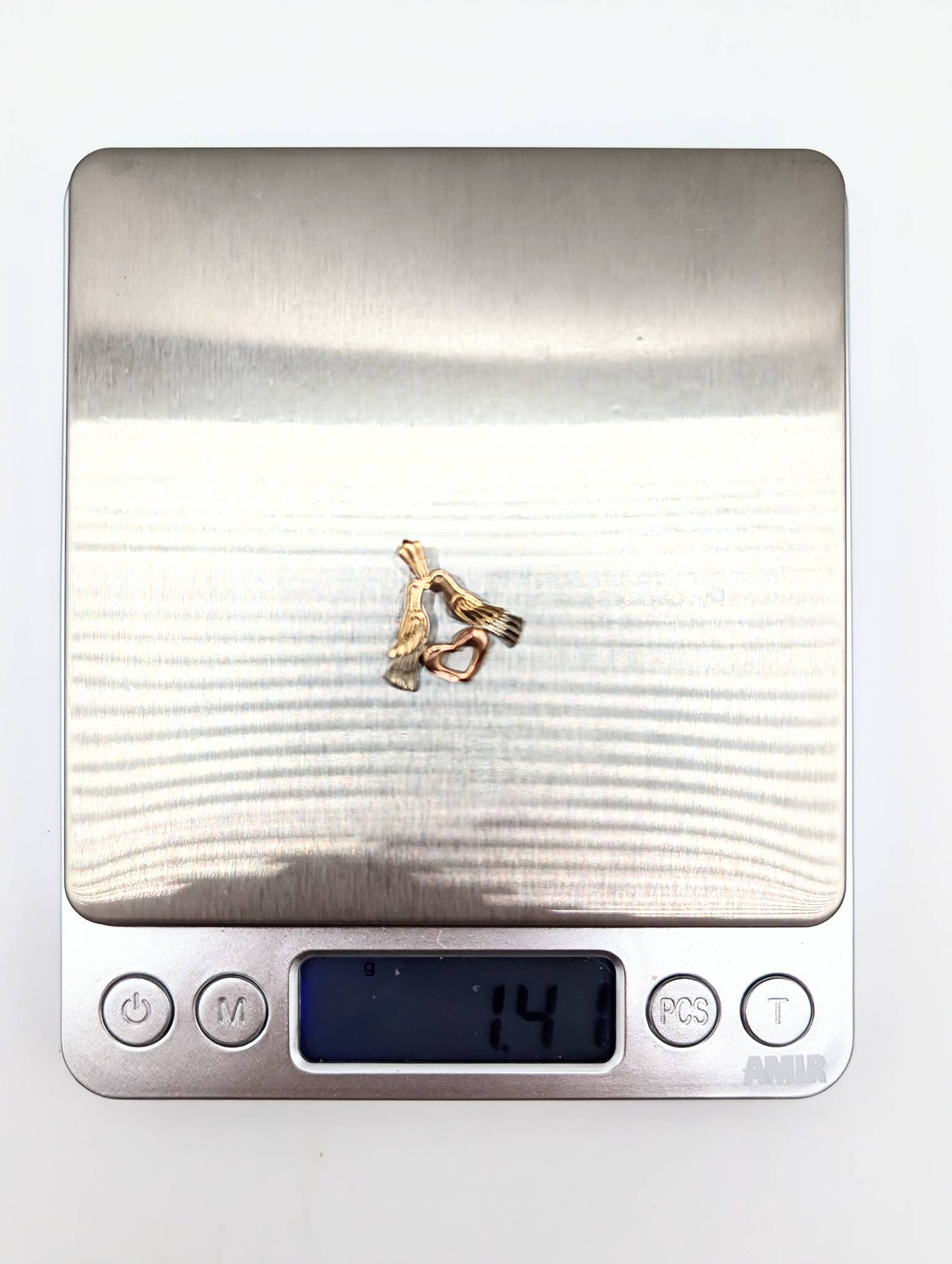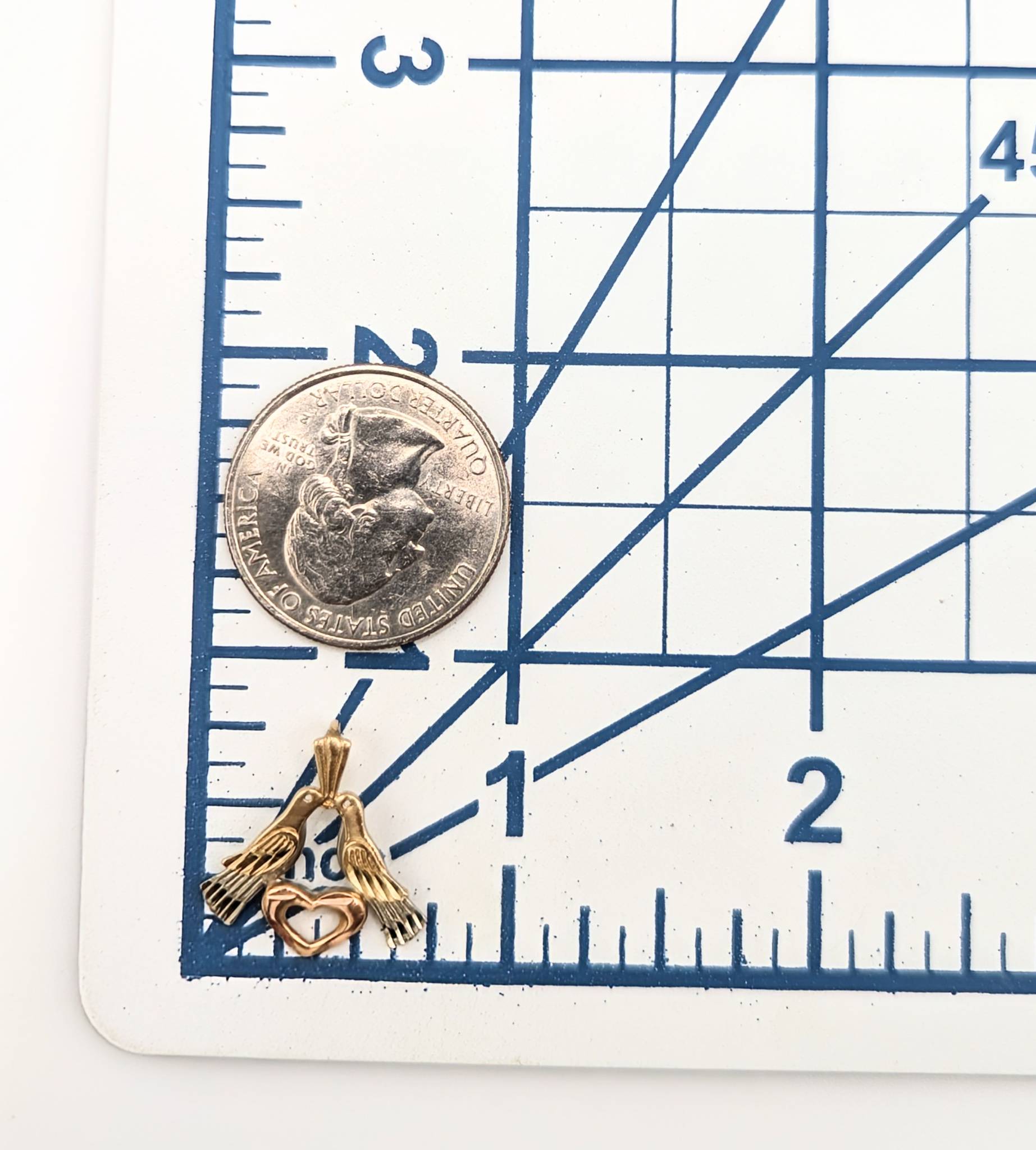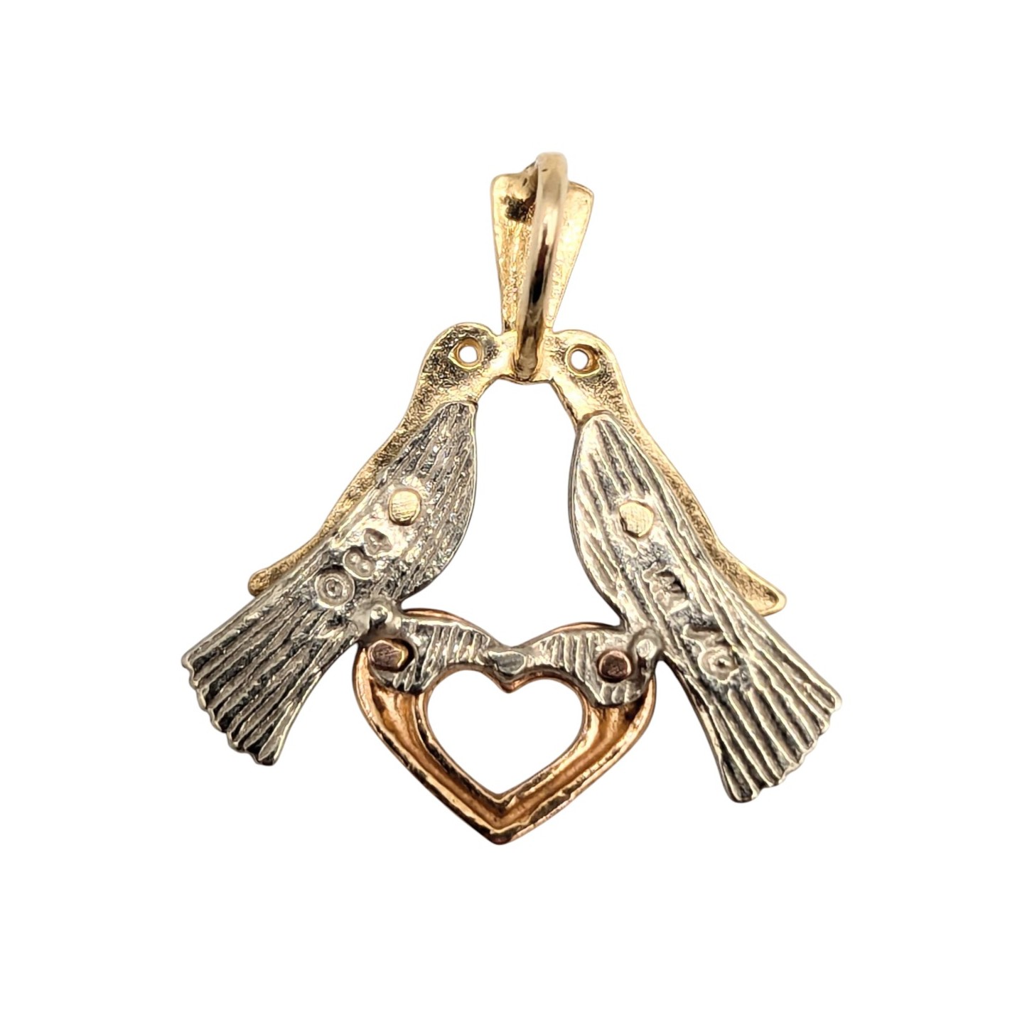 14K Italian Gold Pendant Featuring Two Doves with Heart Design 1.41g