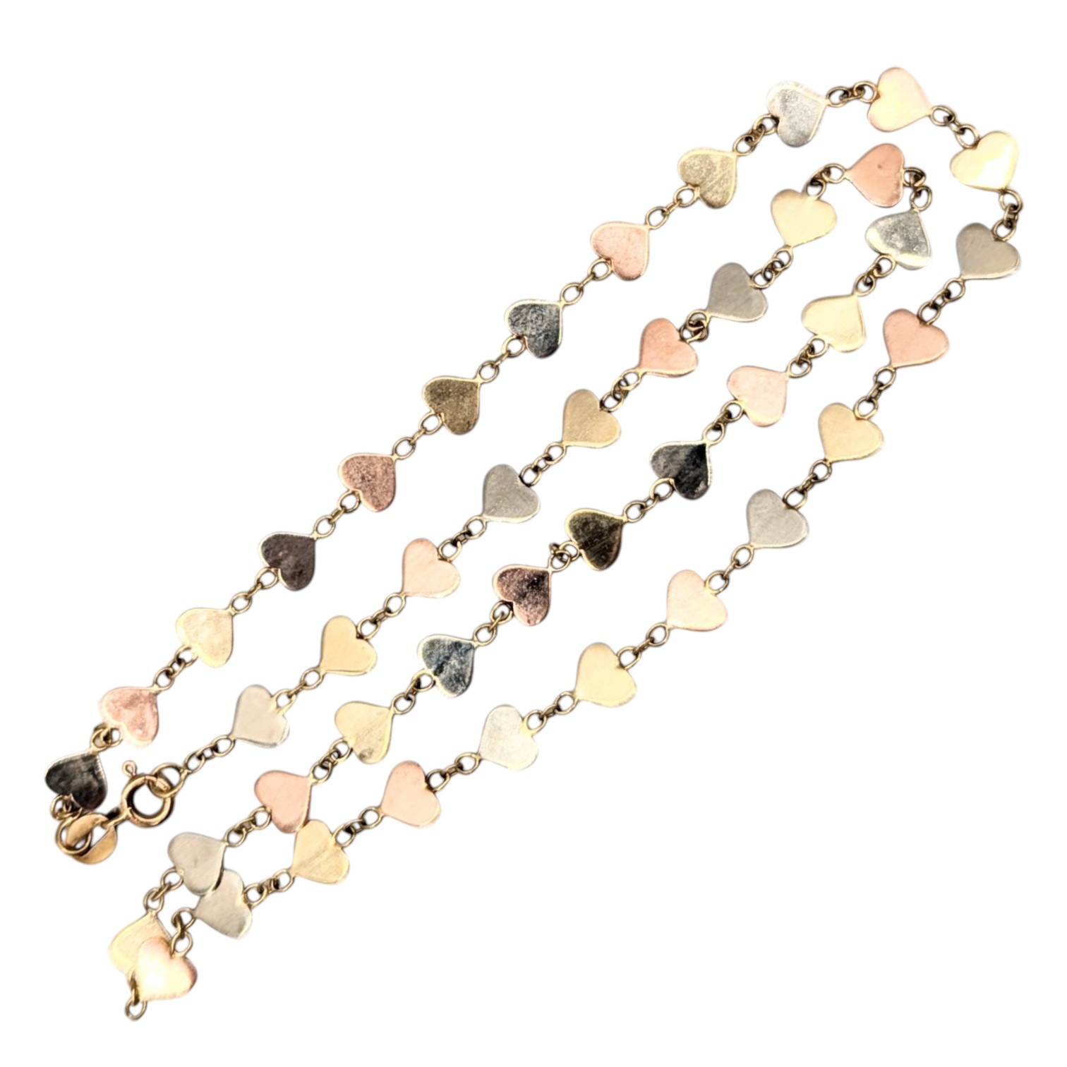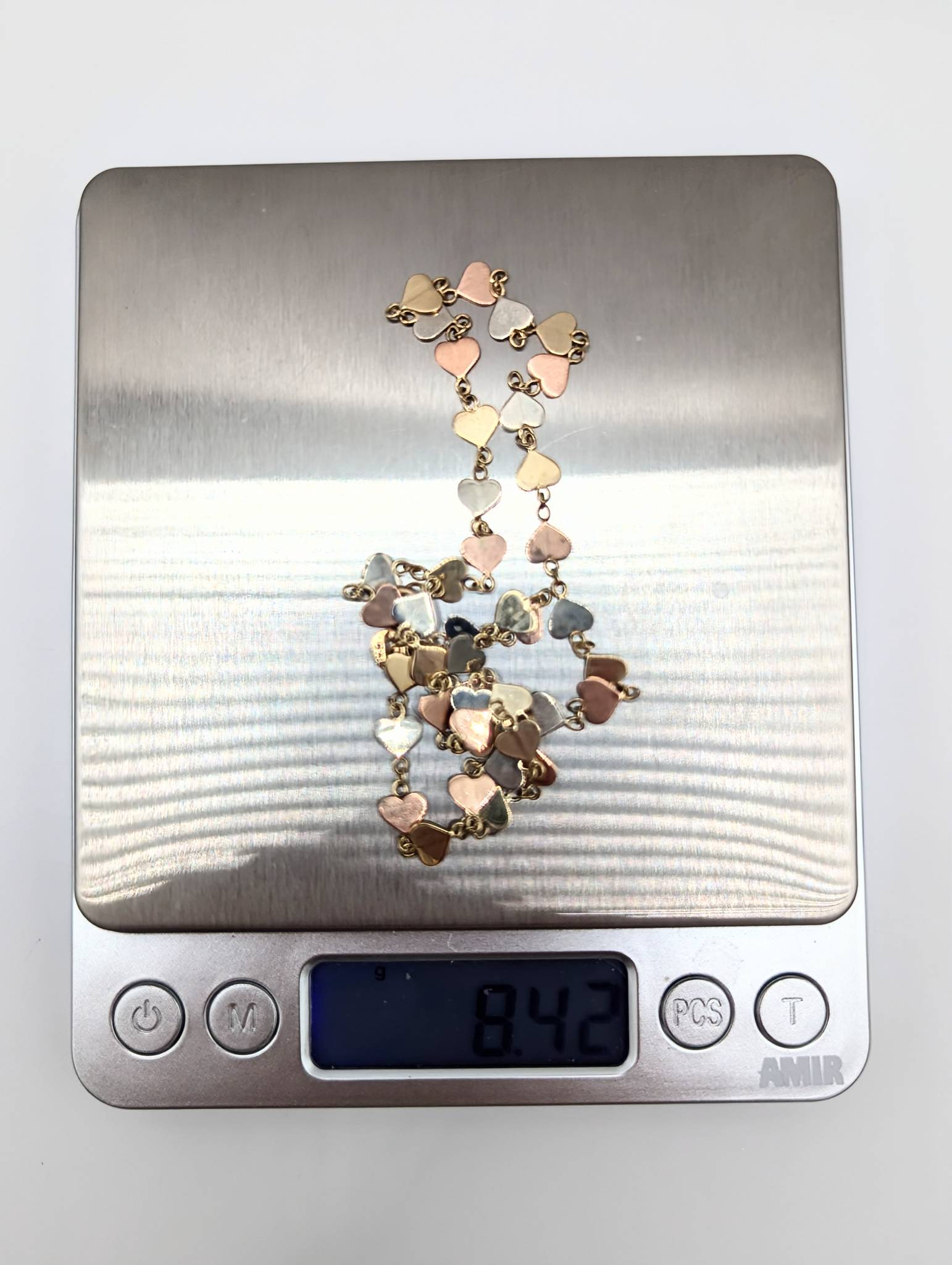 14K Italian Multi-Tone Gold Heart Link Bracelet 8.42g