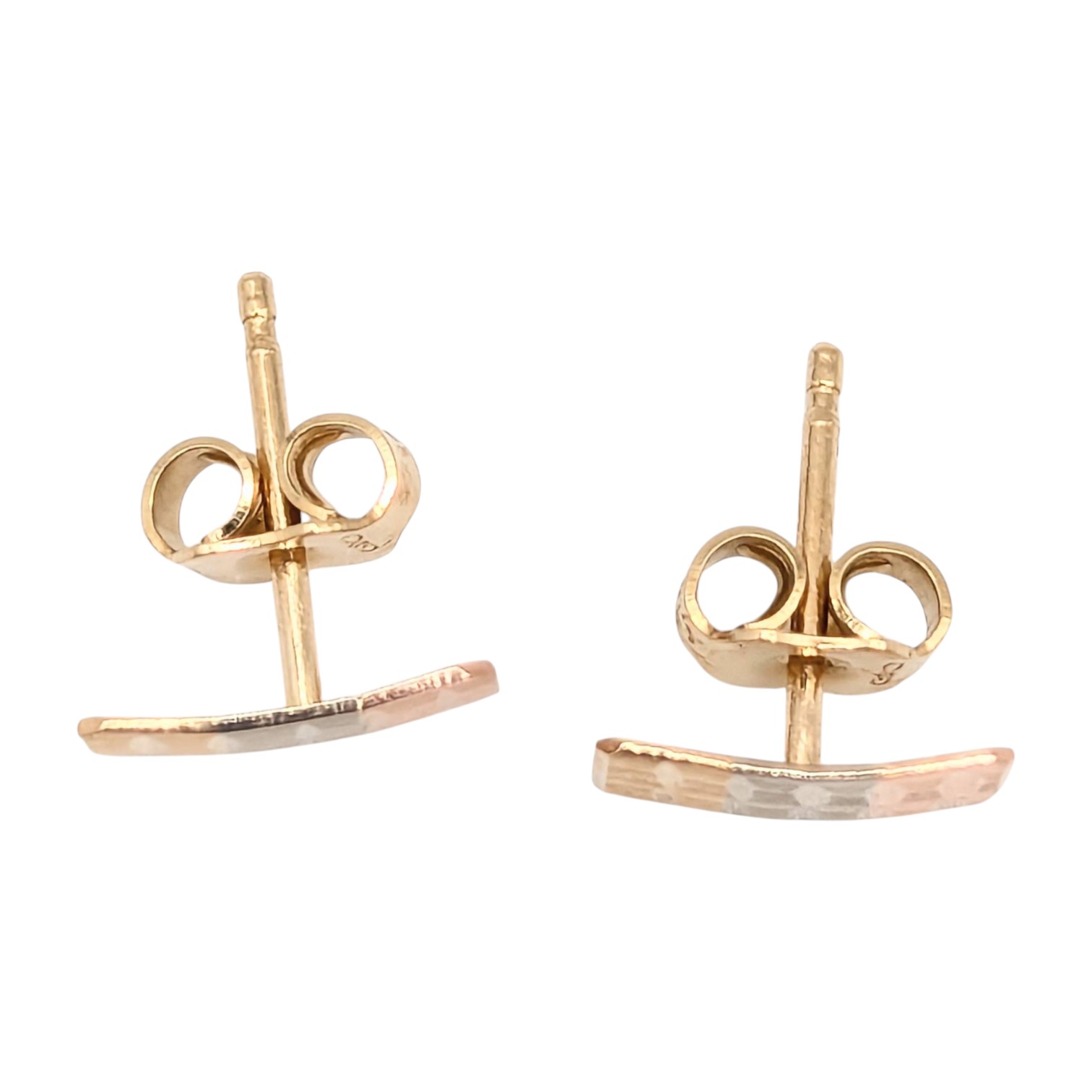14K Italian Rectangular Textured tri-Gold Stud Earrings 1.14g