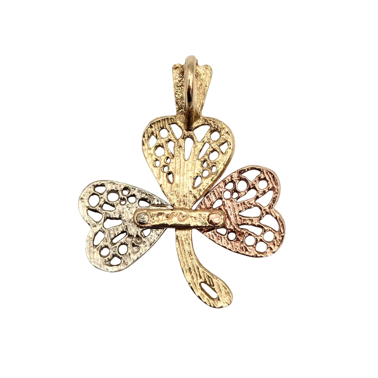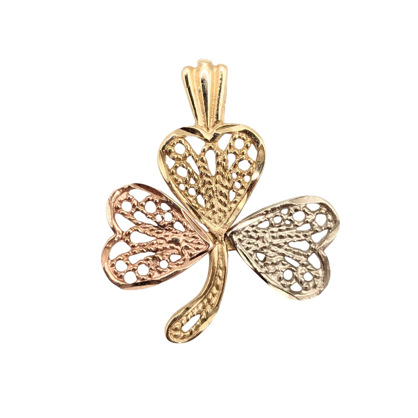14K Italian Tri-Color Gold Filigree Shamrock Pendant 1.22g