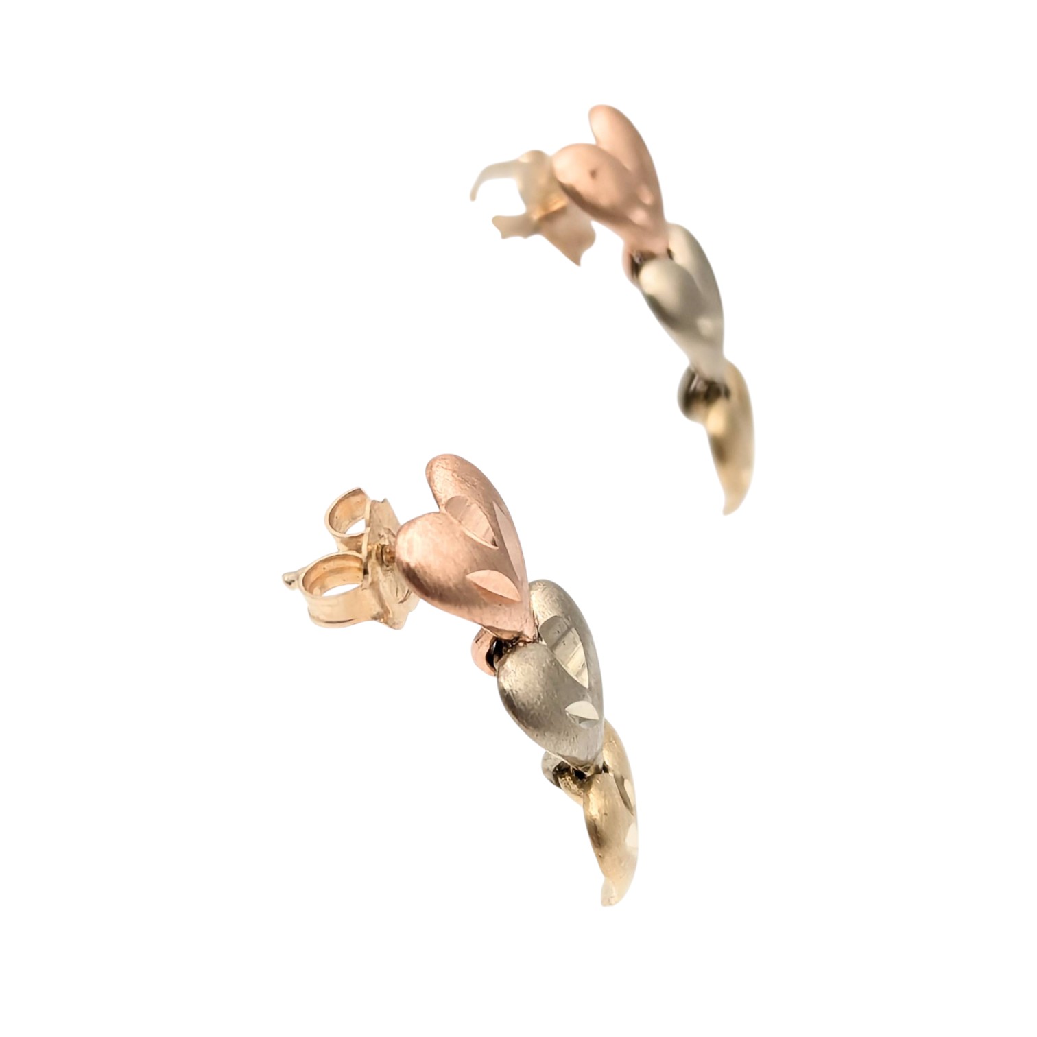 14K Italian Tri-Color Gold Heart Earrings 1.72g
