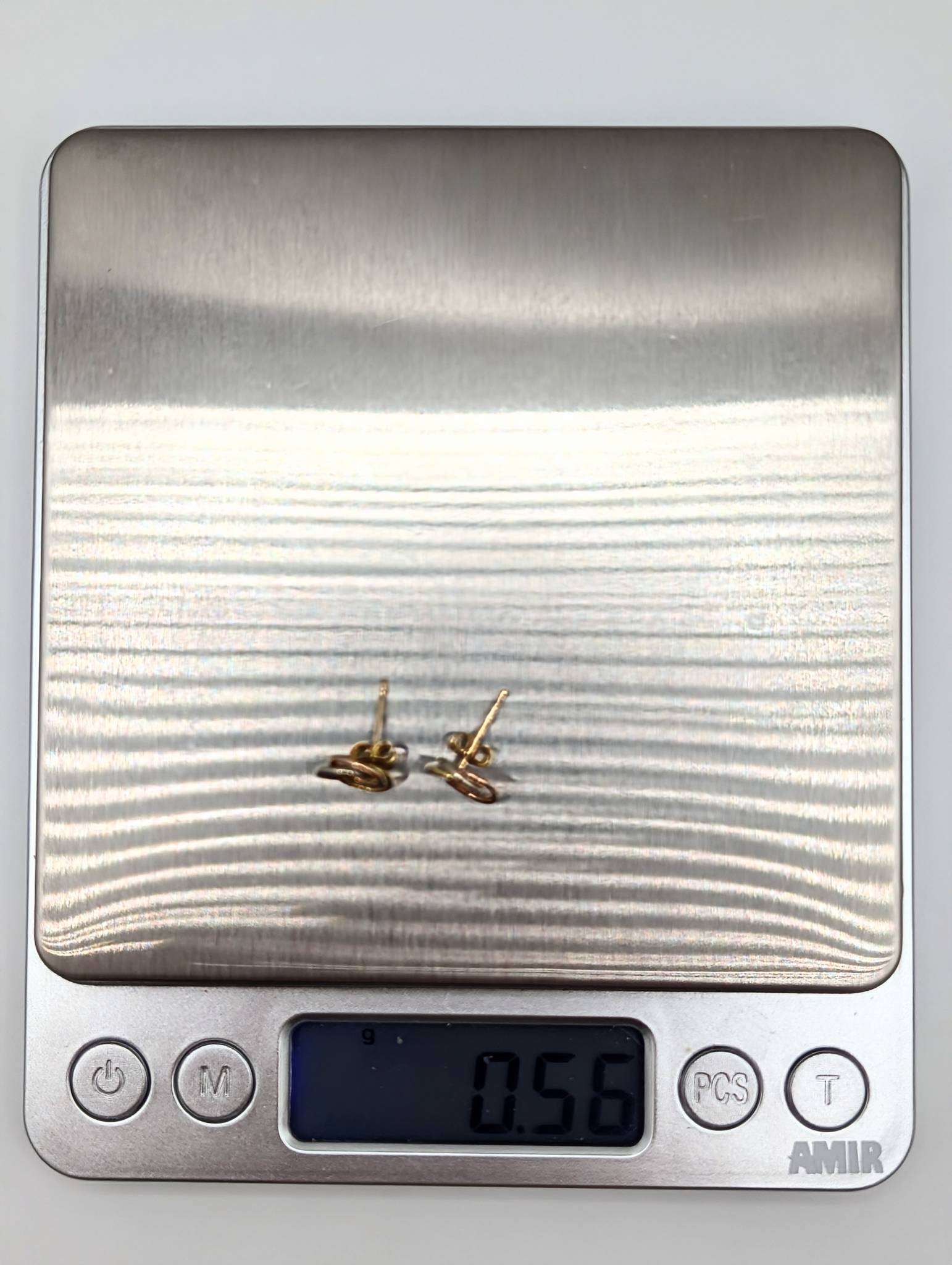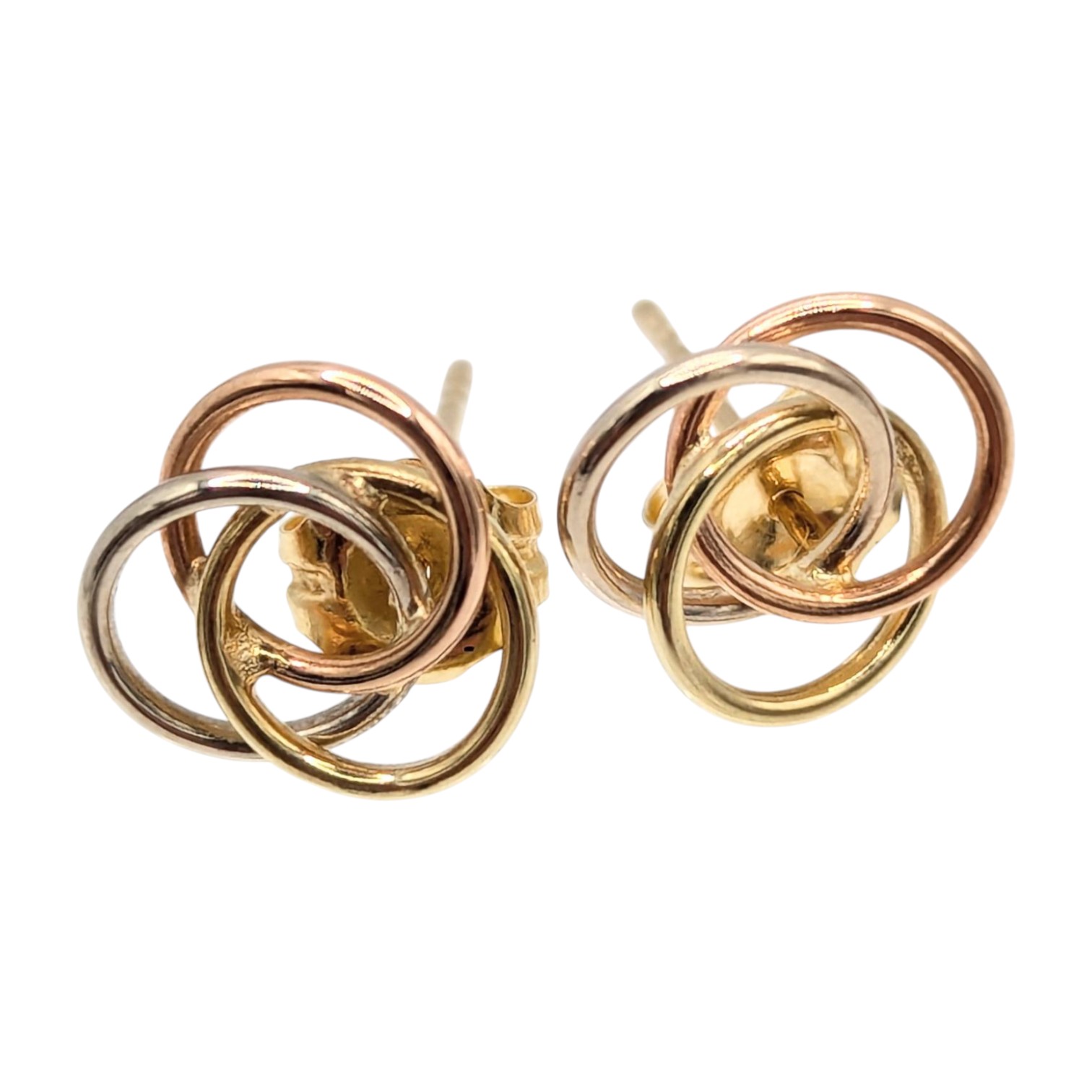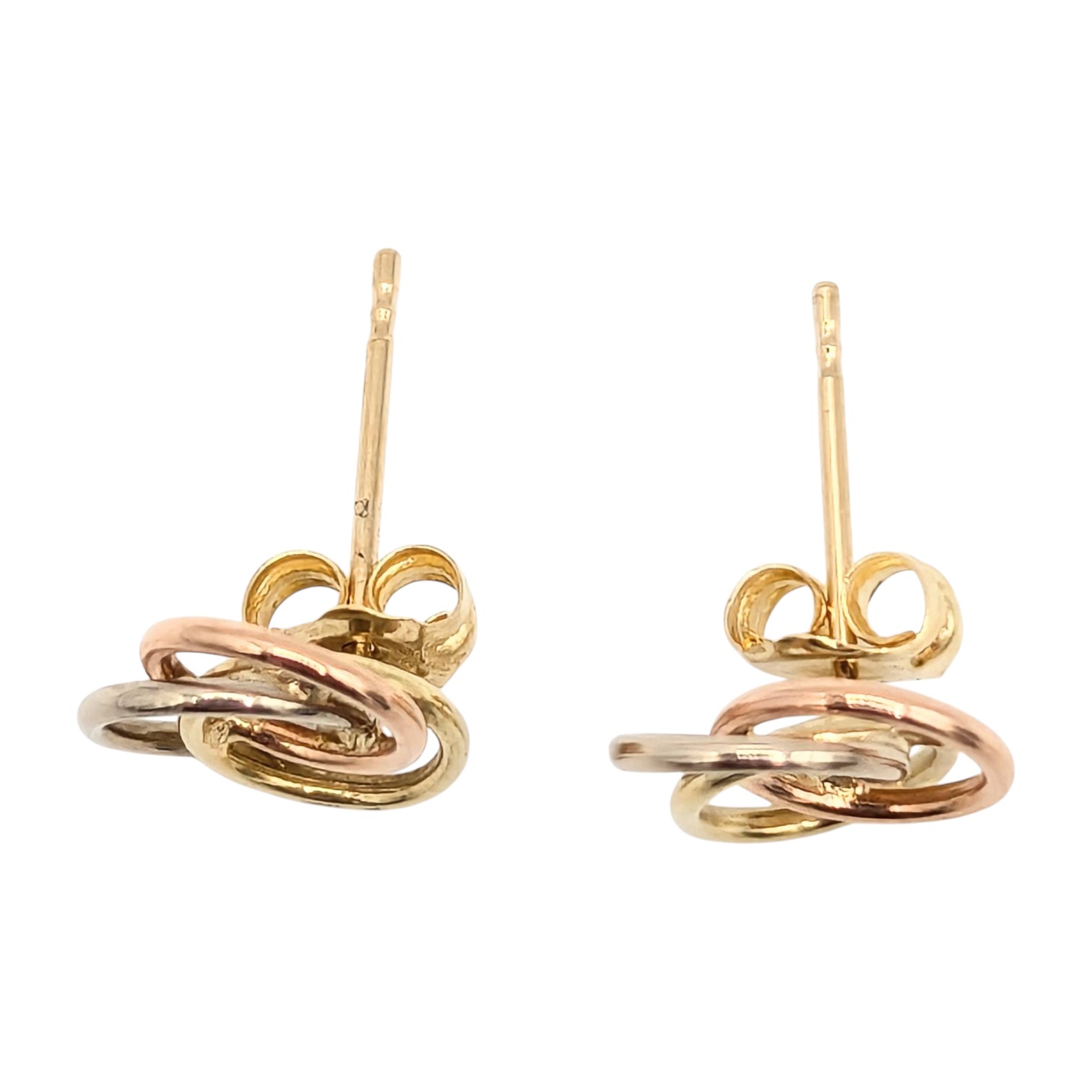 14K Italian Tri-Color Gold Knot Stud Earrings .56g