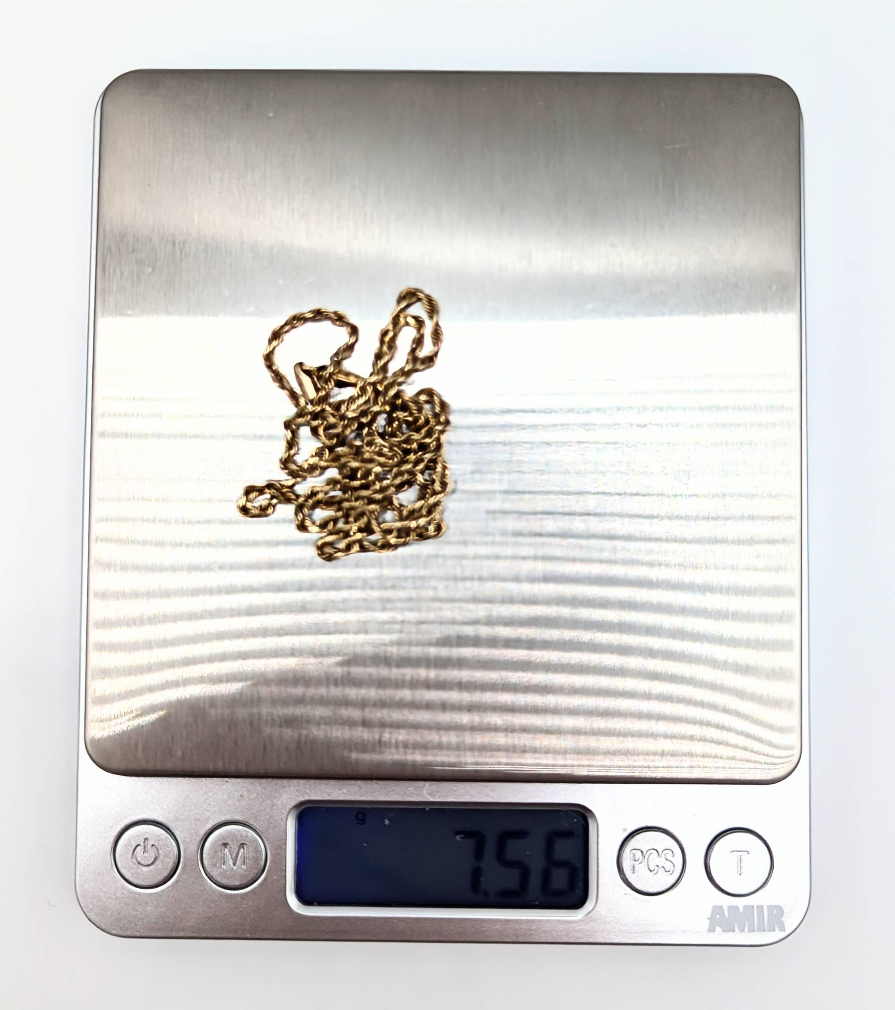 14K Gold Rope Chain Necklace Weighing 7.56 G