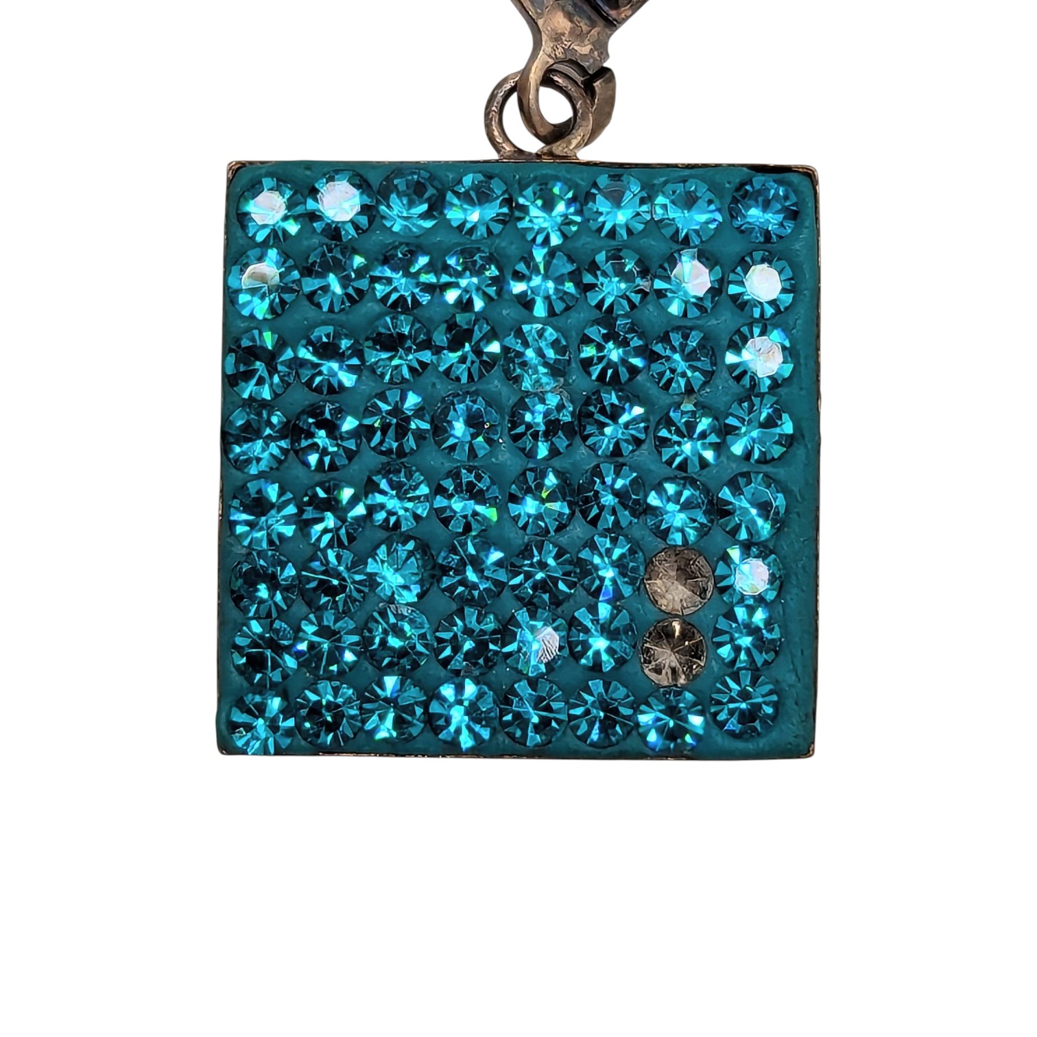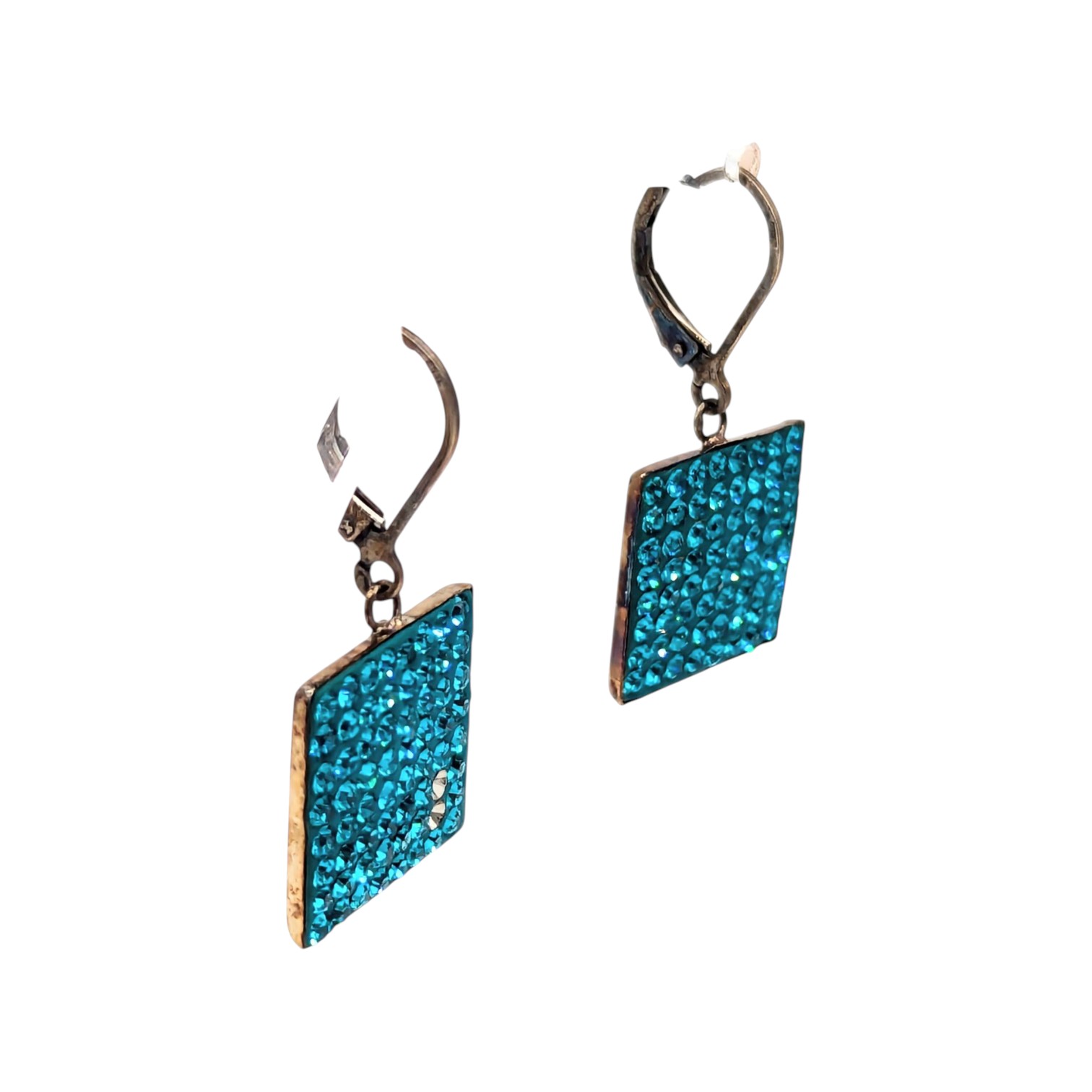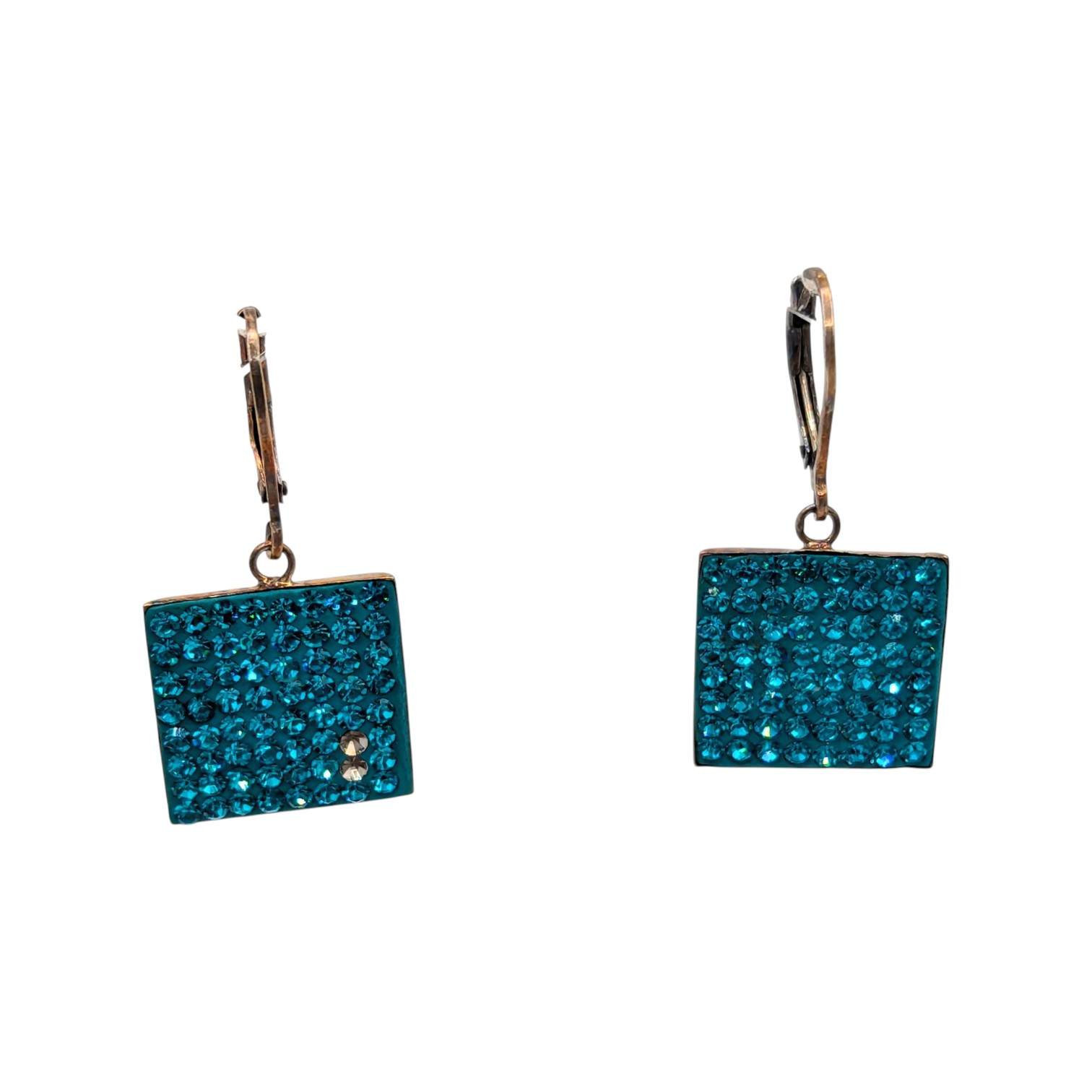 Sterling Square Blue Rhinestone Drop Earrings 3.45g missing 2 stones