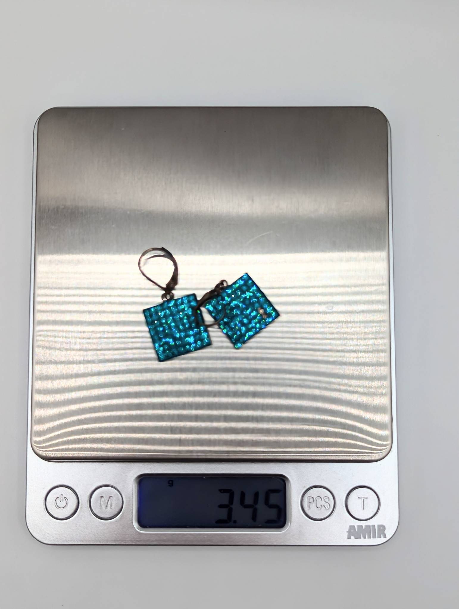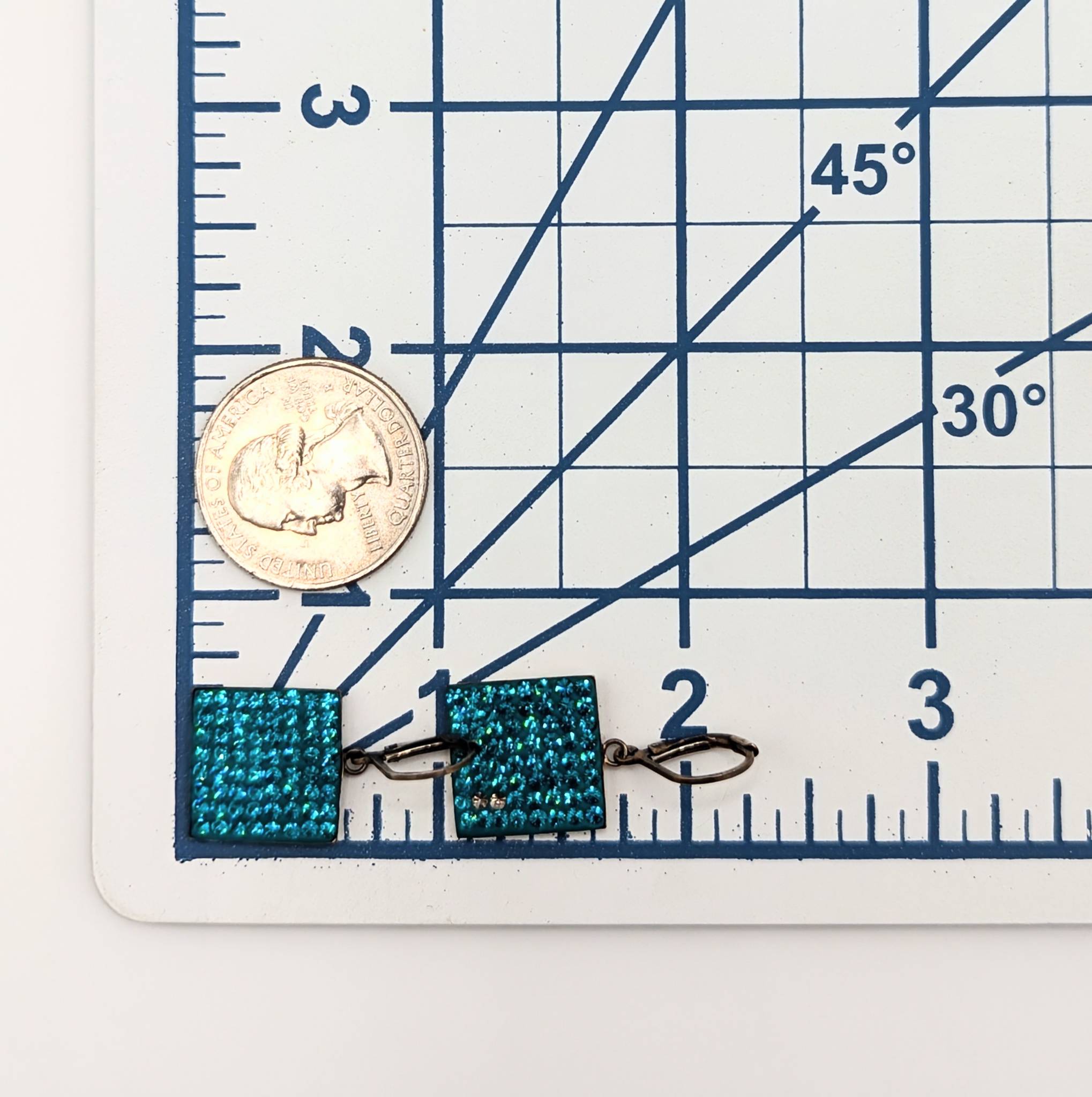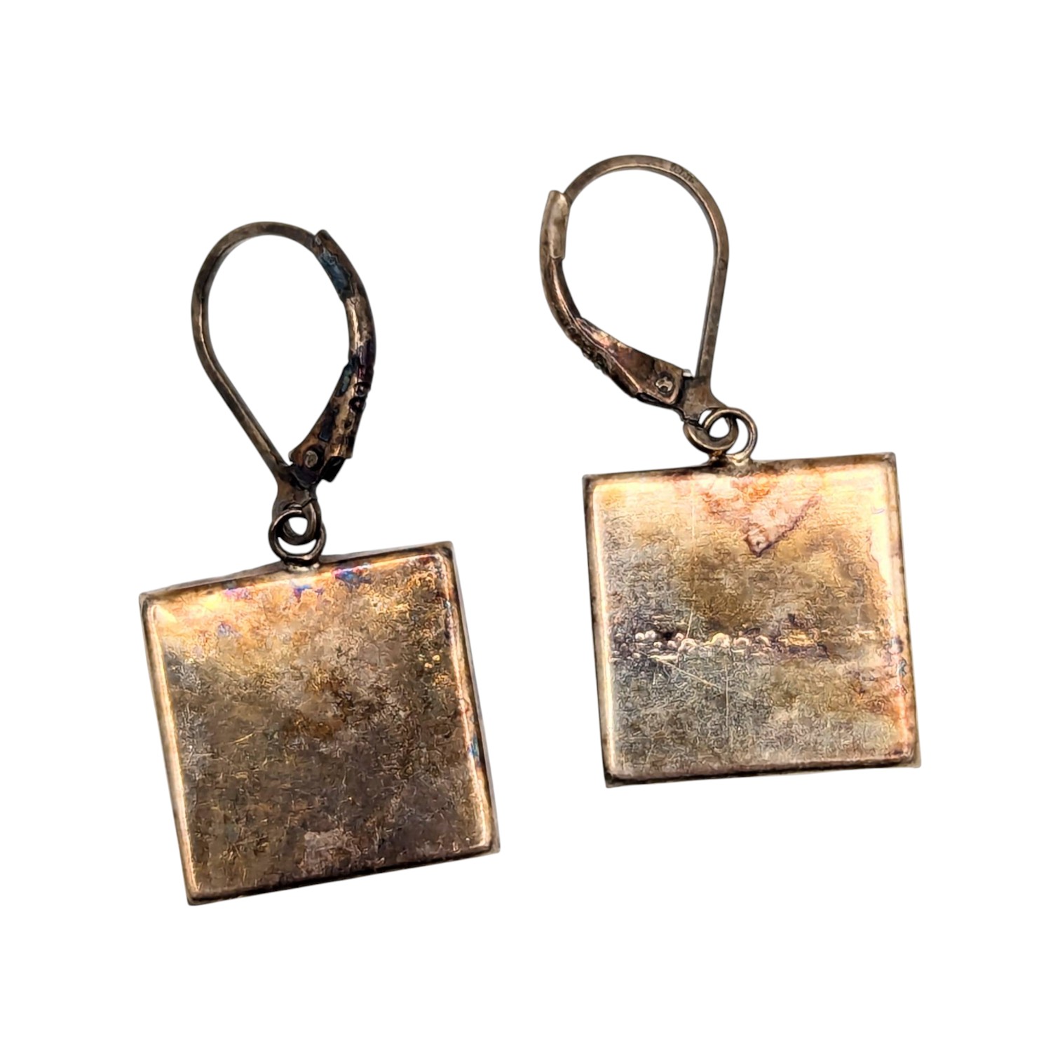 Sterling Square Blue Rhinestone Drop Earrings 3.45g missing 2 stones