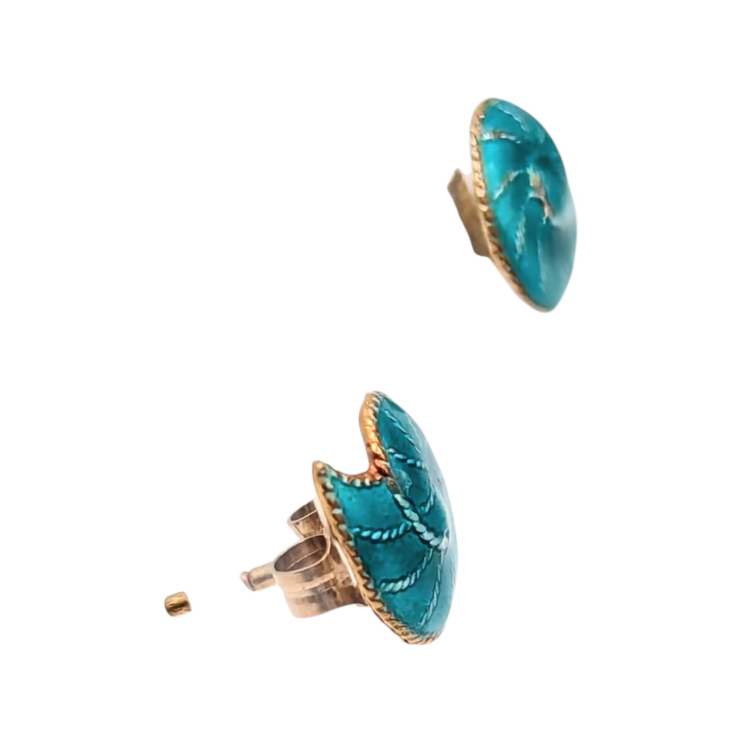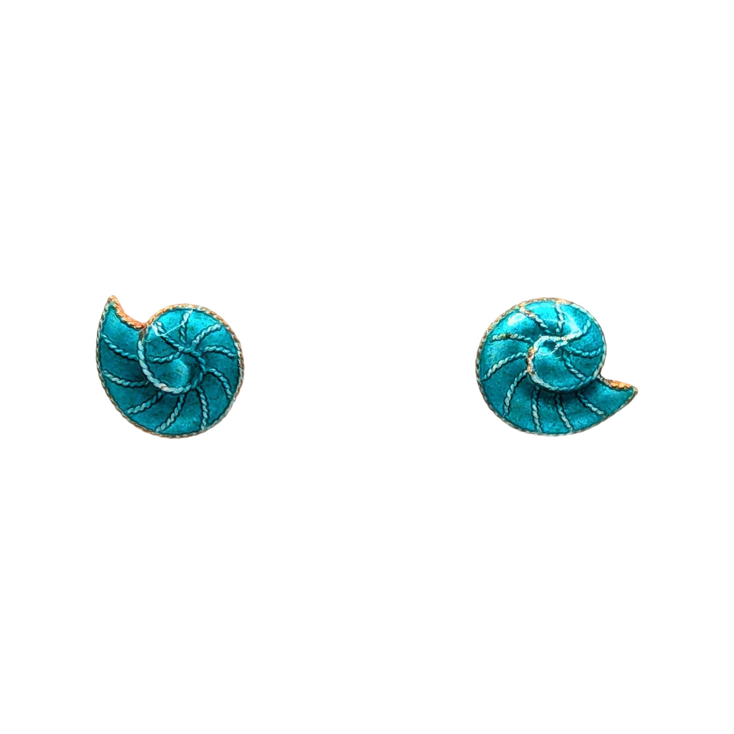 Sterling Gold Overlay Turquoise Nautilus Shell Stud Earrings 1g