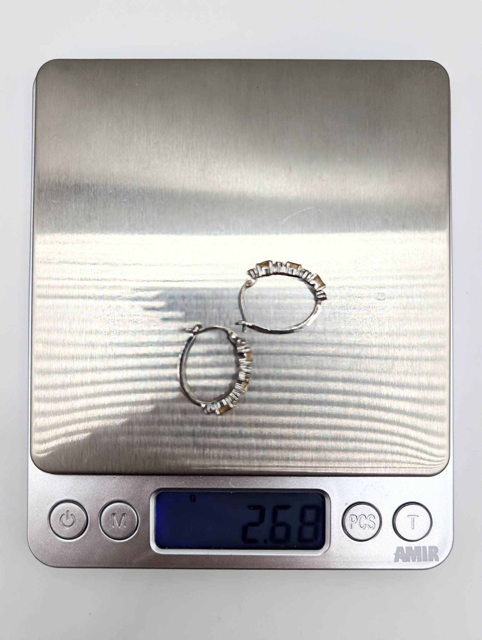 Sterling Yellow citrine Hoop Earrings 2.68g