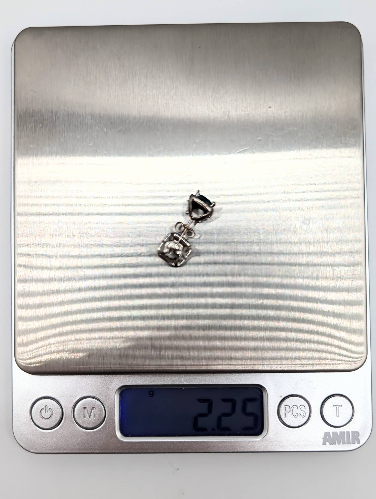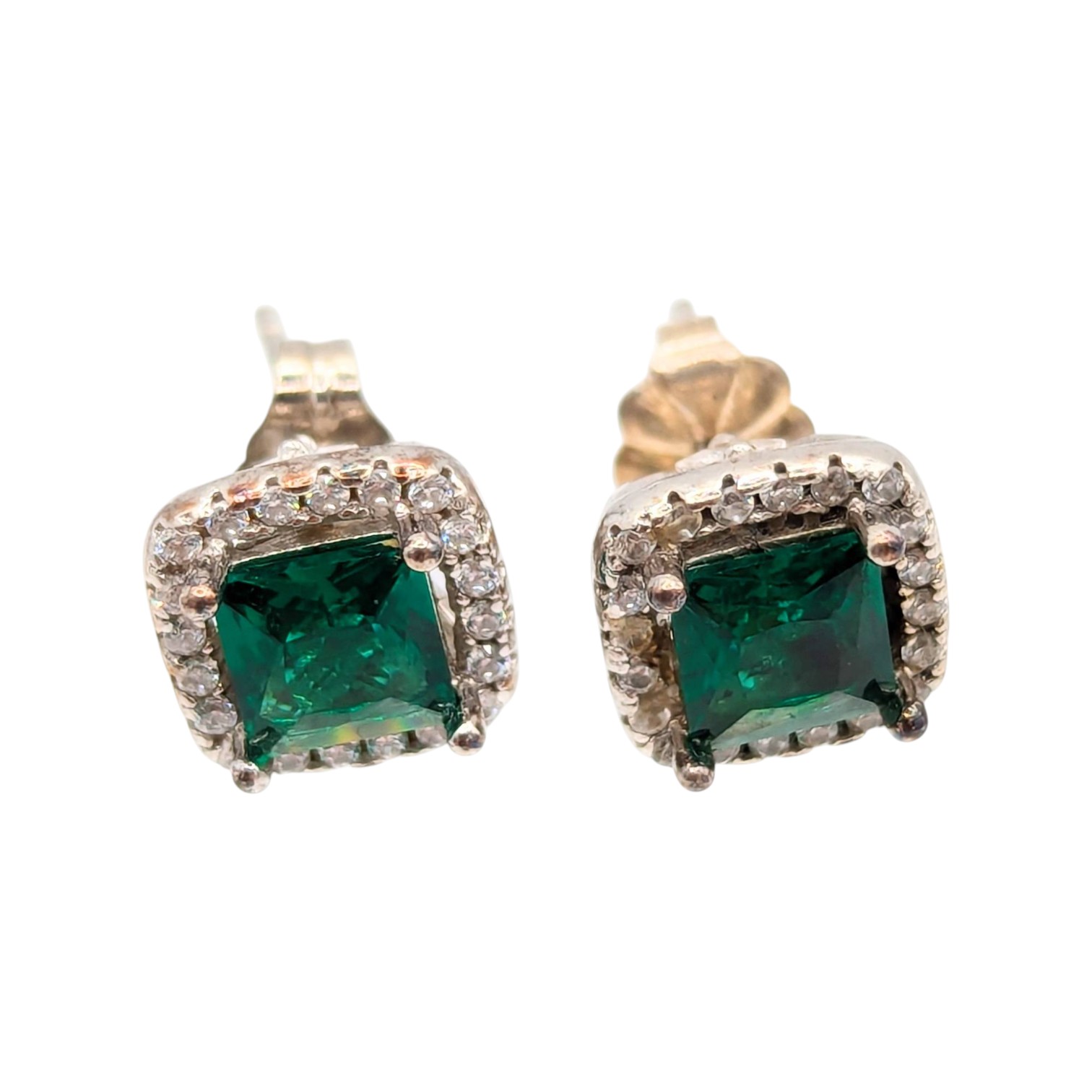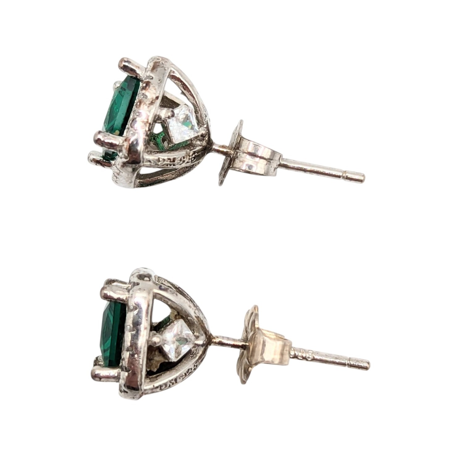Sterling Emerald, and Clear Rhinestones Halo Stud Earrings 2.25g DM