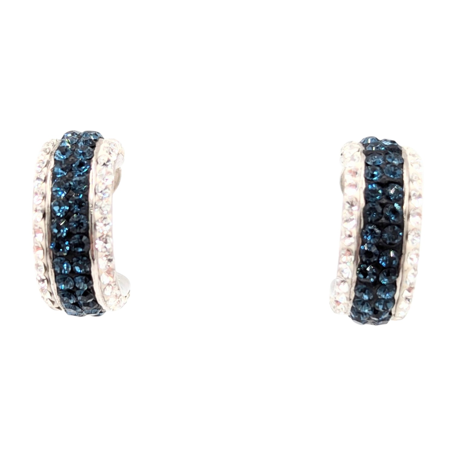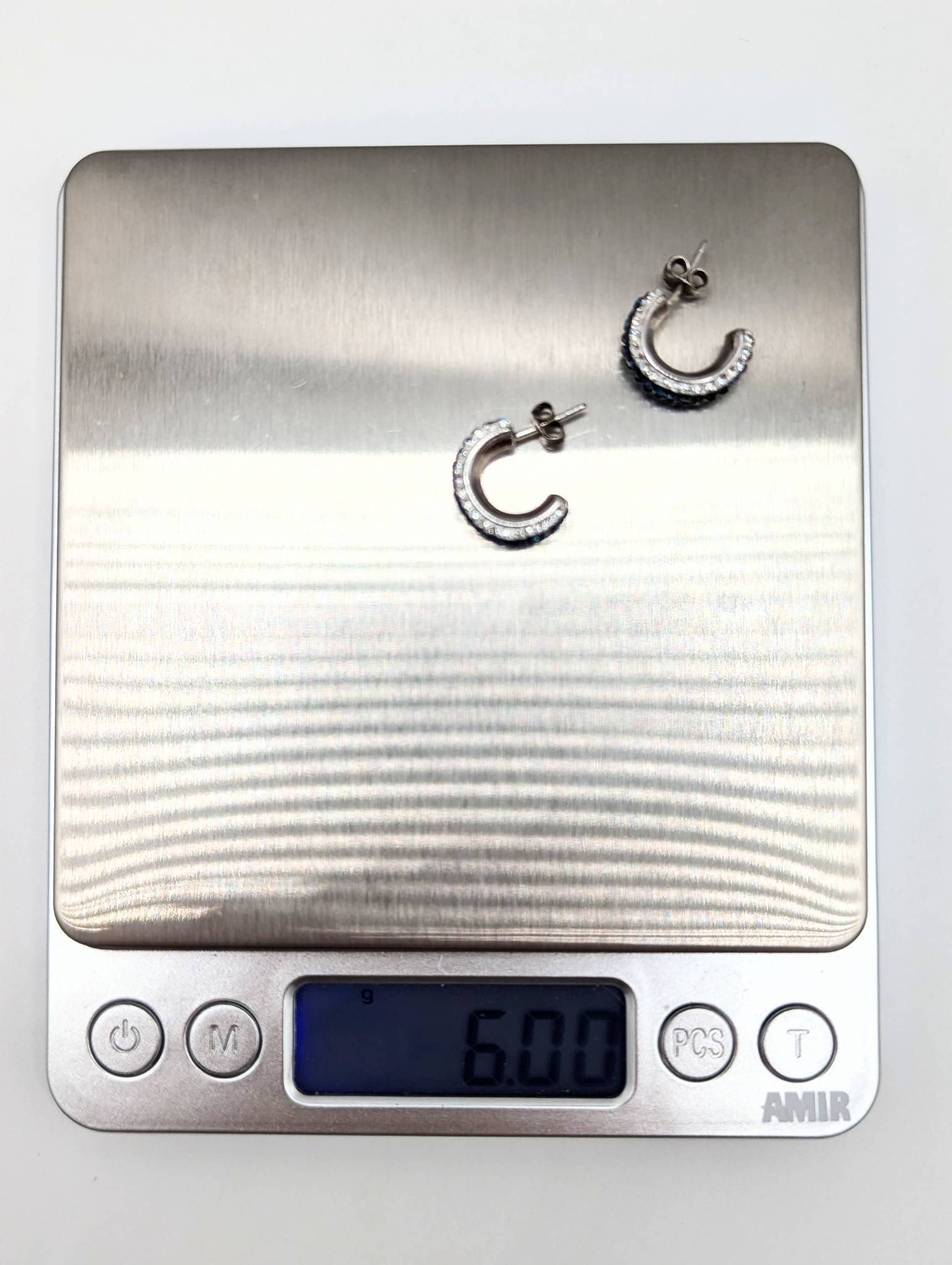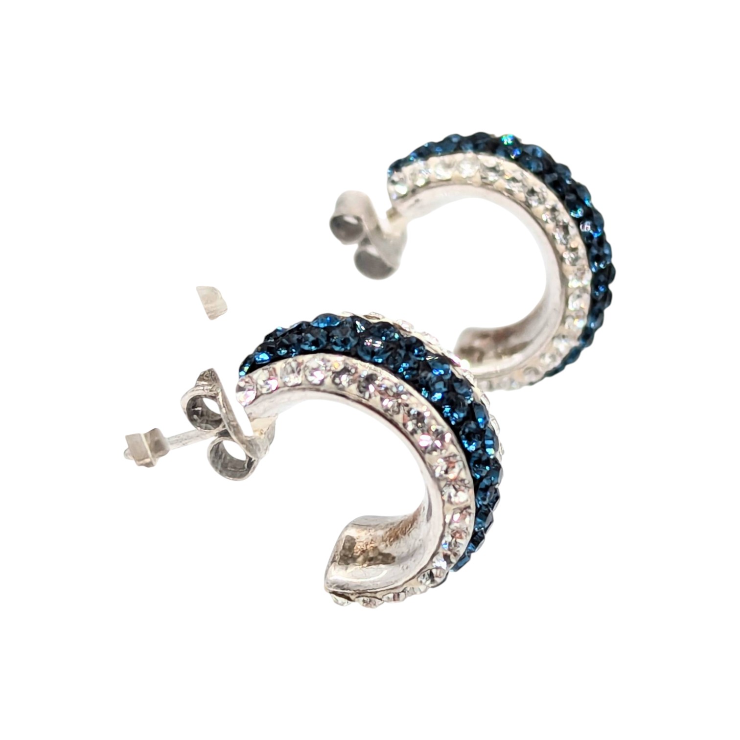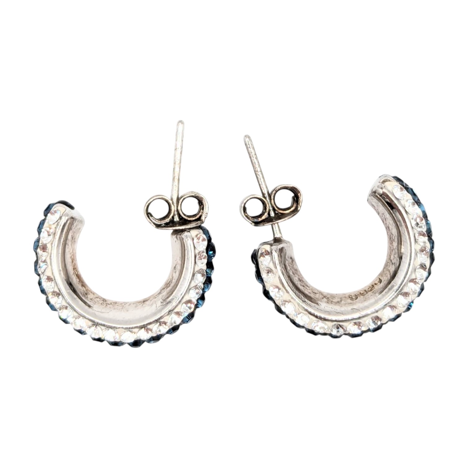 Sterling Hoop Earrings with Clear and Blue Rhinestone 6.0g