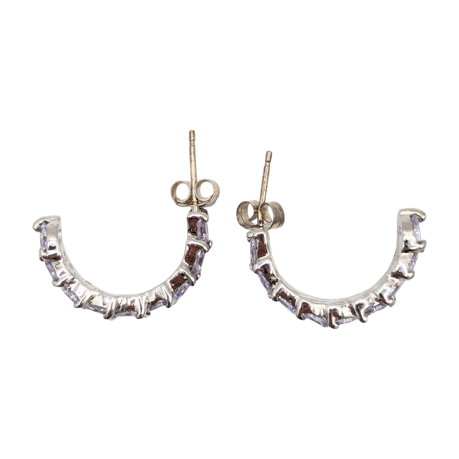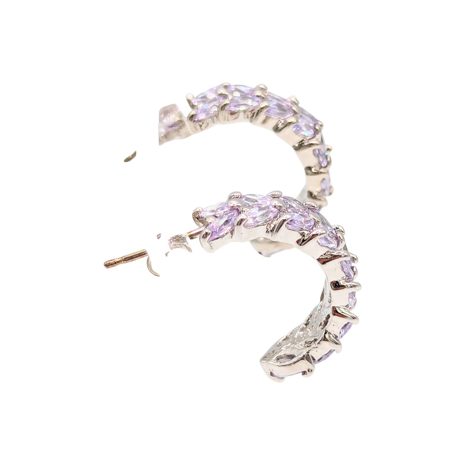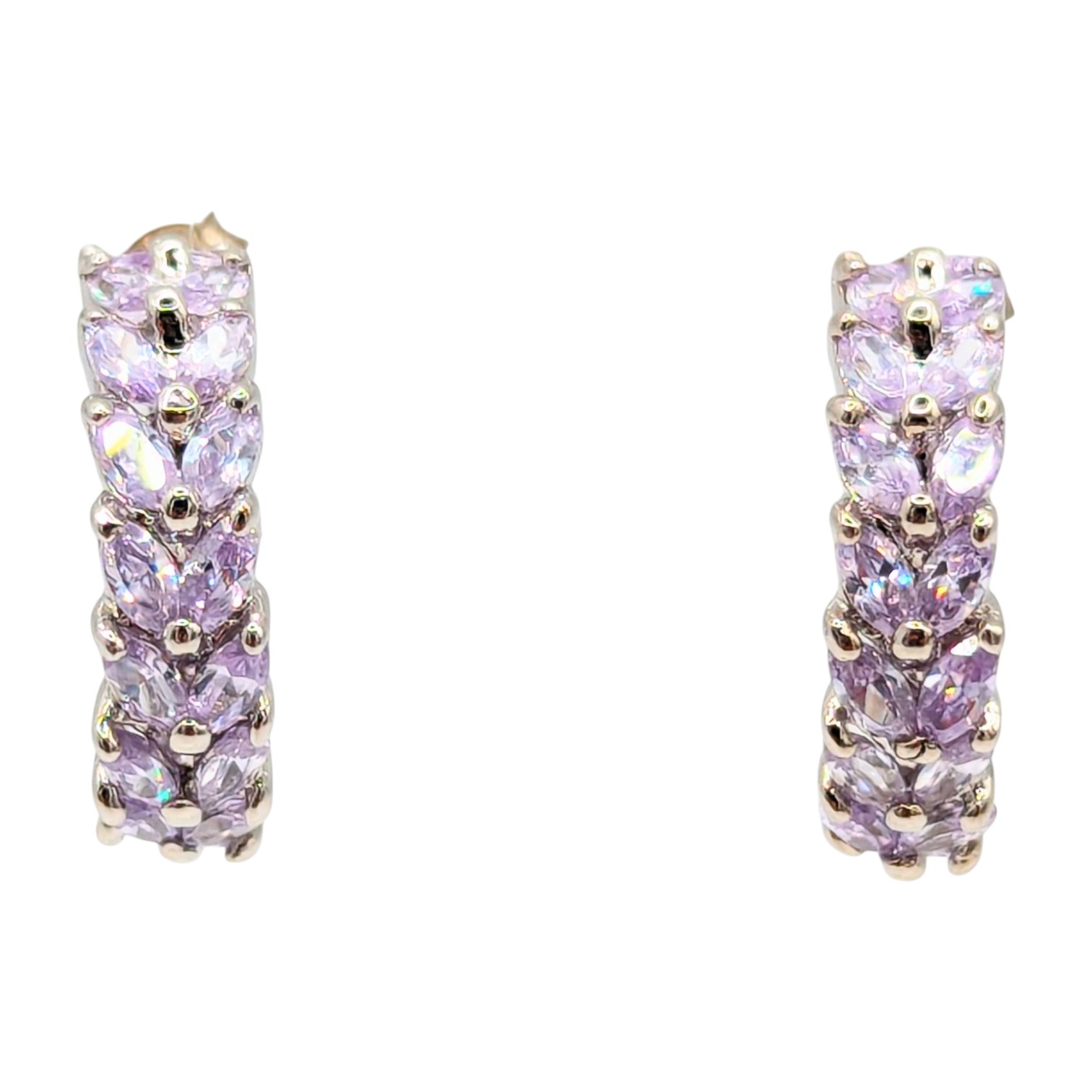 Sterling Hoop Earrings with Purple Rhinestone 4.79g