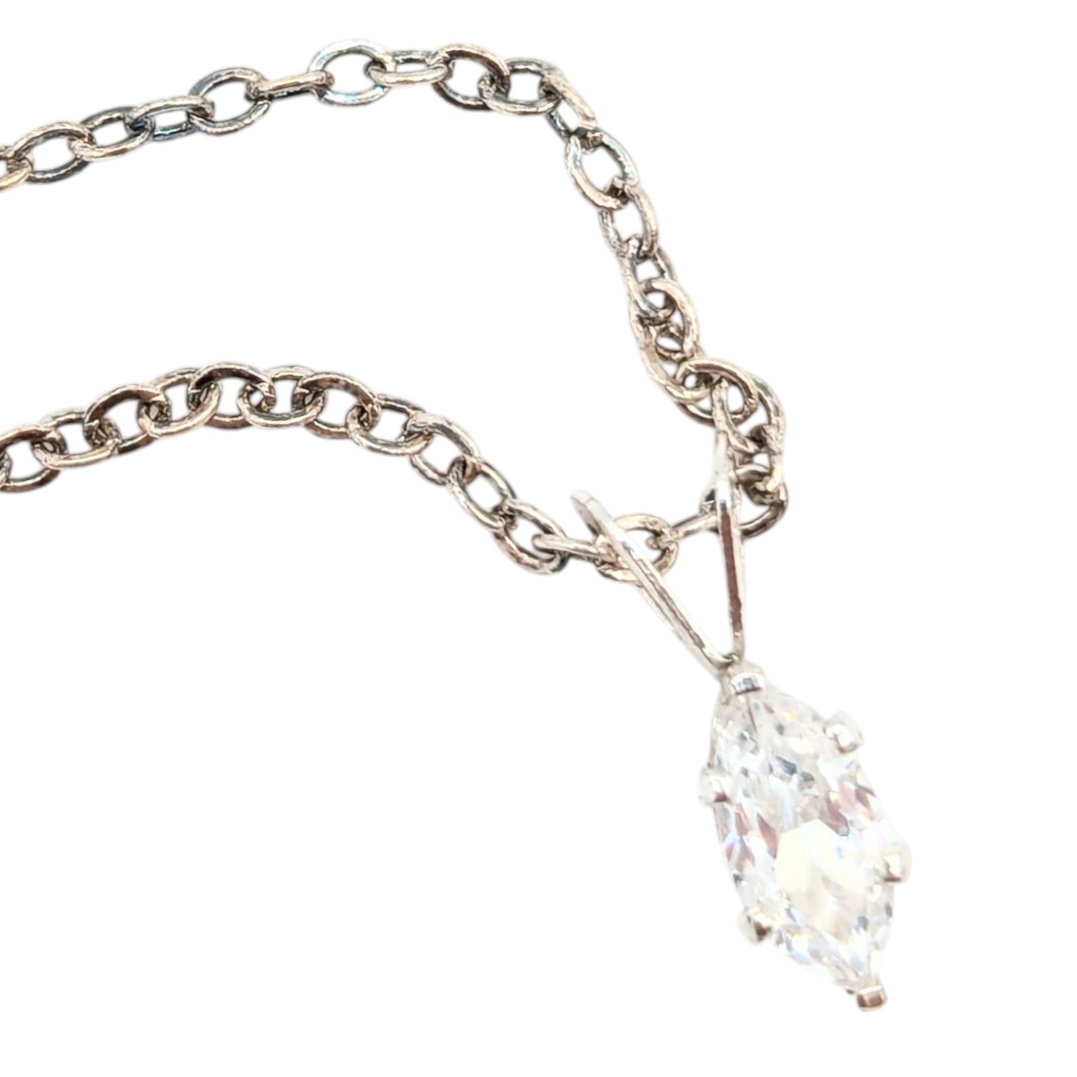 Sterling Clear Garnet Pendant with Cable Chain 2.2g