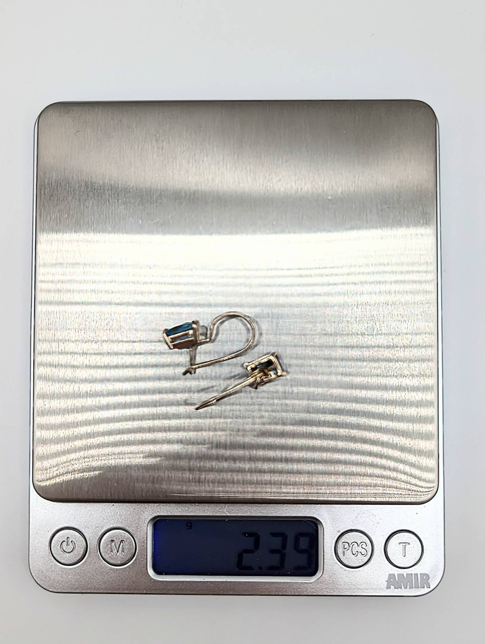 Sterling Earrings with Blue Rhinestone 2.39g