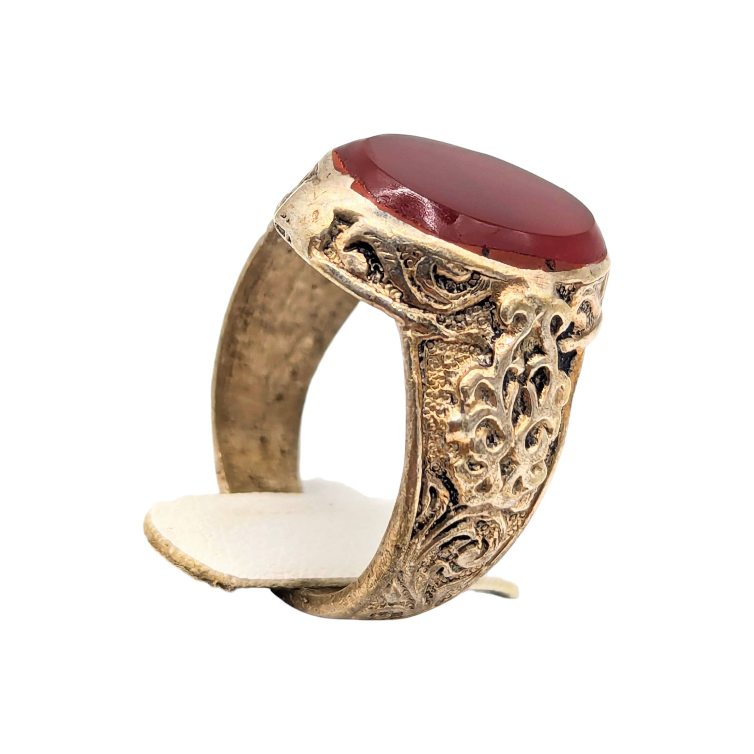Natural Brown Aqeeq Stone Ring, Size 7.75 7.58g