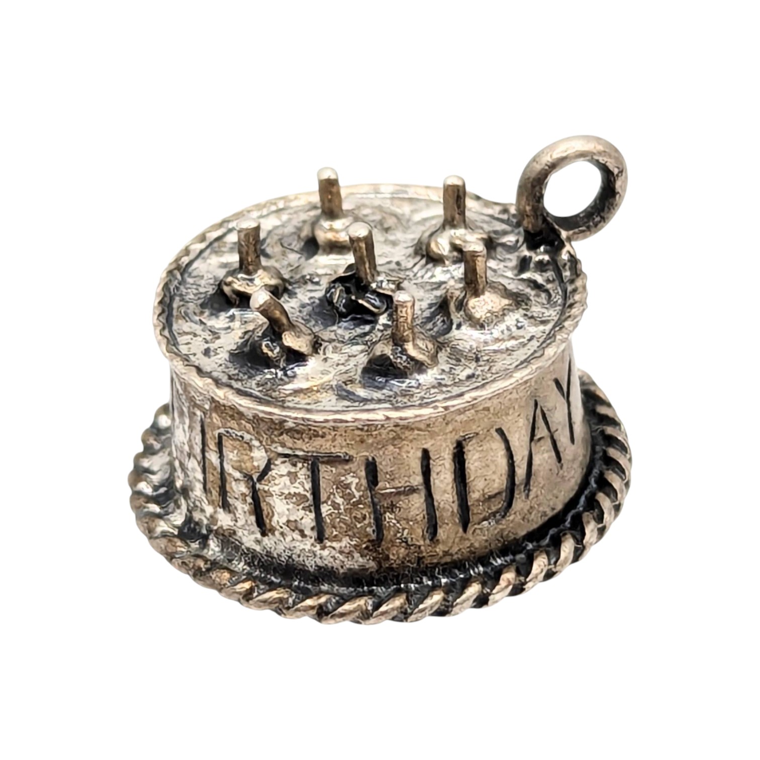 Sterling Happy Birthday Cake Charm with Candles 5.14g