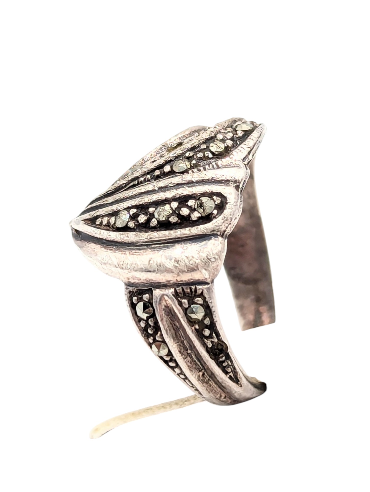 Sterling Marcasite Fan Ring Size 5.5, 3.3g