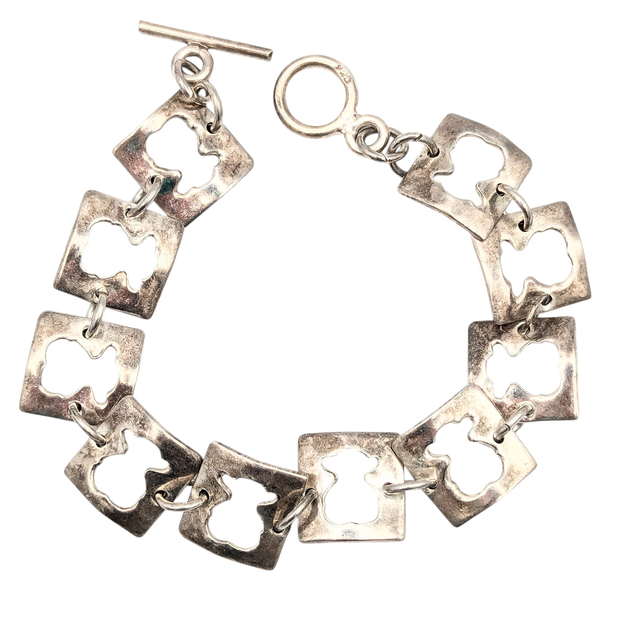 Sterling bear Silhouette rectangle links bracelet 22.4g