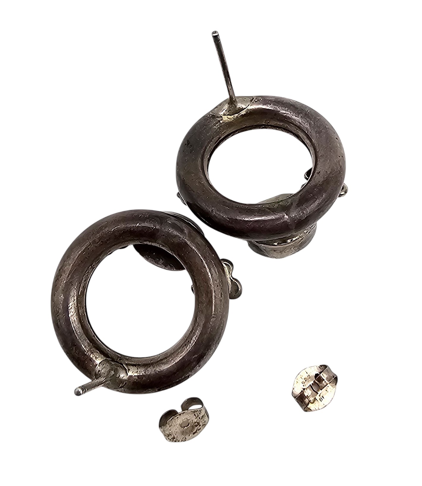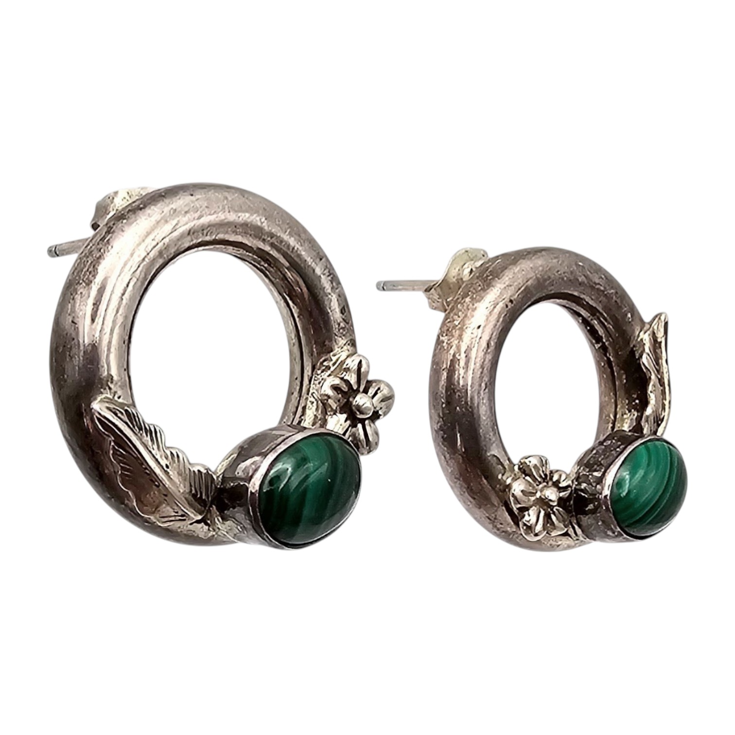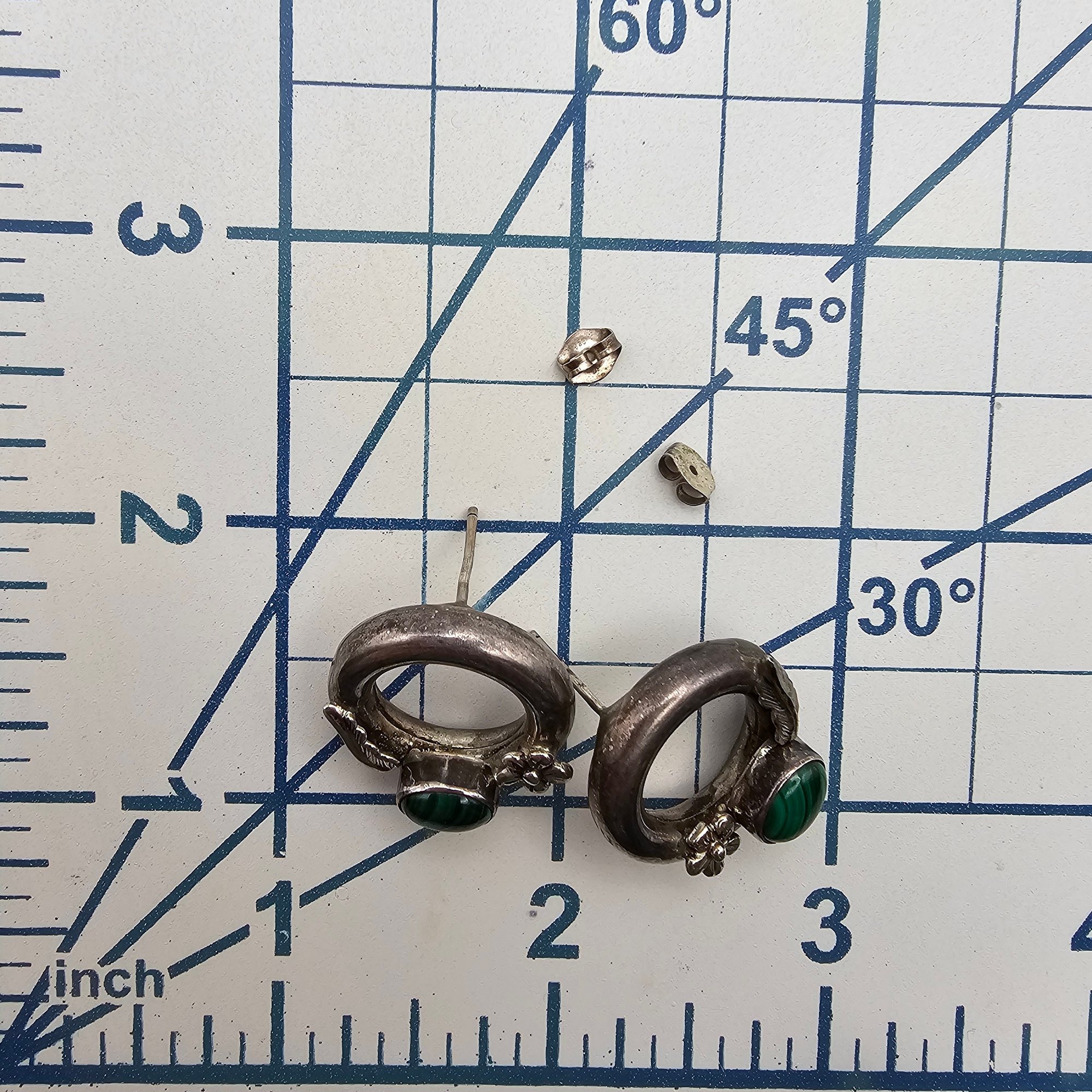 Southwestern Malachite Sterling Silver circle earrings 8.1 G