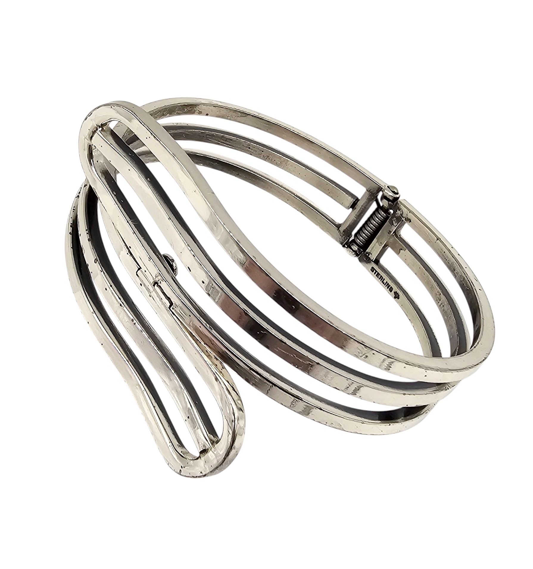 Signed Sterling Silver Open Band Hinge Bangle Bracelet 36.3 G