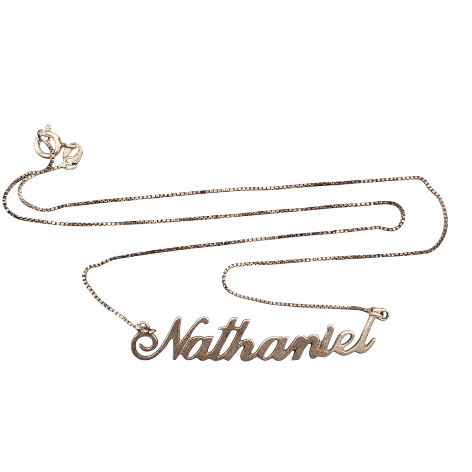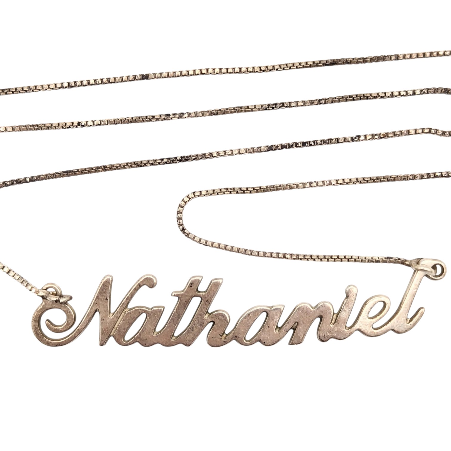 Sterling Box Chain Necklace w/ Nathaniel Pendant 3.5g 925