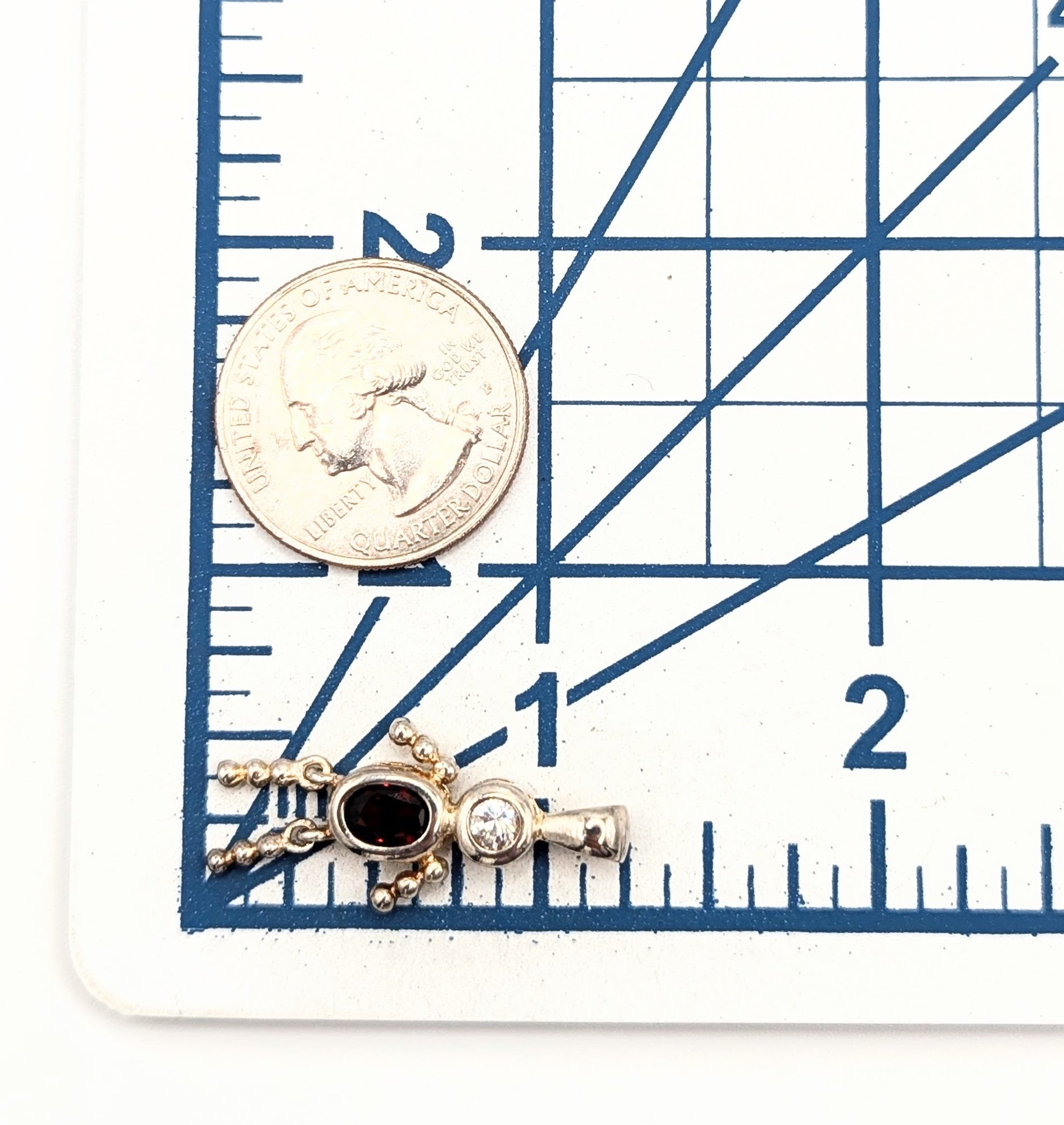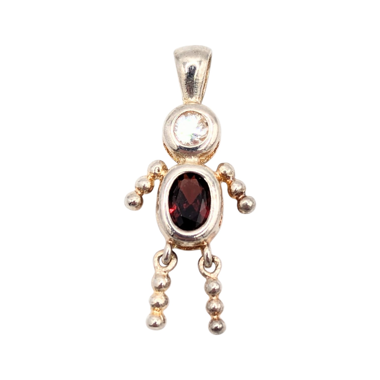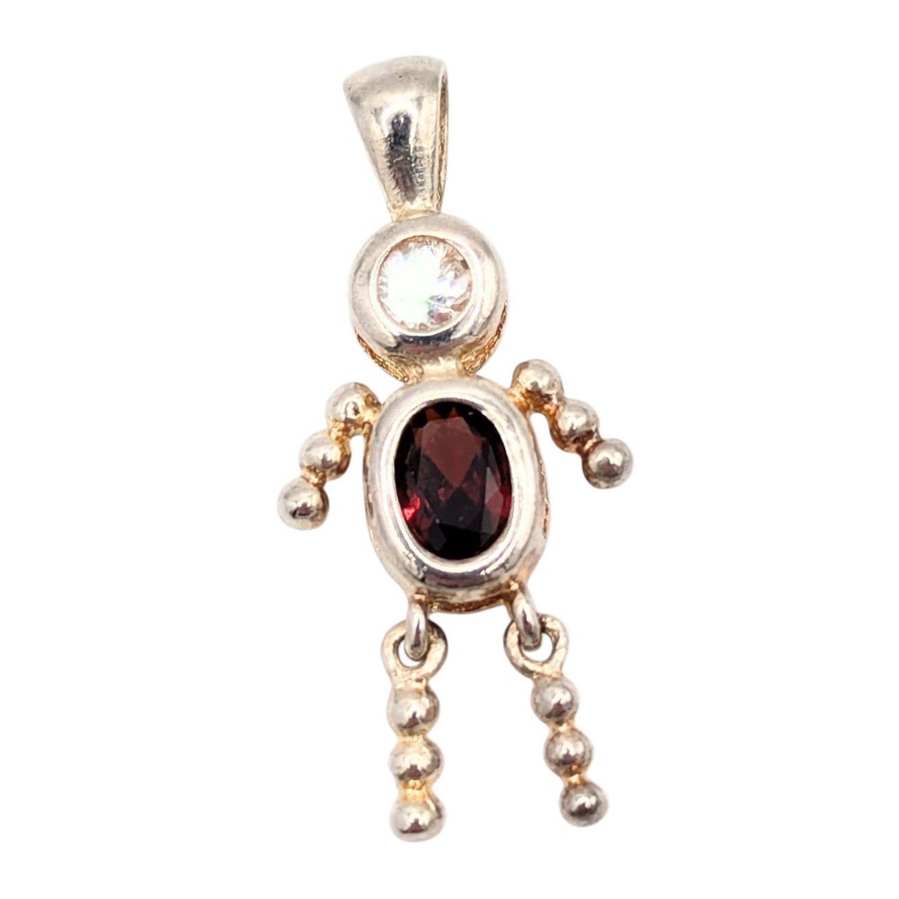 Sterling Red Garnet,clear Rhinestone person pendant 2.5g
