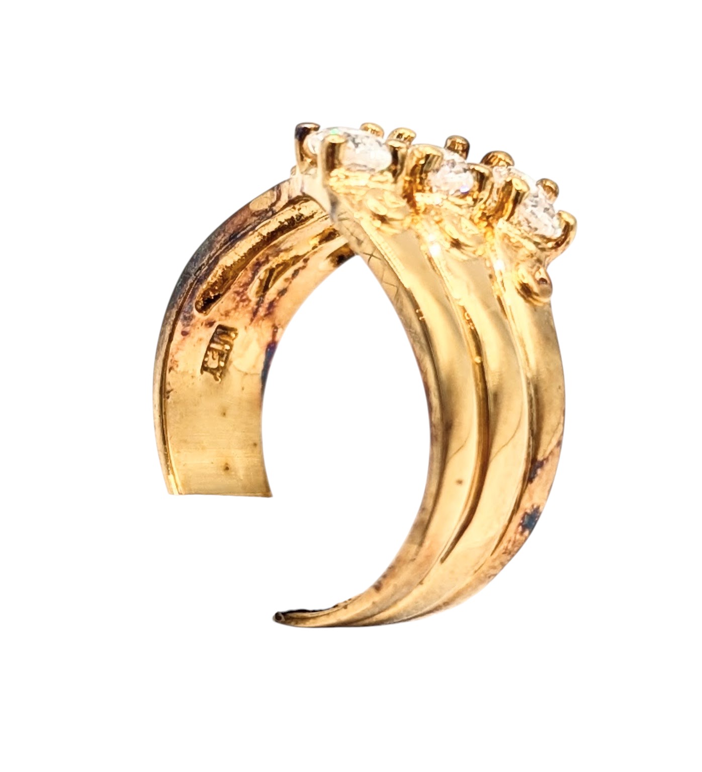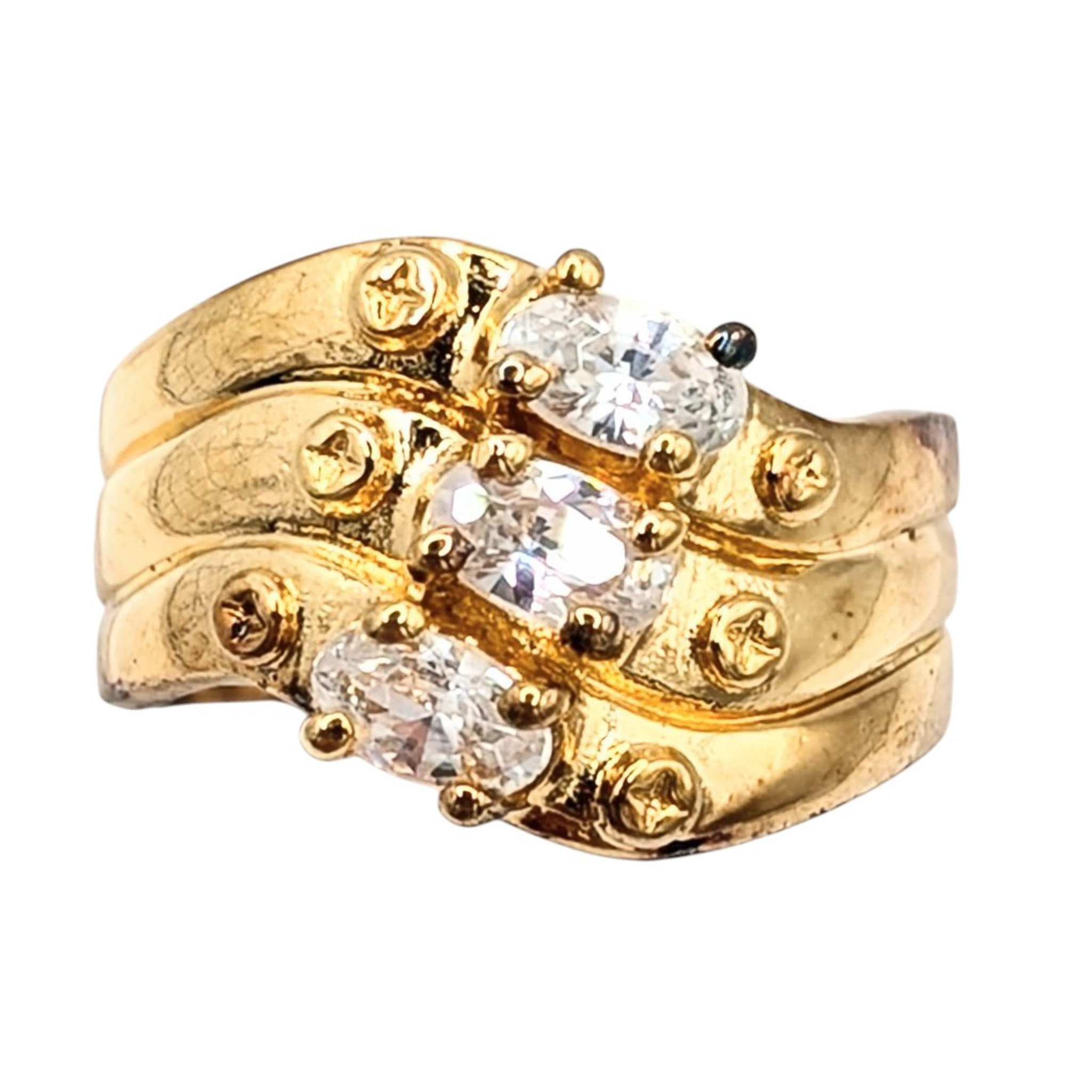 Gold Over Sterling Silver Rhinestone Cocktail Ring Size 5.5, 4g