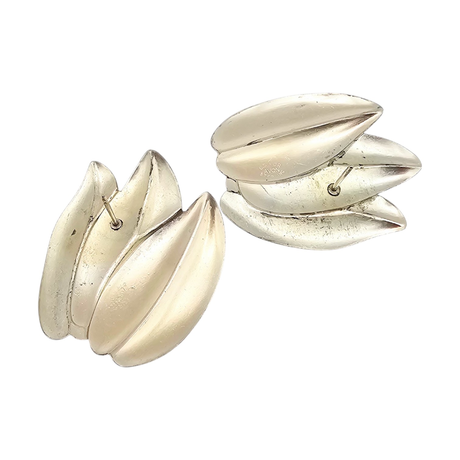 C.S. Sterling Silver Leaf Cluster Earrings 7.4 G