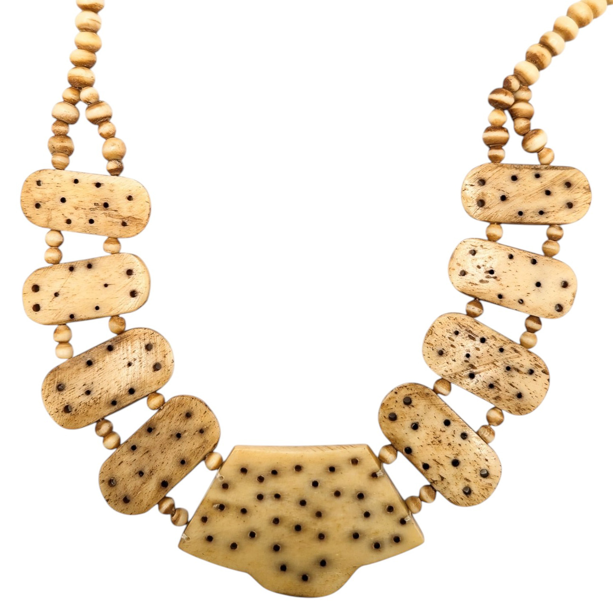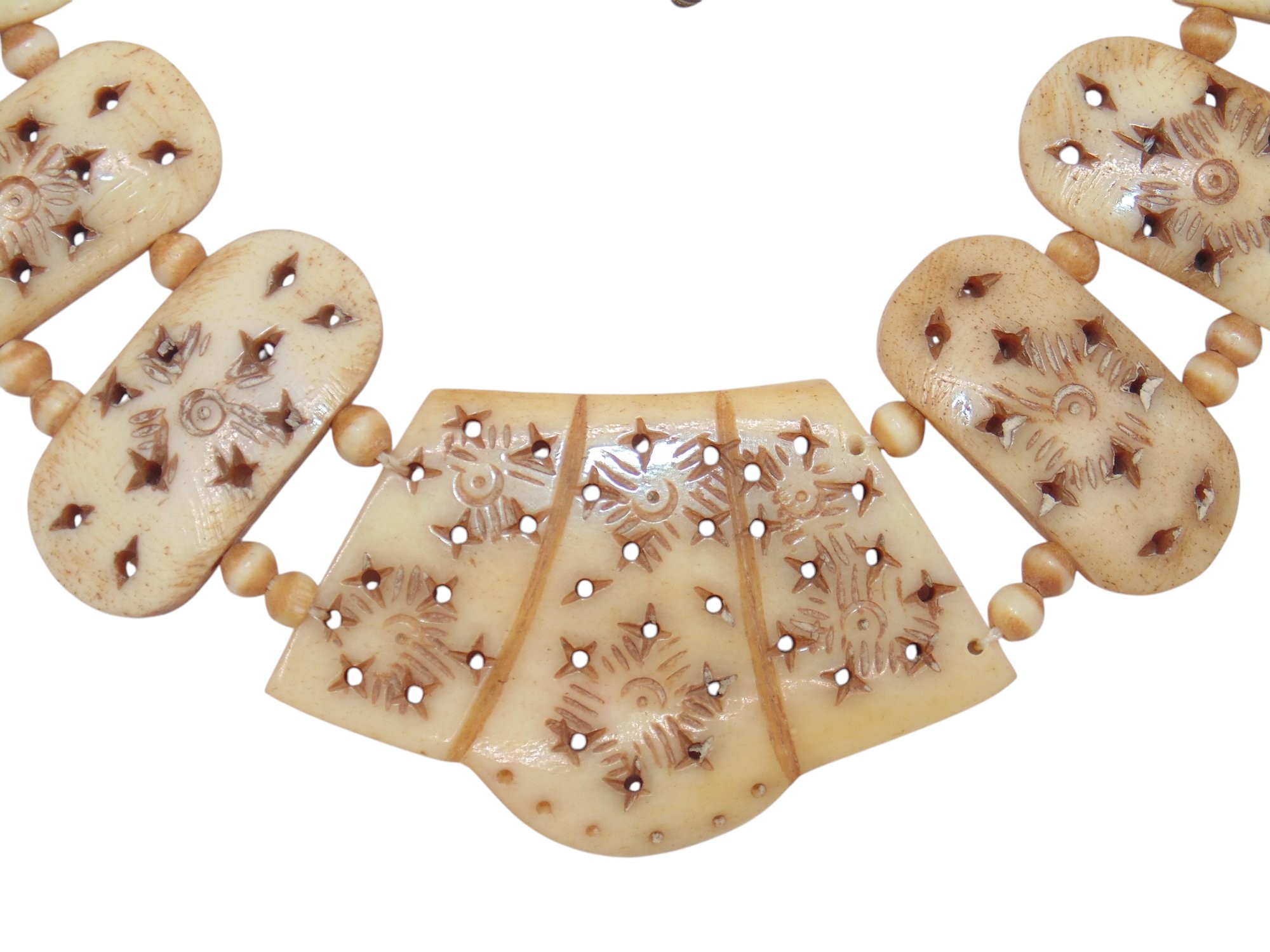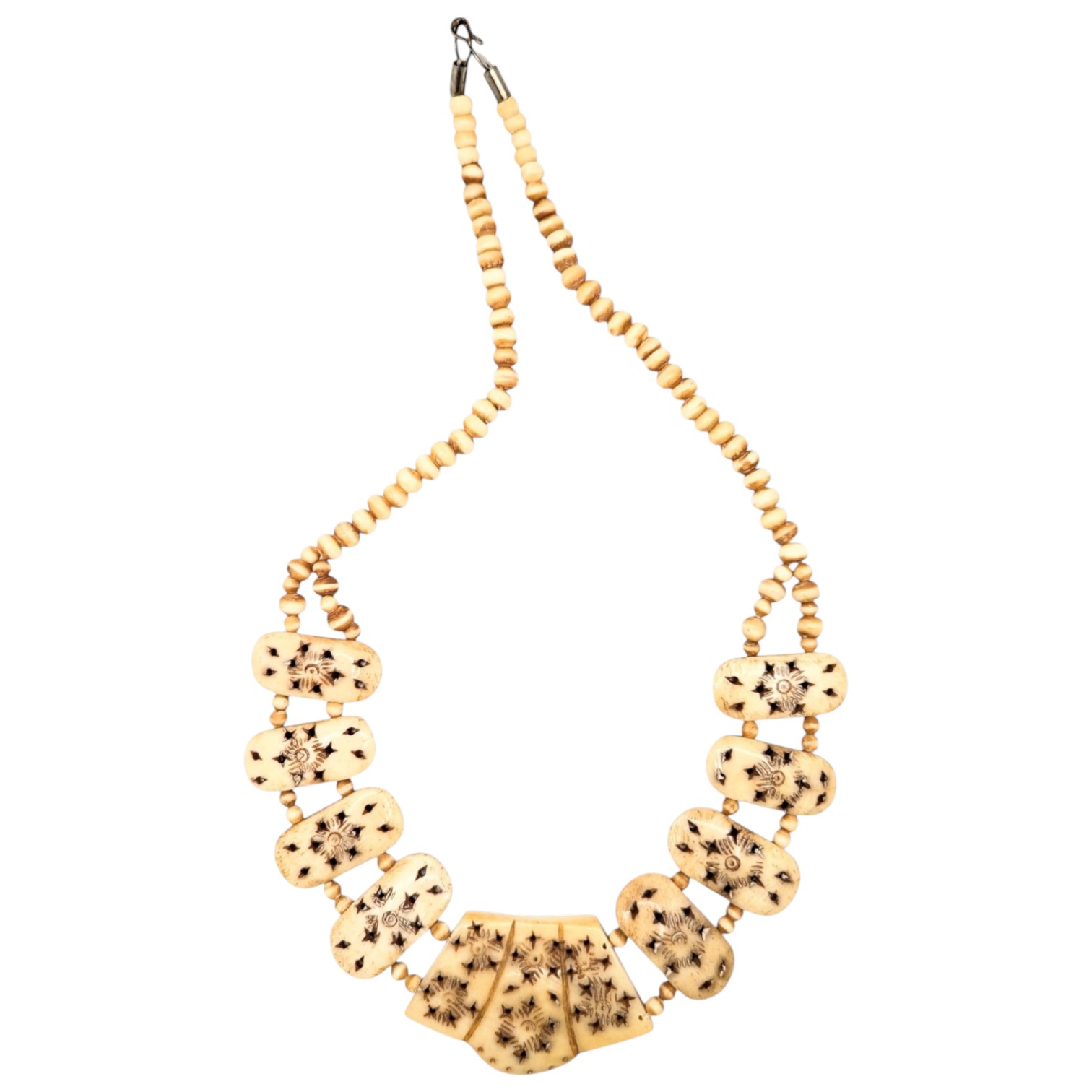Sterling Clasp With Carved In Bone Necklace 67.6g