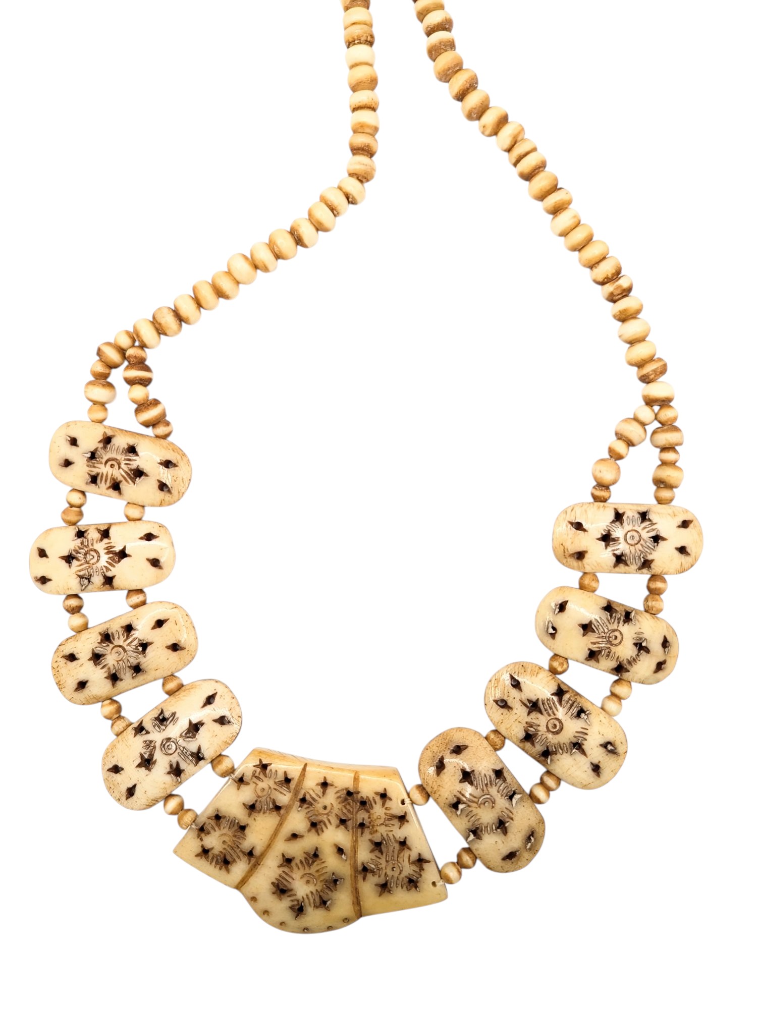 Sterling clasp with Carved in Bone Necklace 67.6g