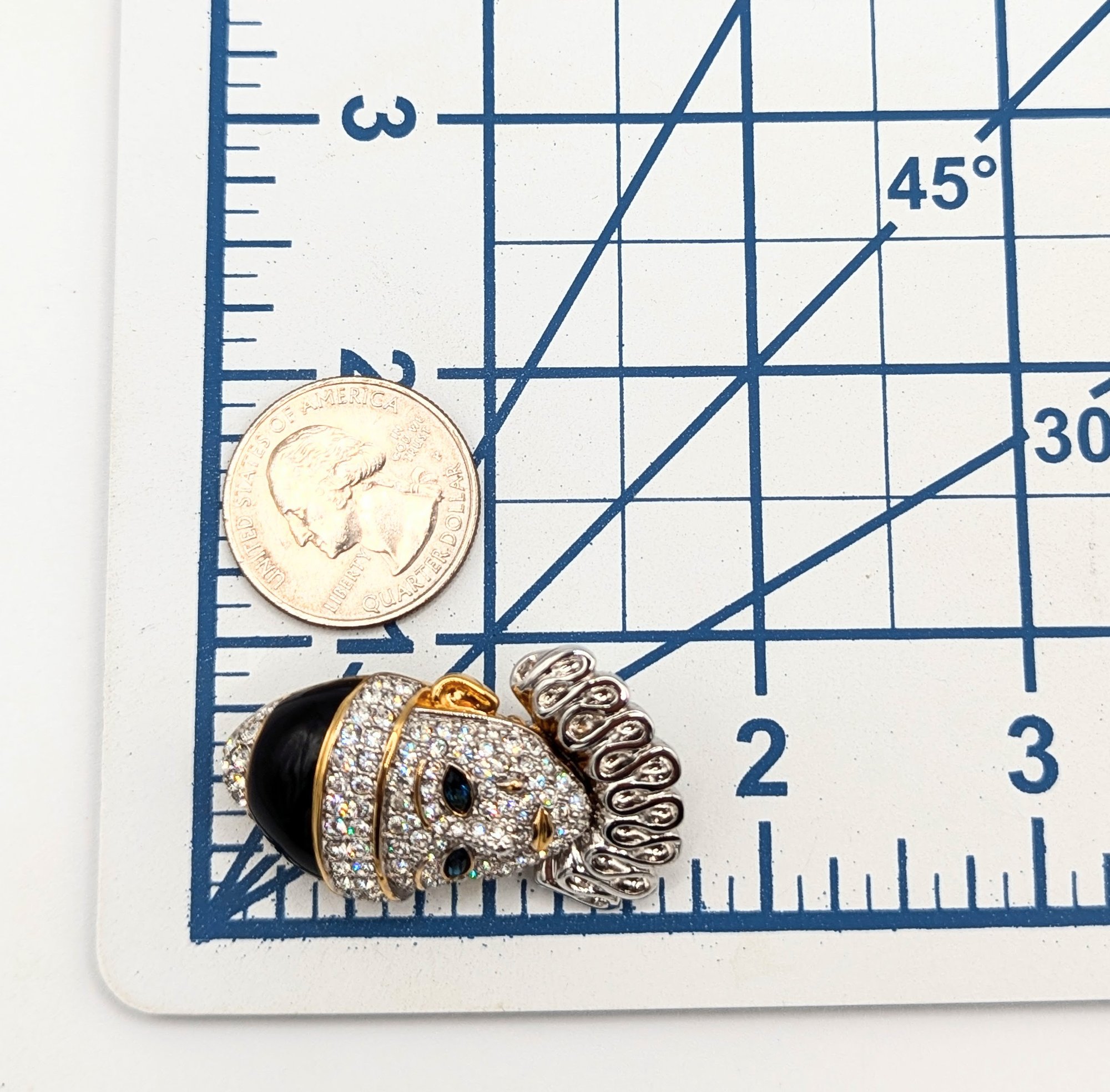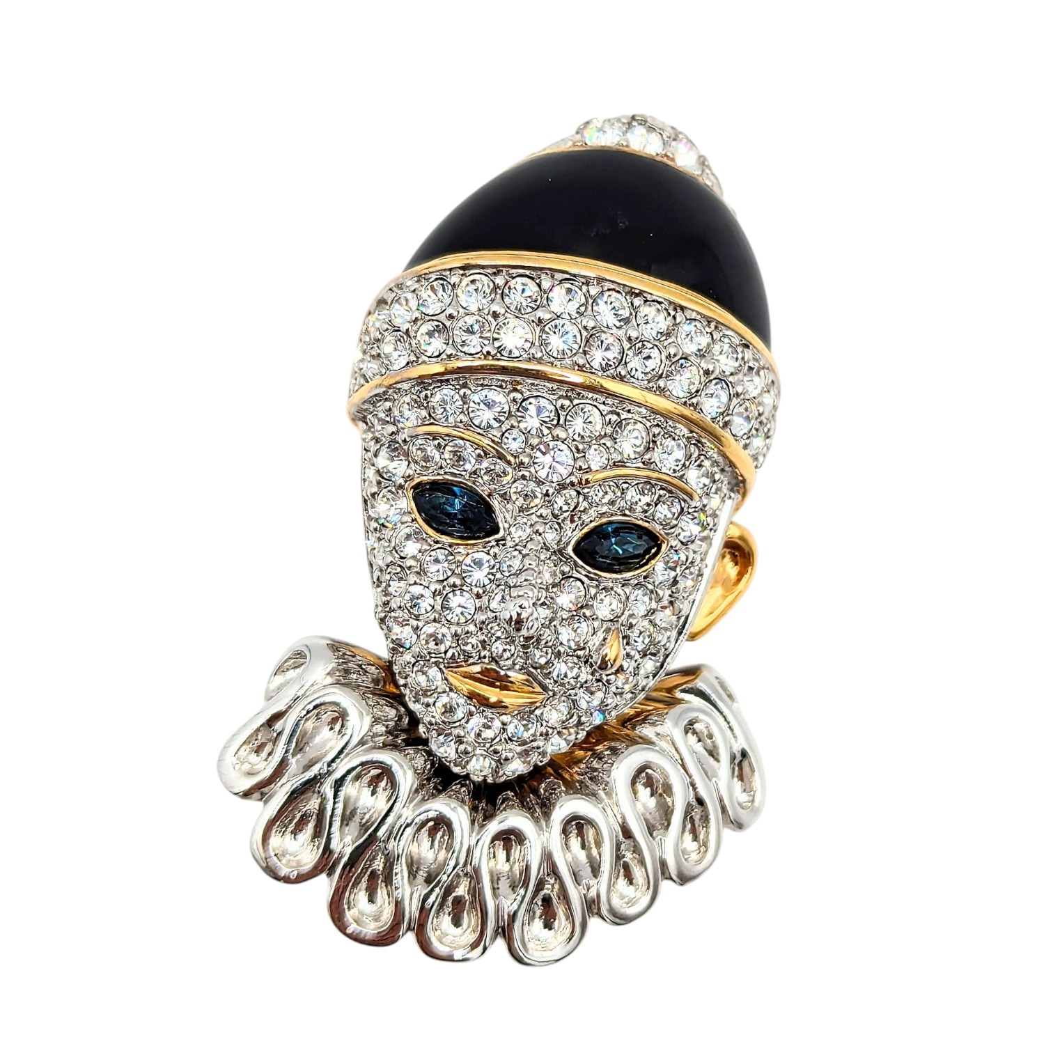 Sterling rhinestones gold over clown brooch 17.6g