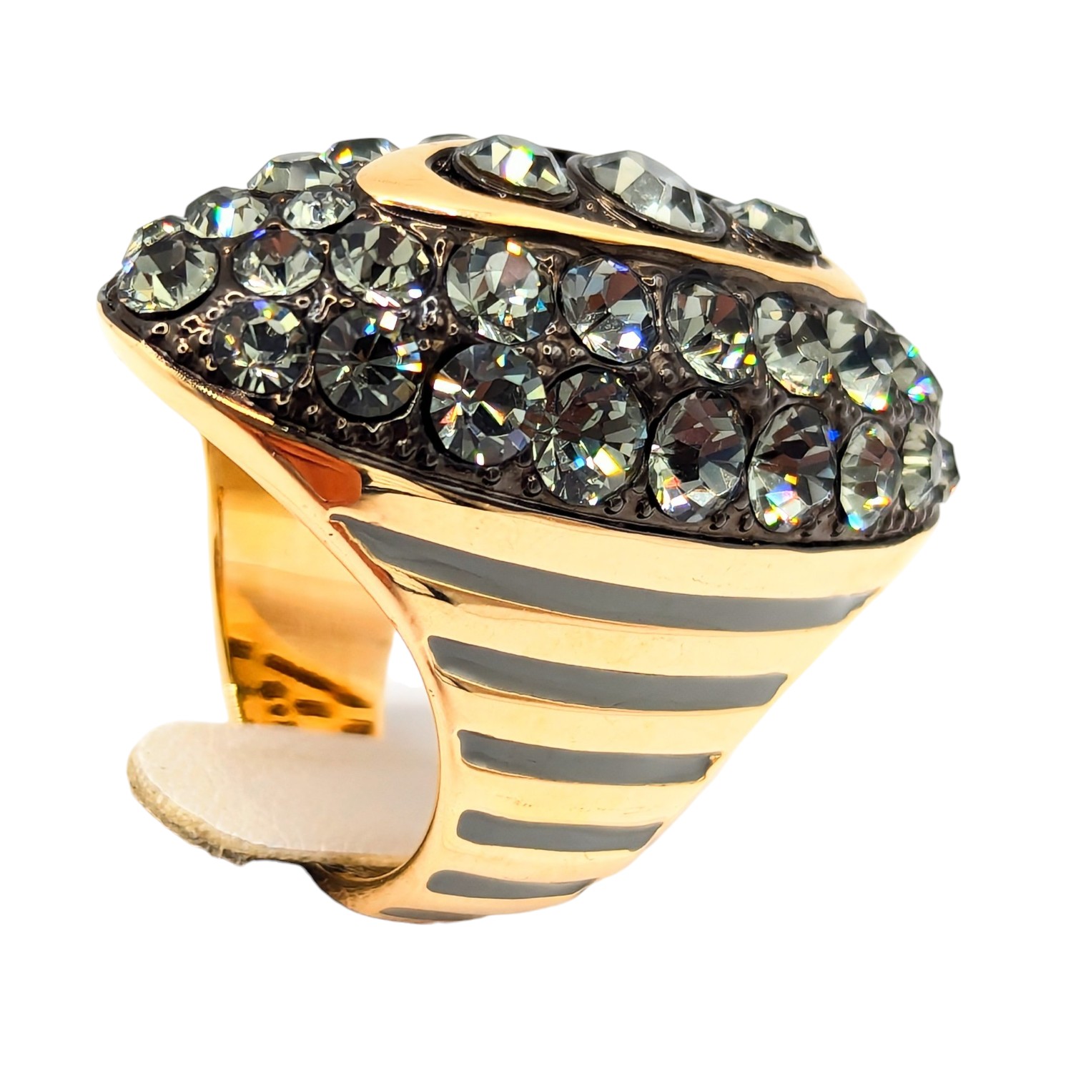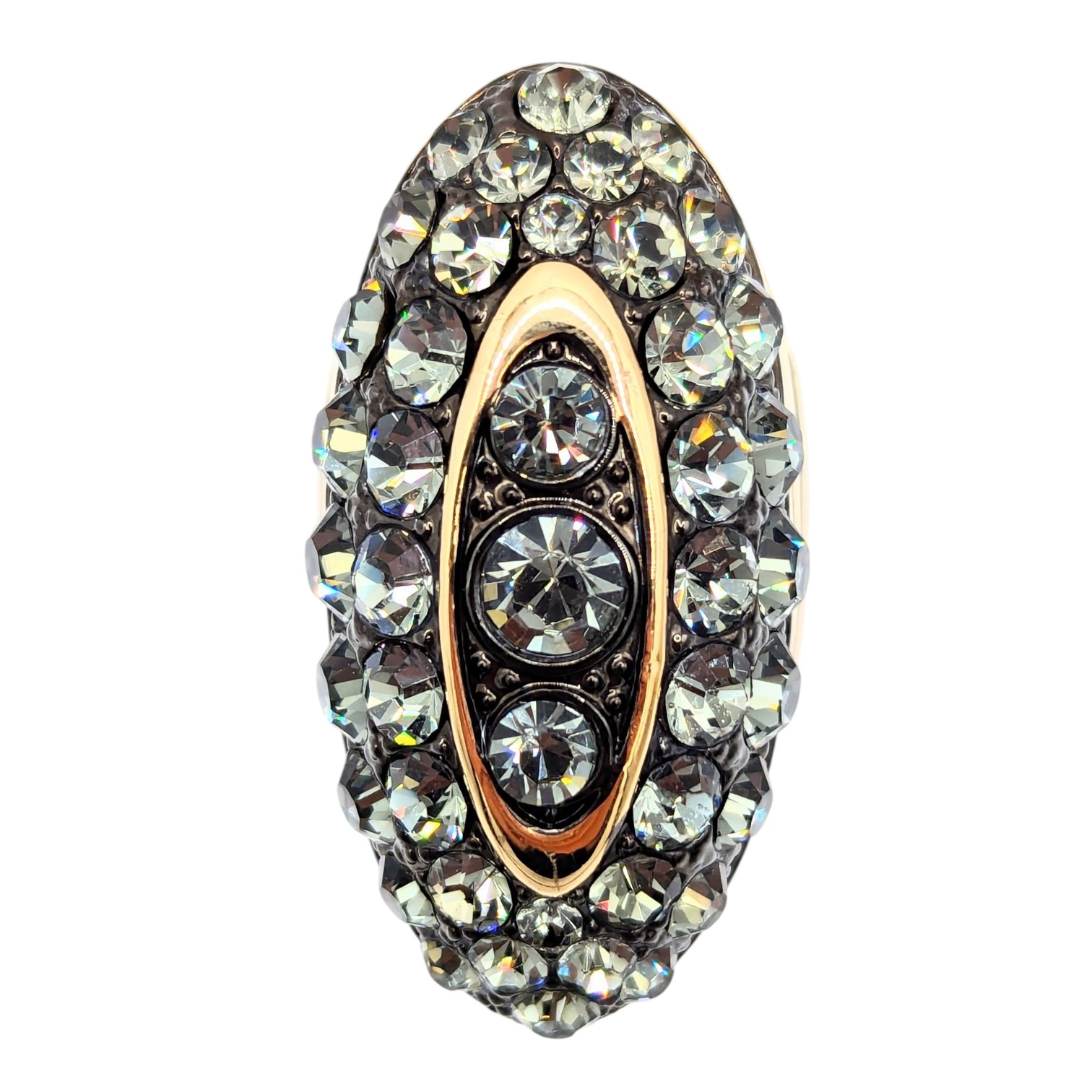 Sterling akkad China gold over rhinestones large oval cocktail ring Sz. 6.75 17.9g