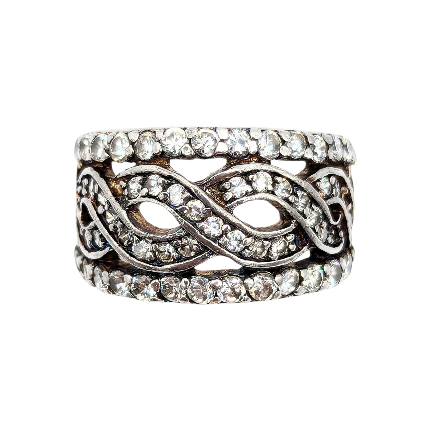 Sterling 925 rhinestones weave design ring Sz. 5.25 7.2g