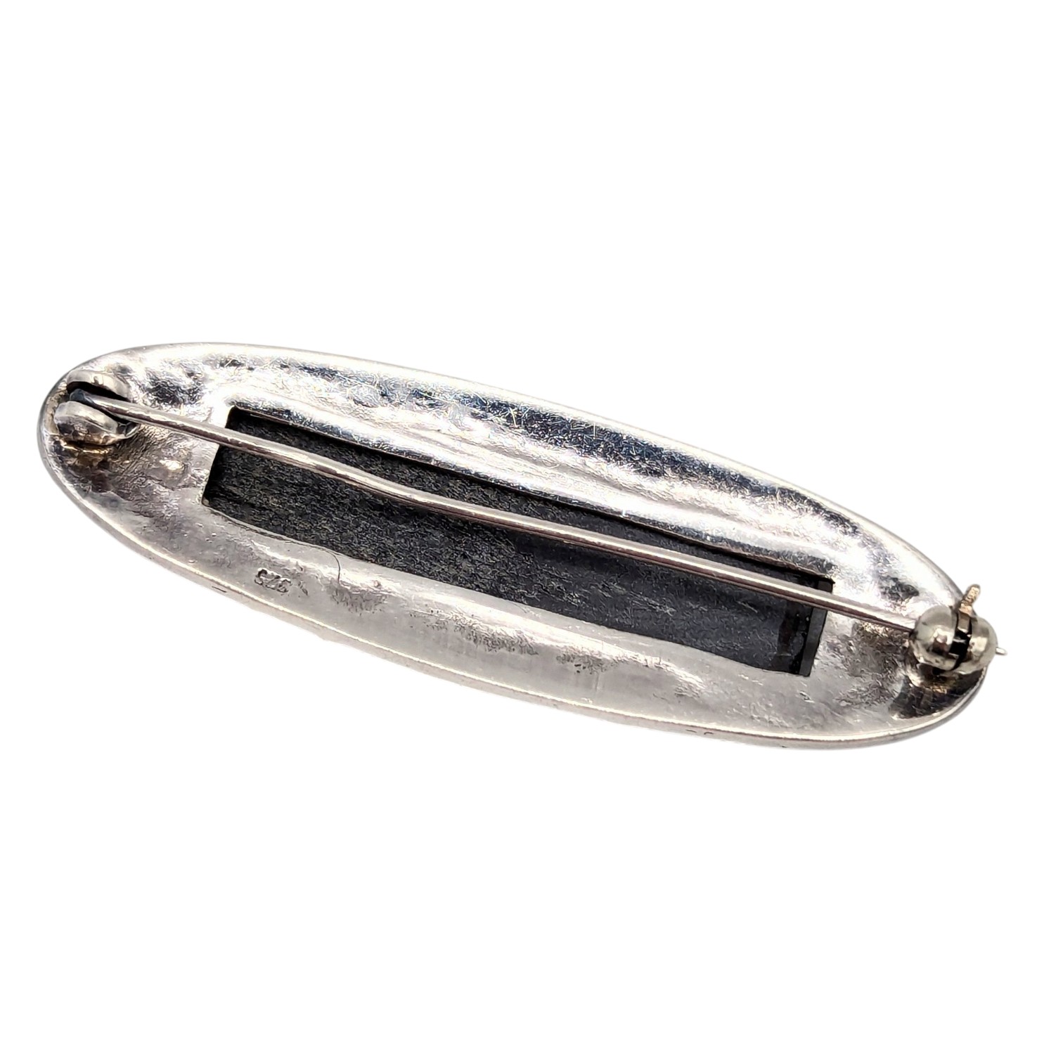 Sterling 925 marcasite black tourmaline long brooch 12.8g