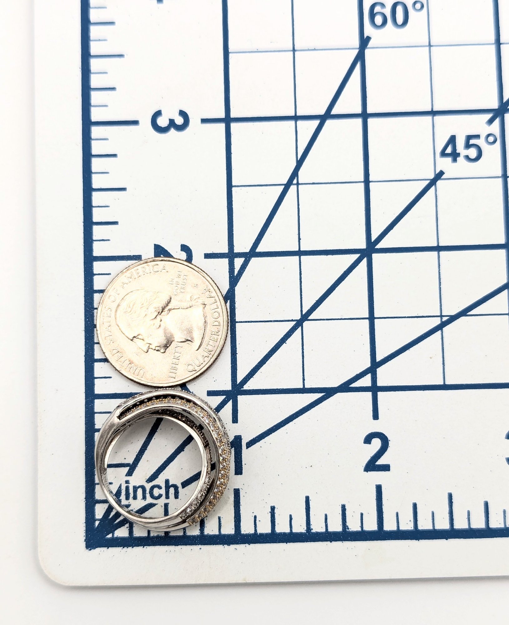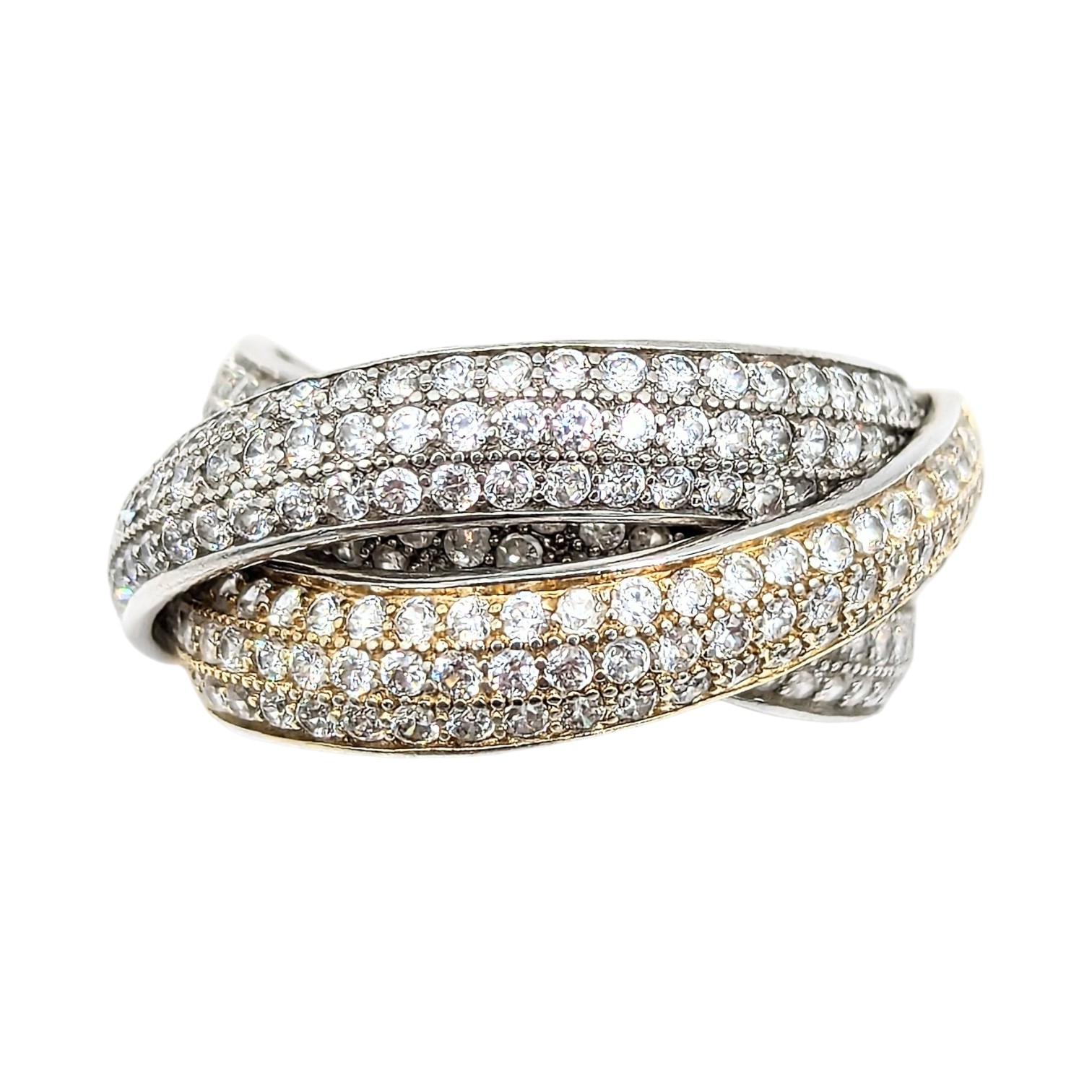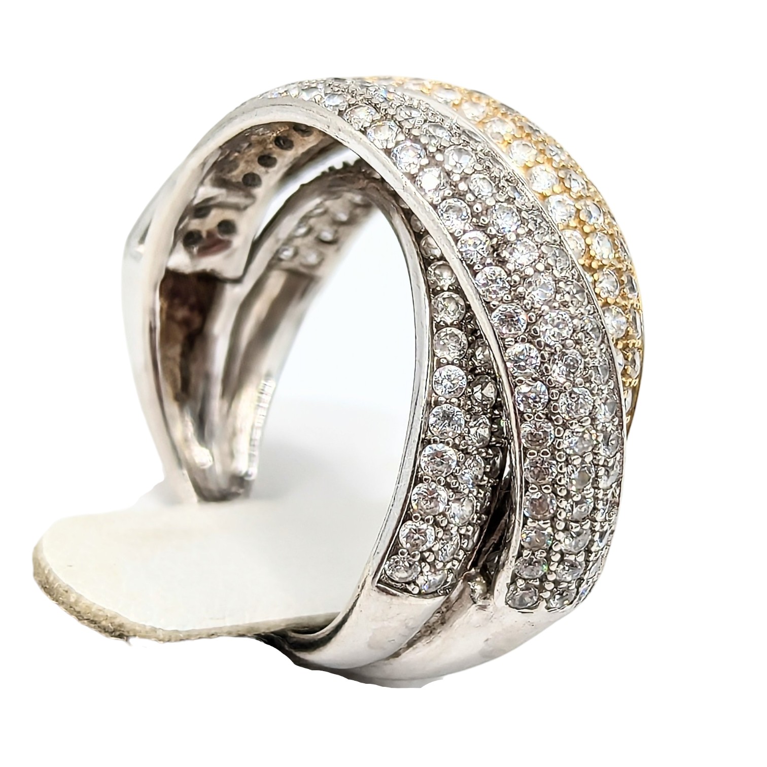 N Sterling Rhinestones Three Intertwined Rows, Ring Size 6.5, 5.2g