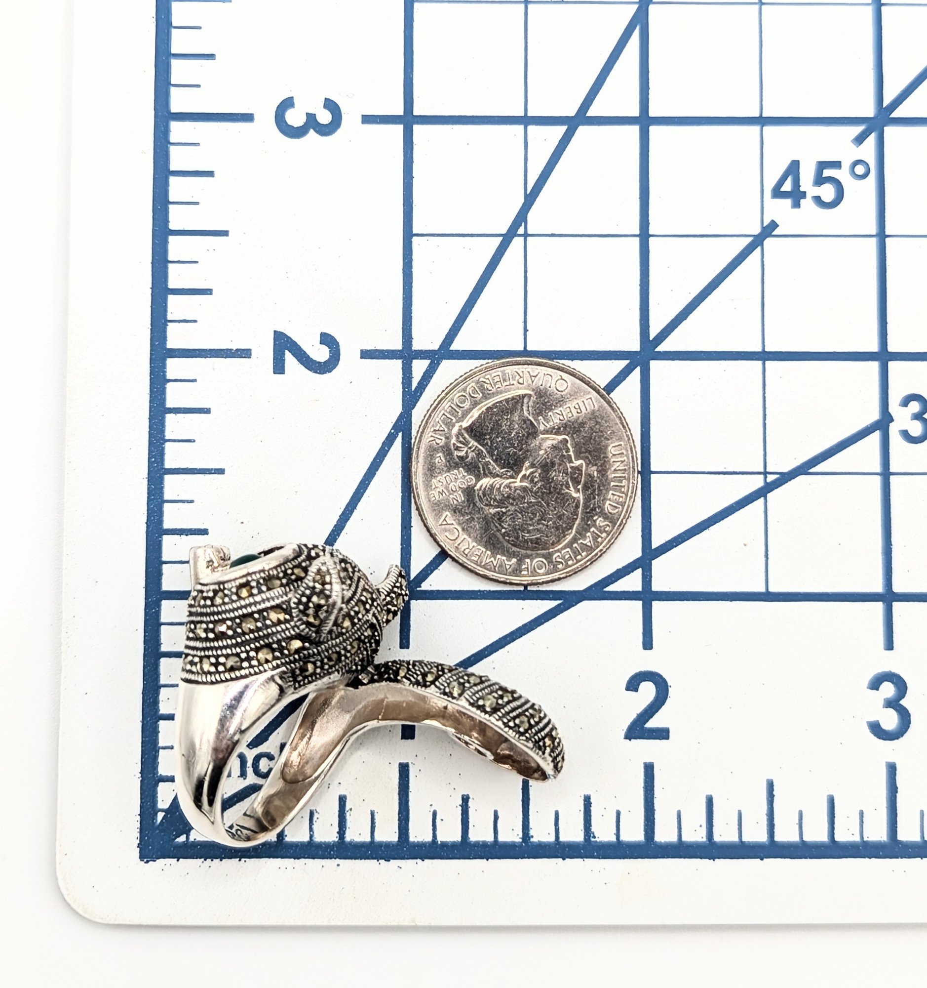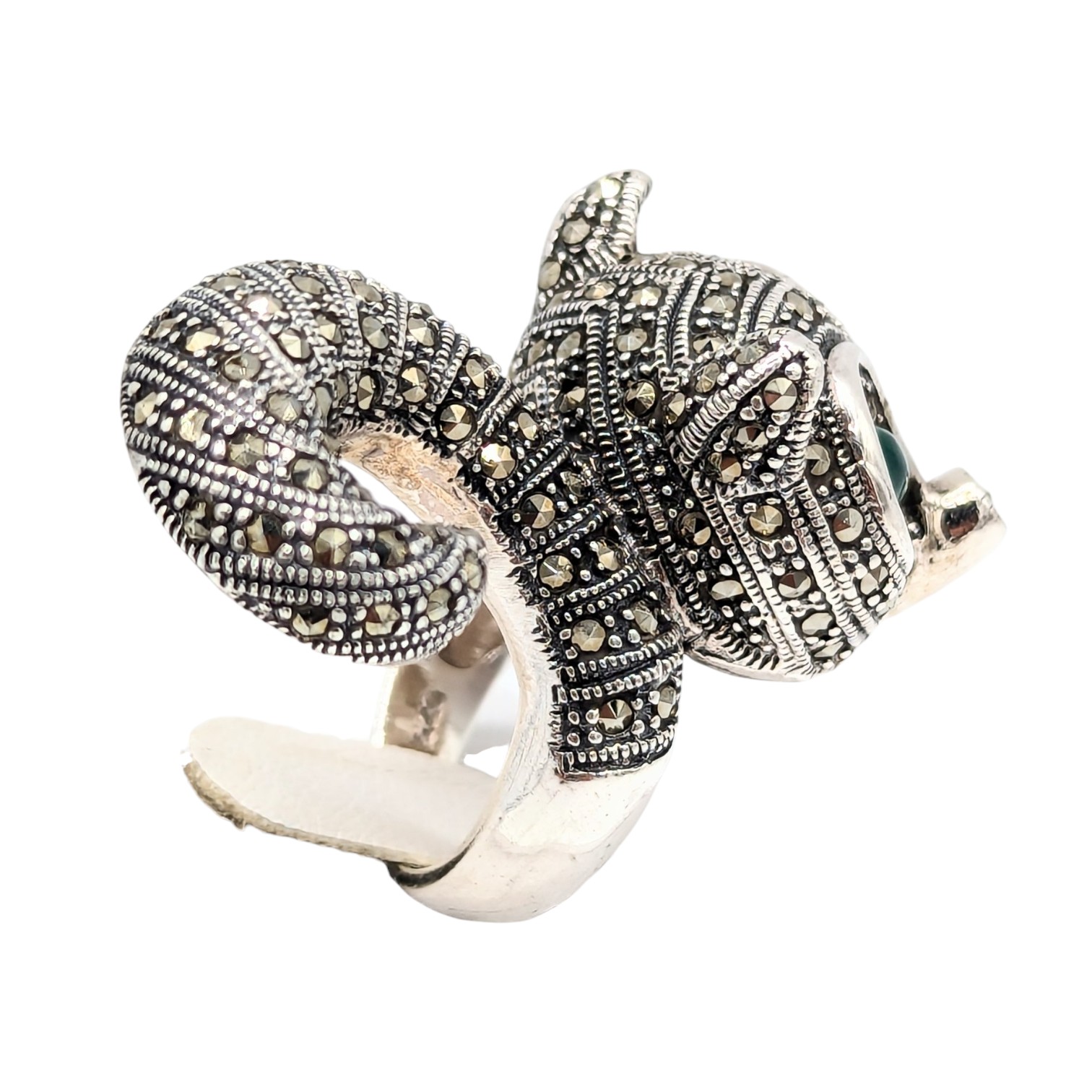 Sterling Marcasite, Green Resin, Fox Ring Size 6.5, 19.5g