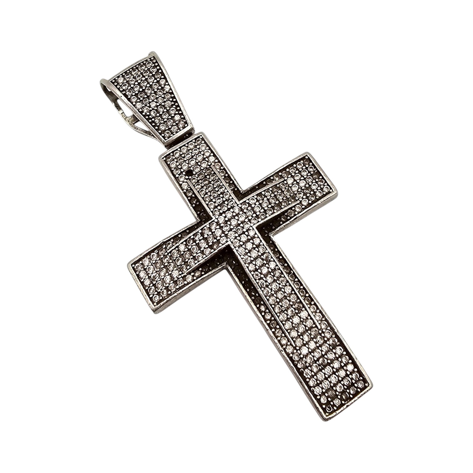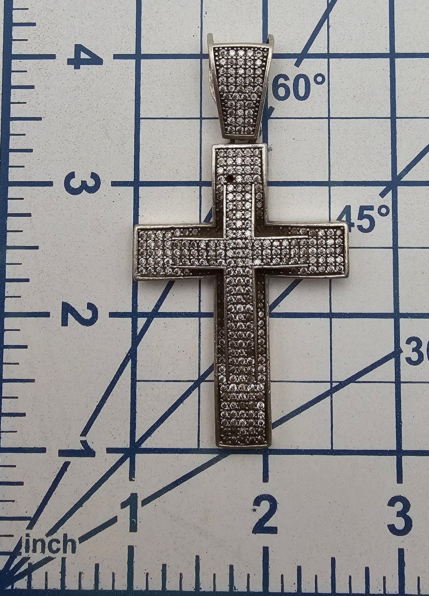PJ clear stone Sterling silver cross Pendant 20 g missing one stone