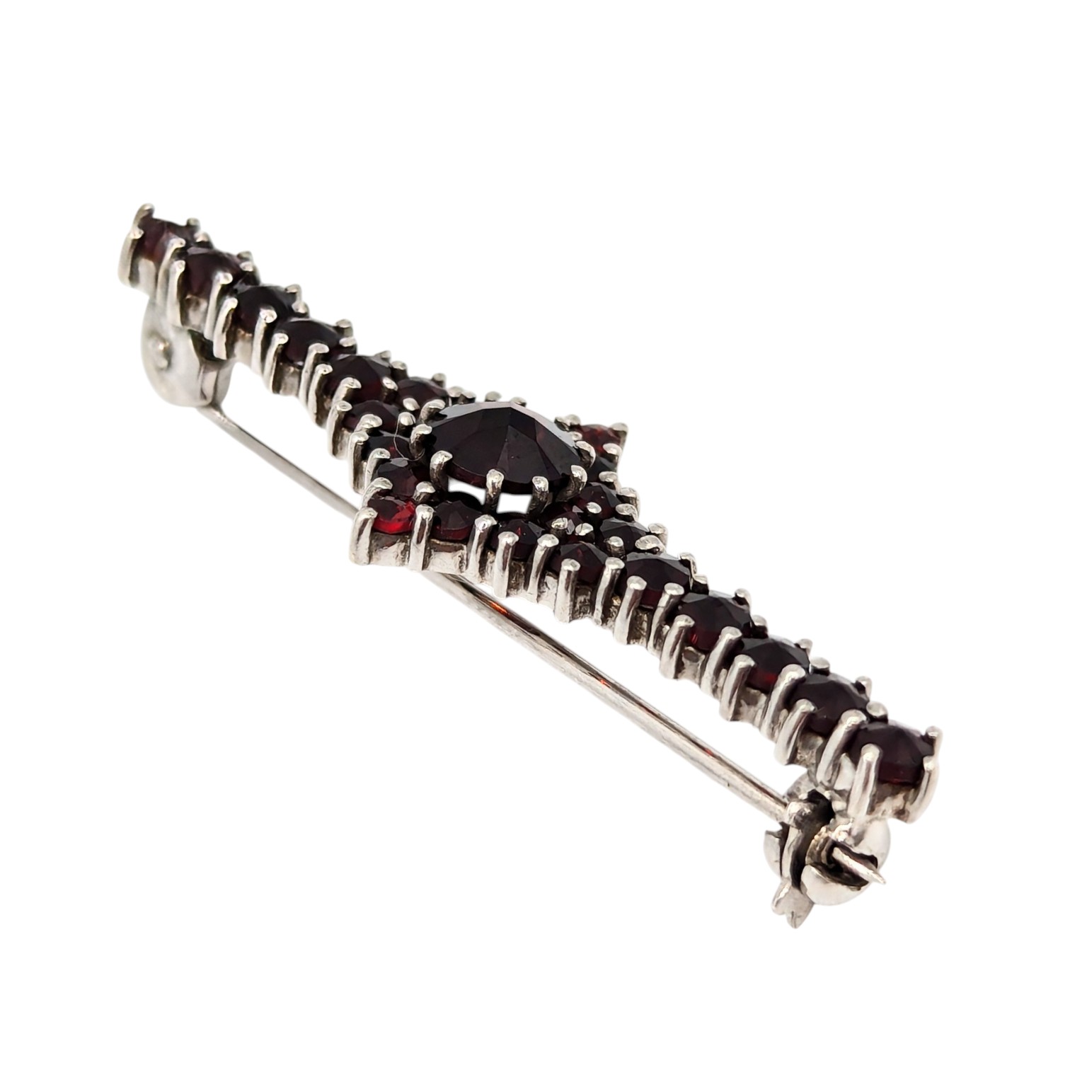 Sterling 925 Garnet, Long Diamond Shaped Brooch 3.3g