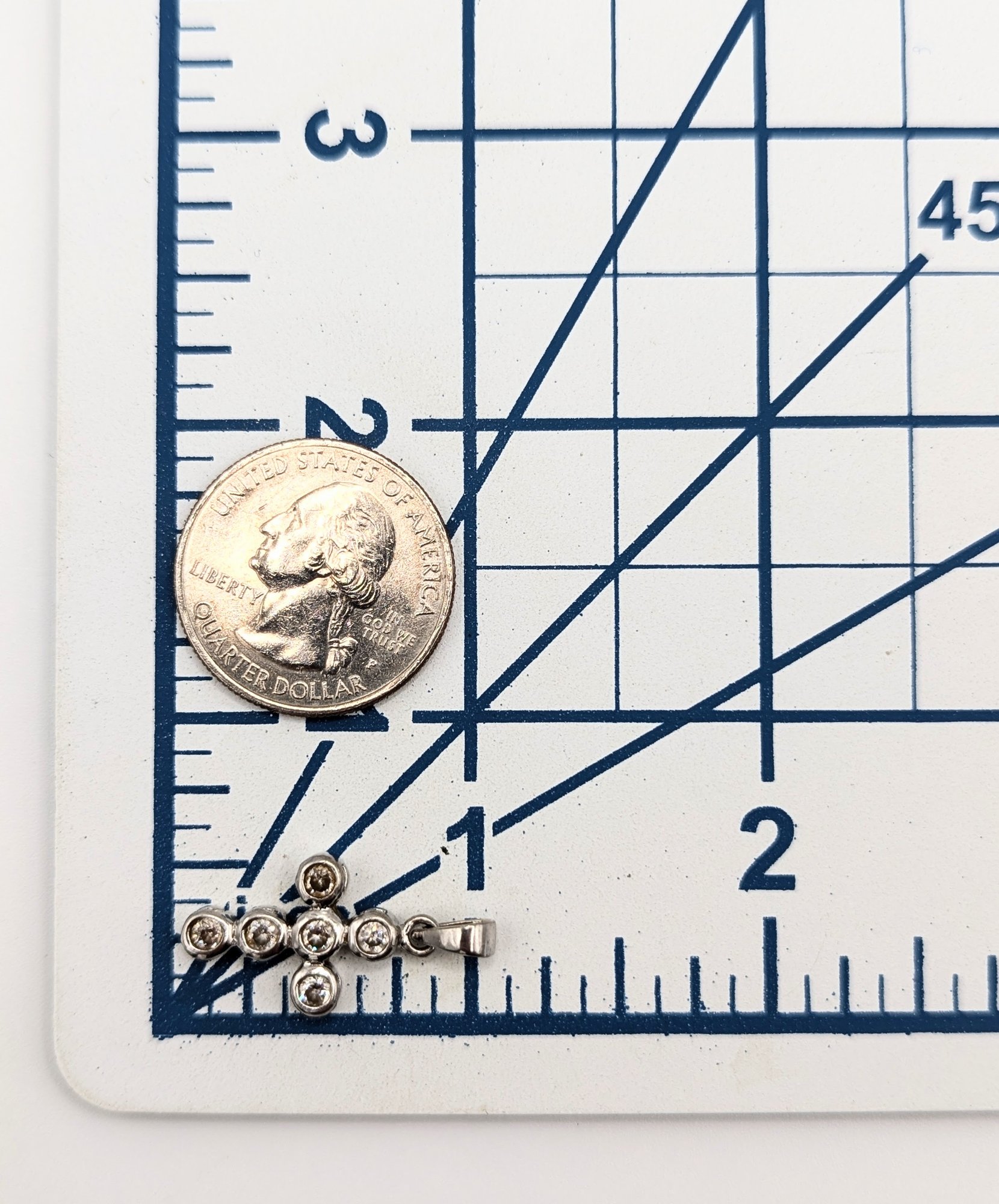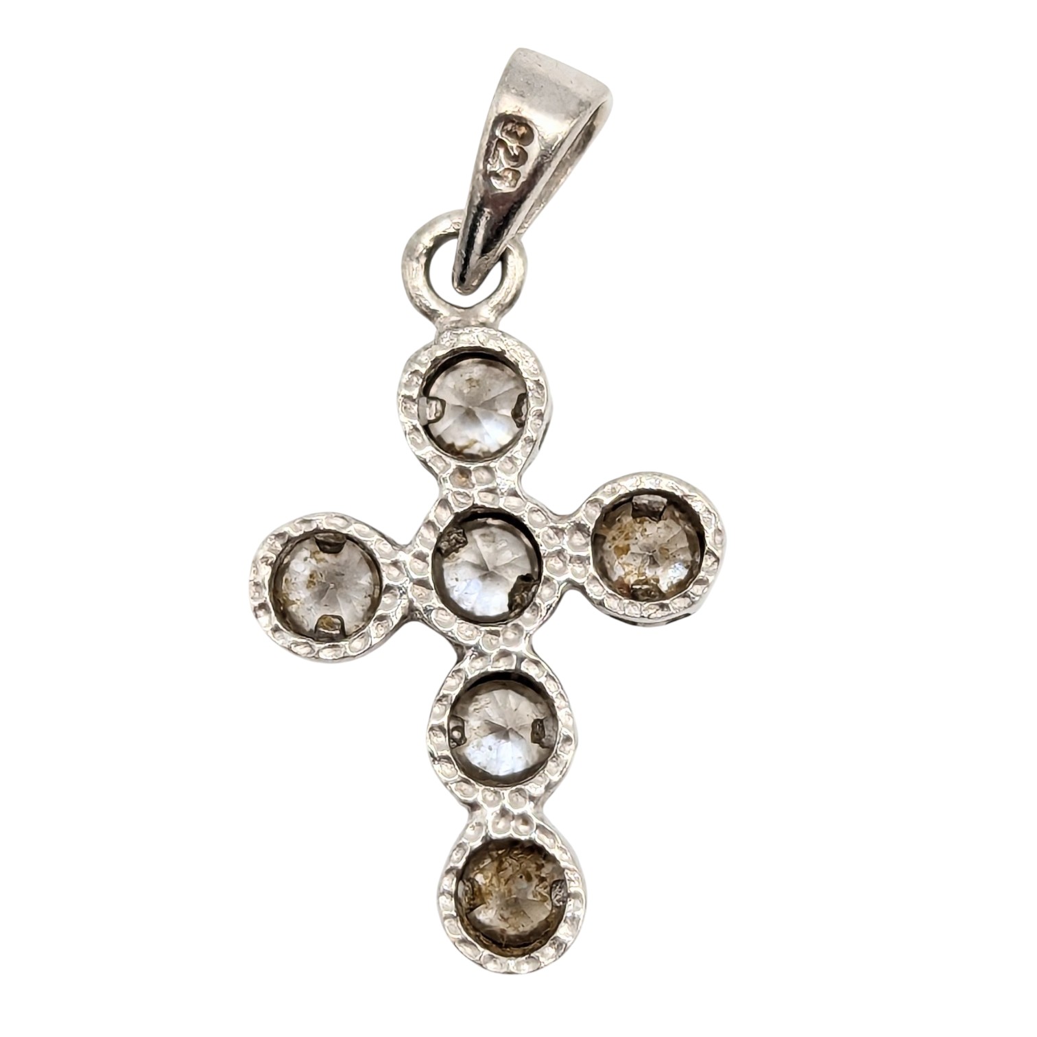 Sterling Clear Rhinestones Cross Pendant 2.0g