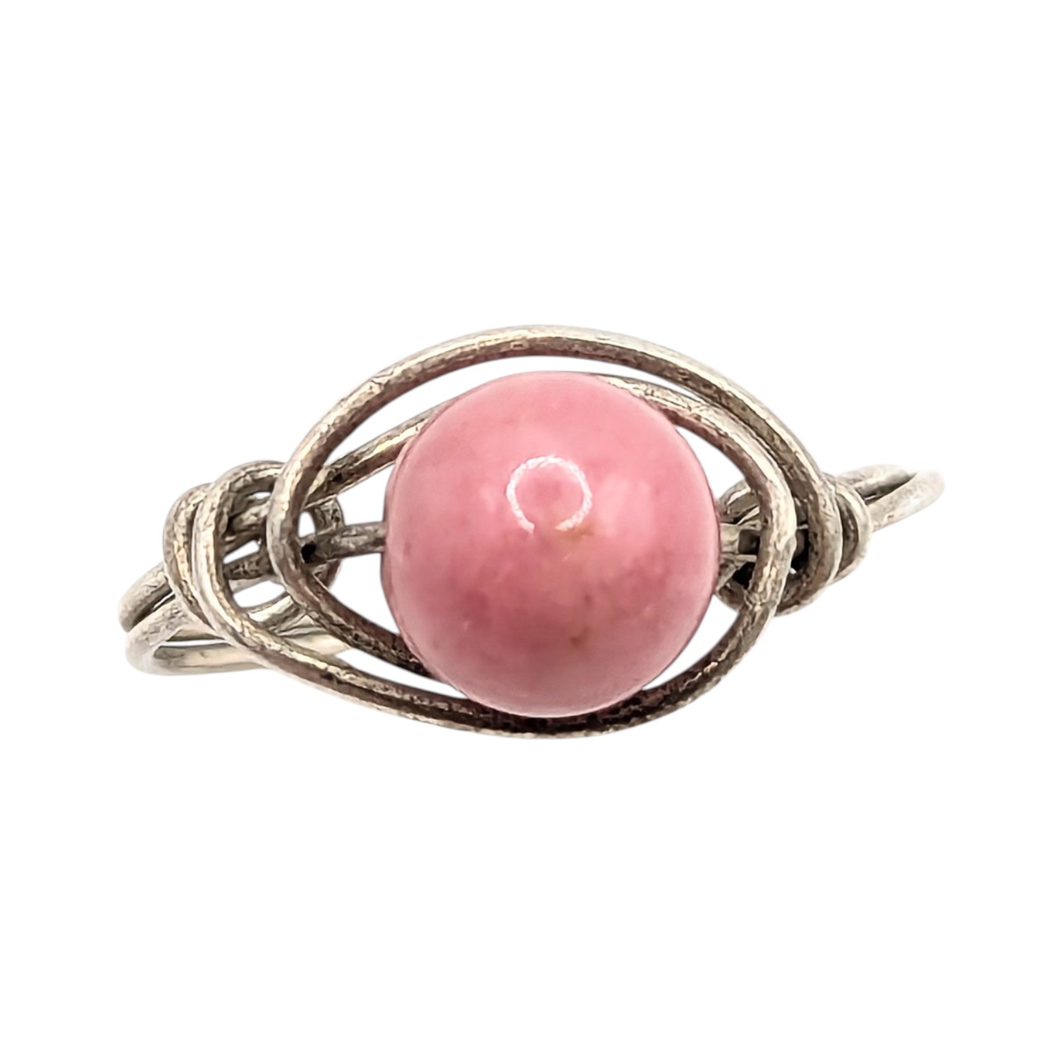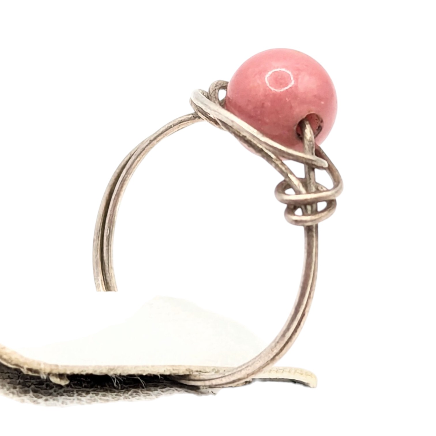 Sterling wire wrap pink Rhodonite bead ring Sz. 3.5 1g