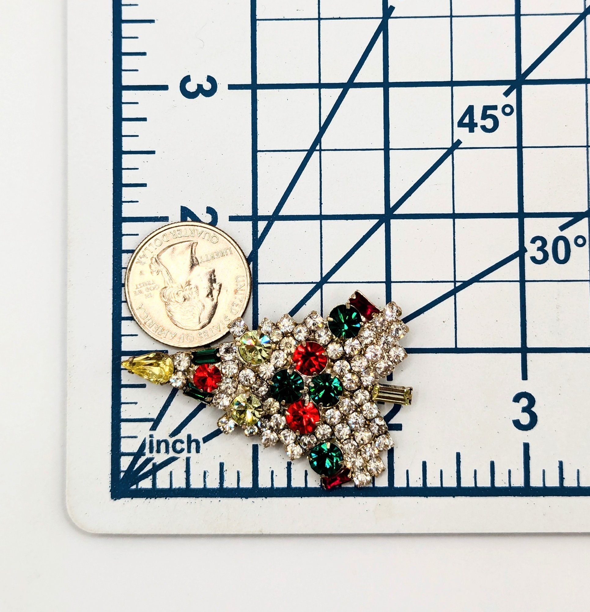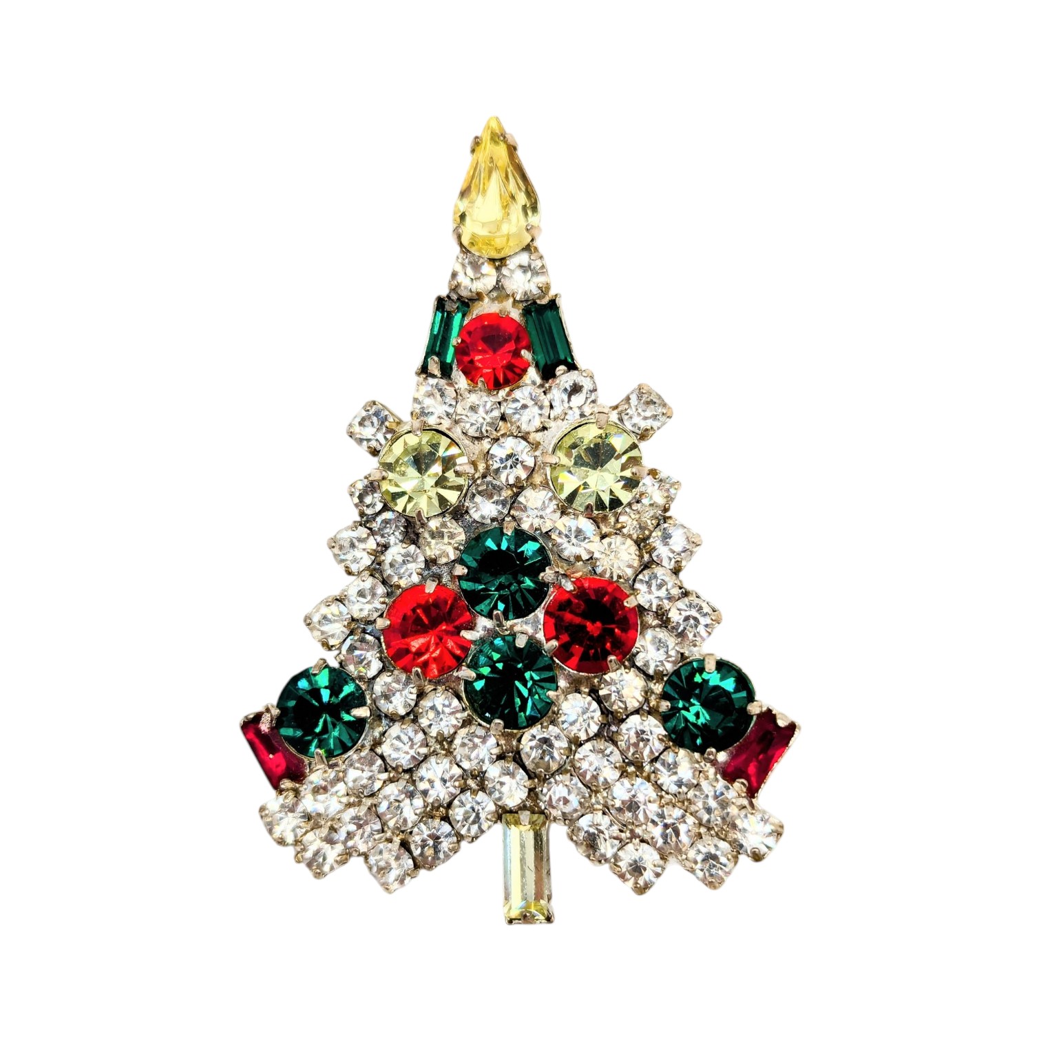 Sterling Rhinestones, Christmas Tree Brooch 11.5g
