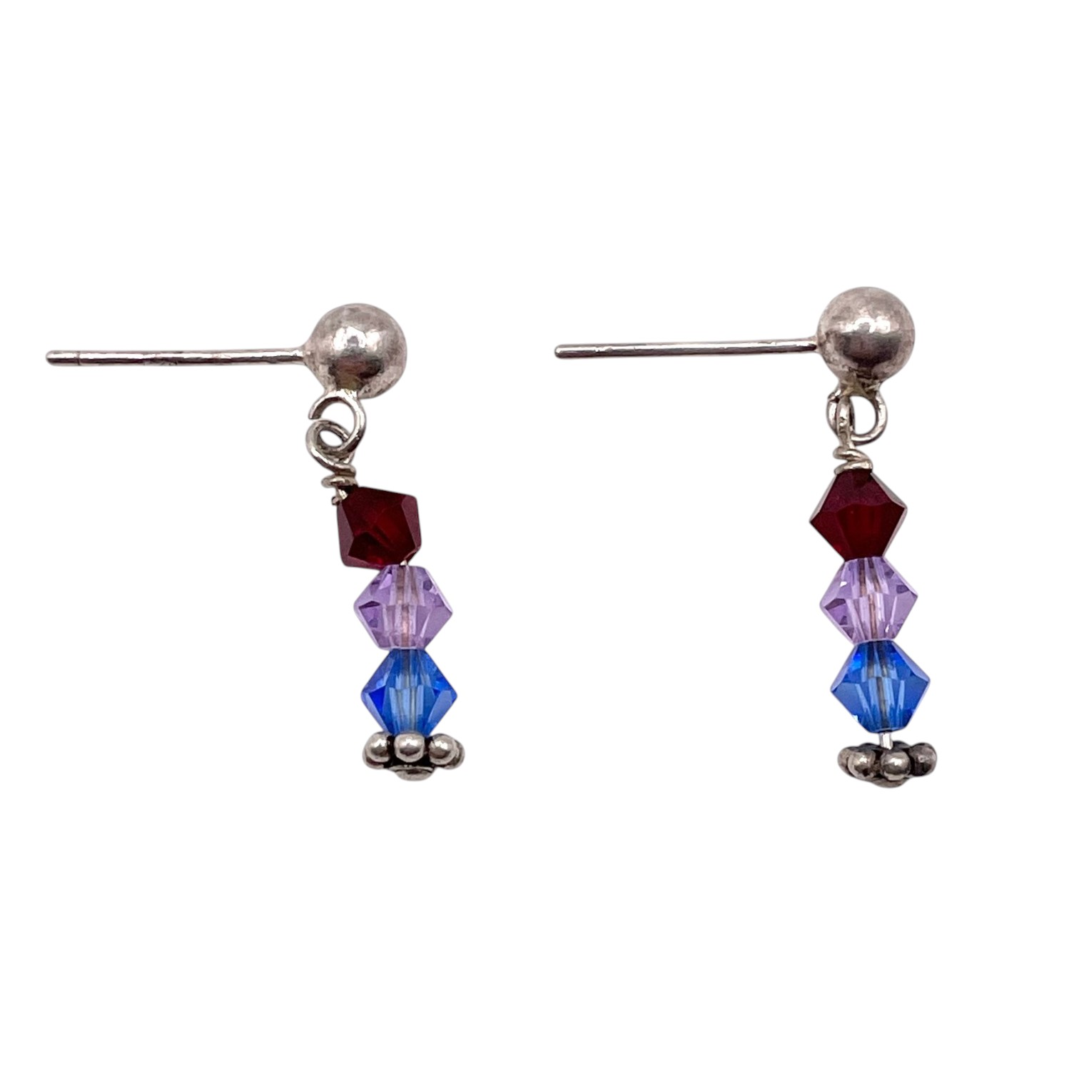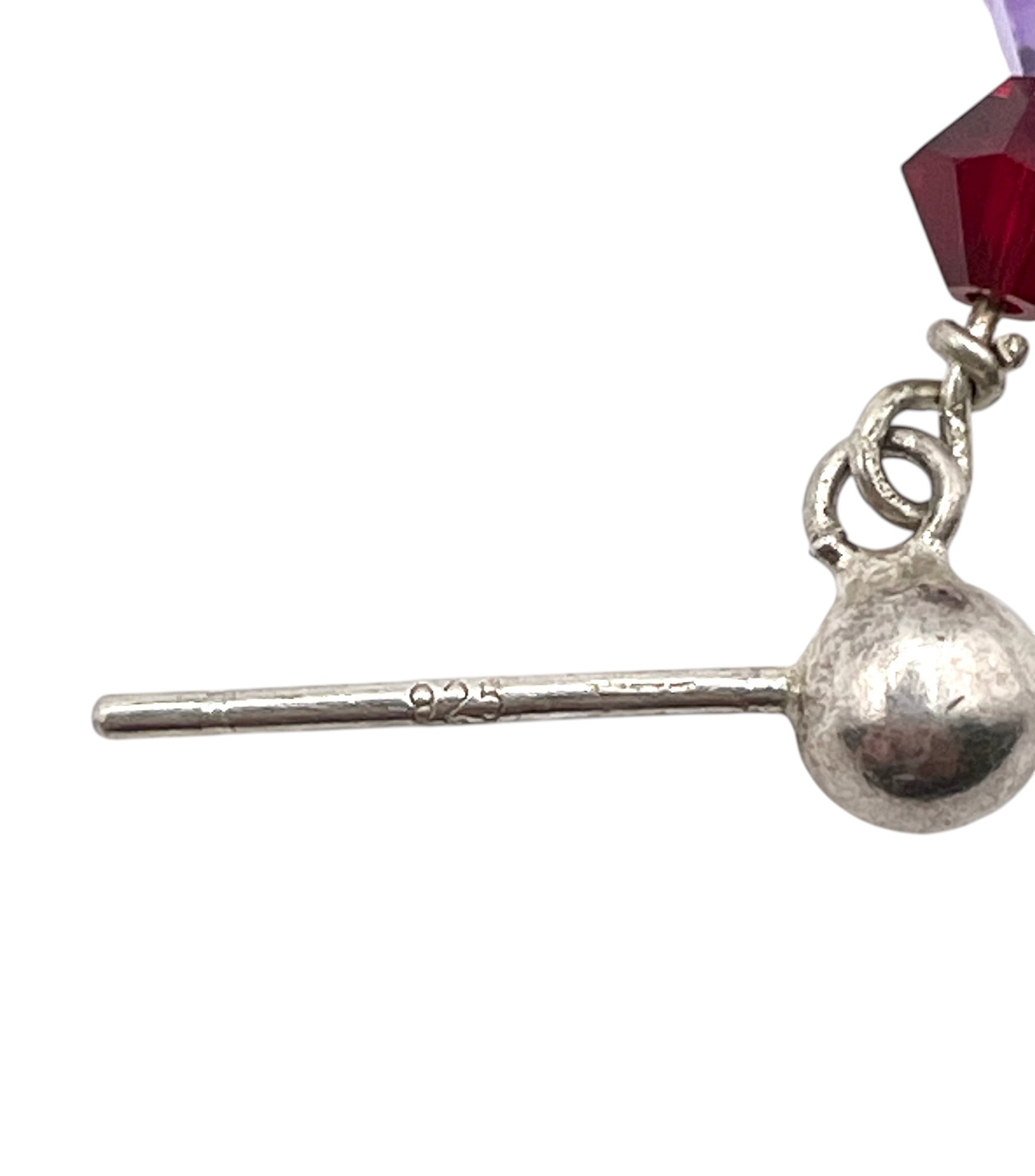 Sterling Dangle Earrings With Ruby Pink And Blue Rhinestones No Backs 1g