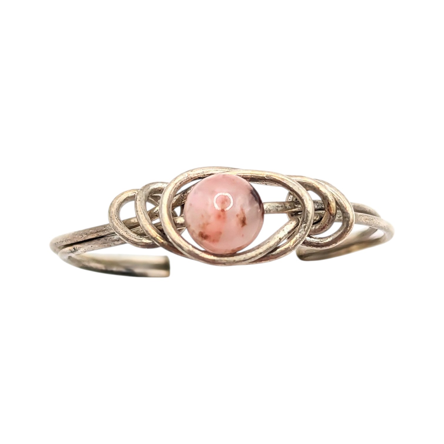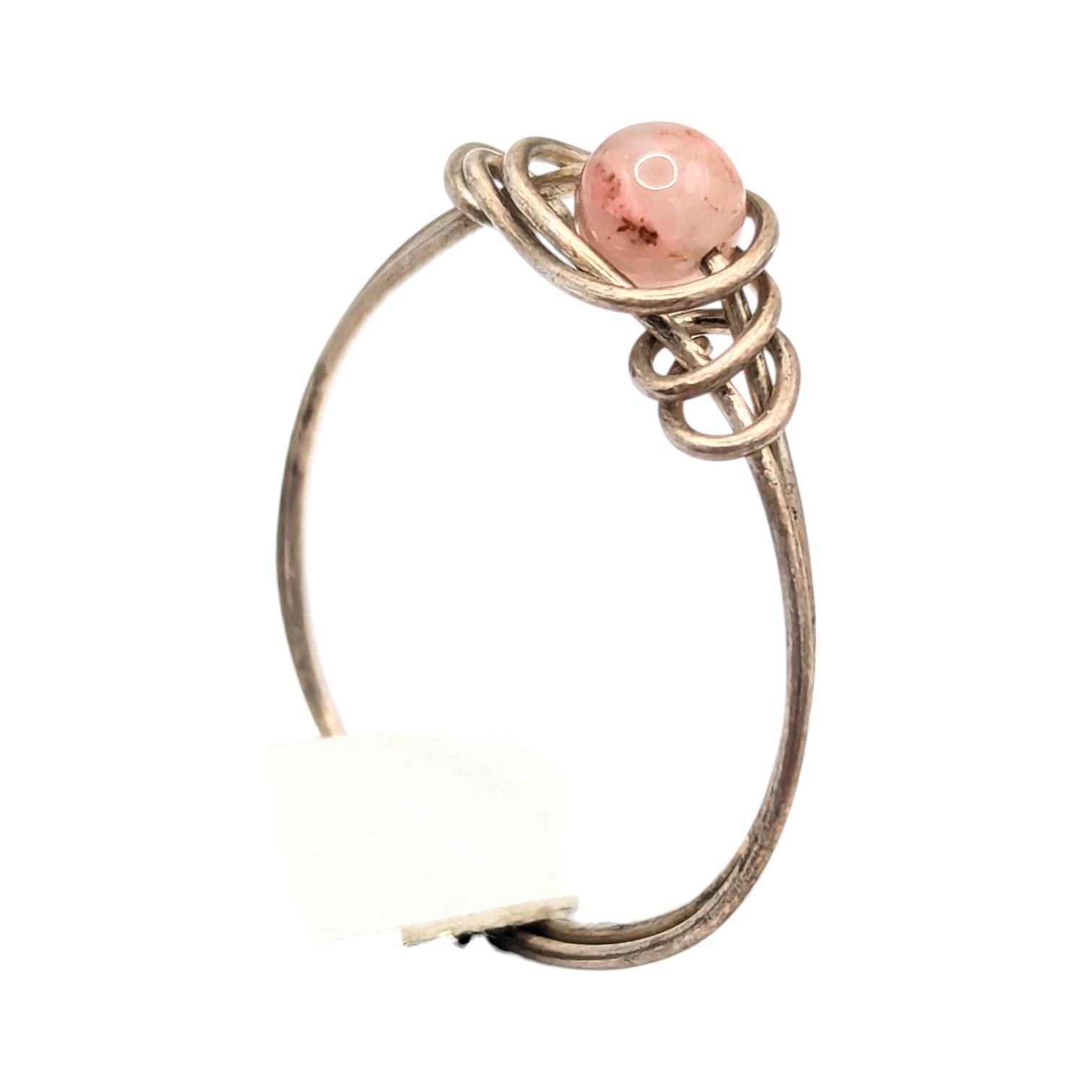 Sterling Wire Wrap, Pale Pink Bead, Ring Size 6.5, 0.7g