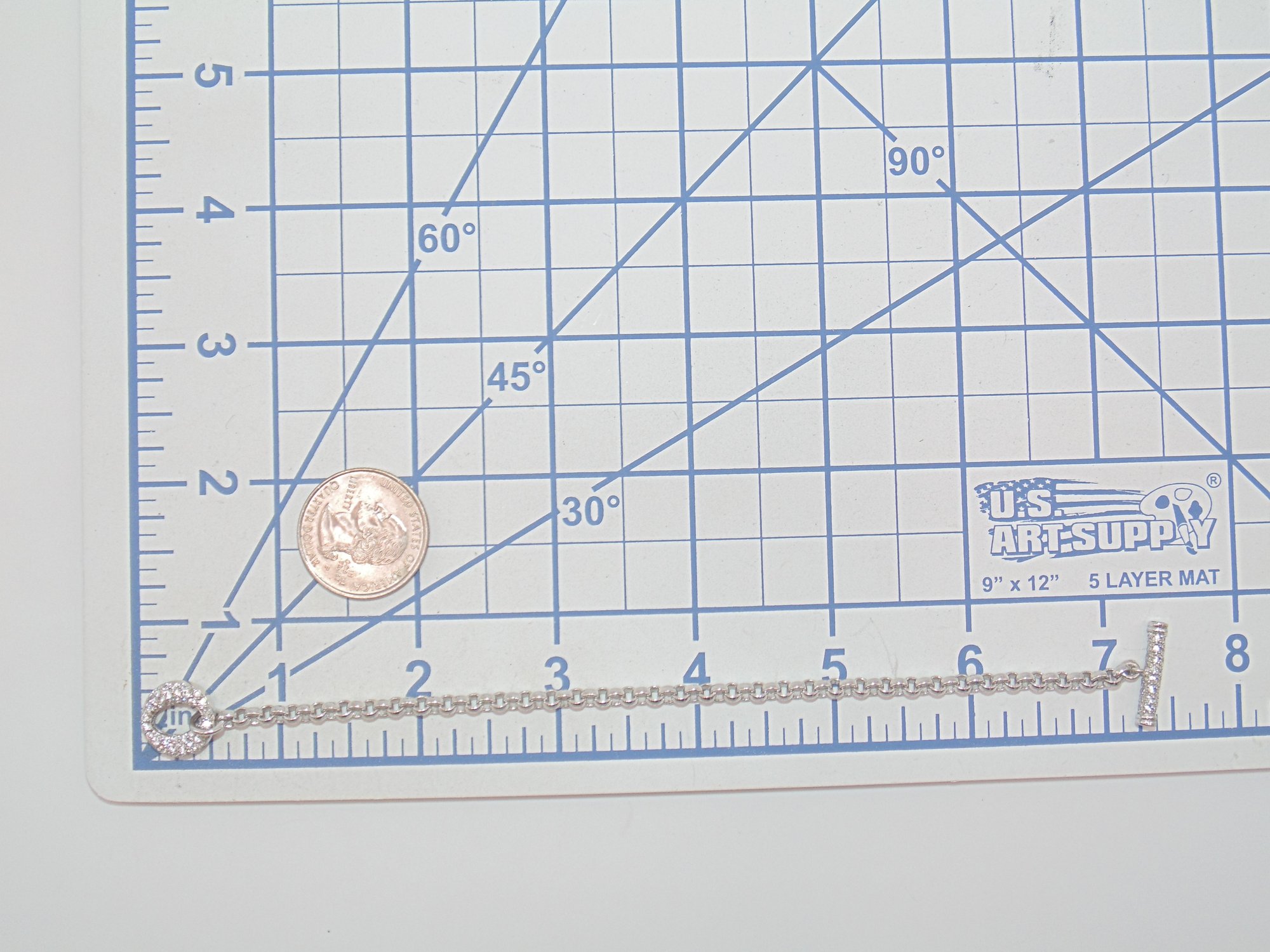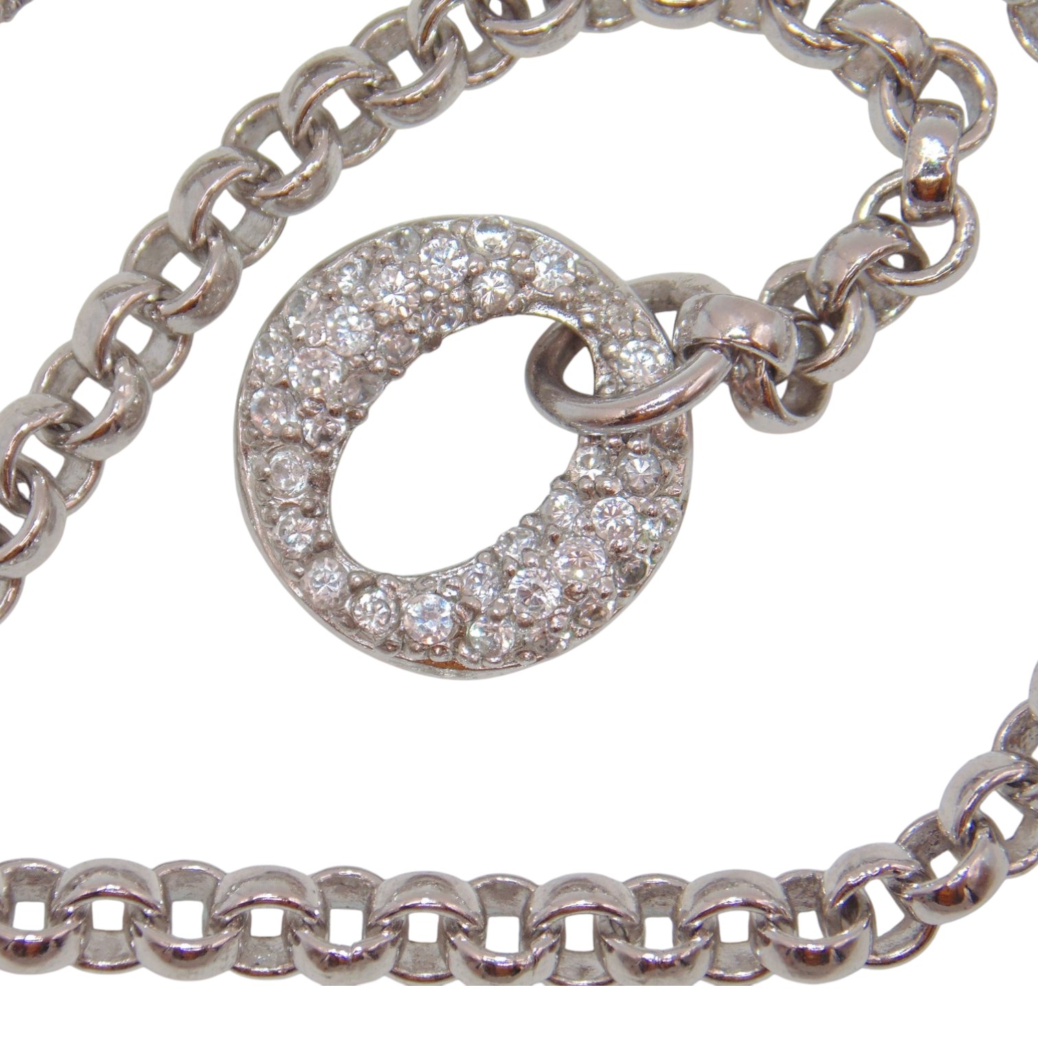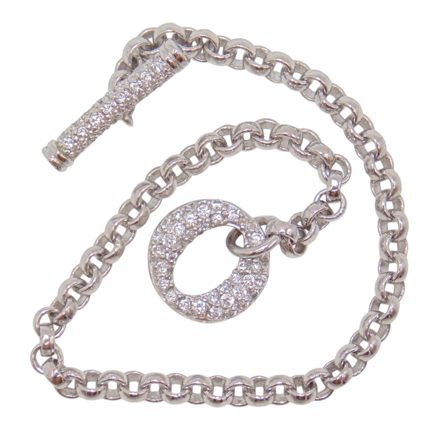 Sterling Clear Quartz Encrusted latch on Cable Chain Bracelet 9.8g