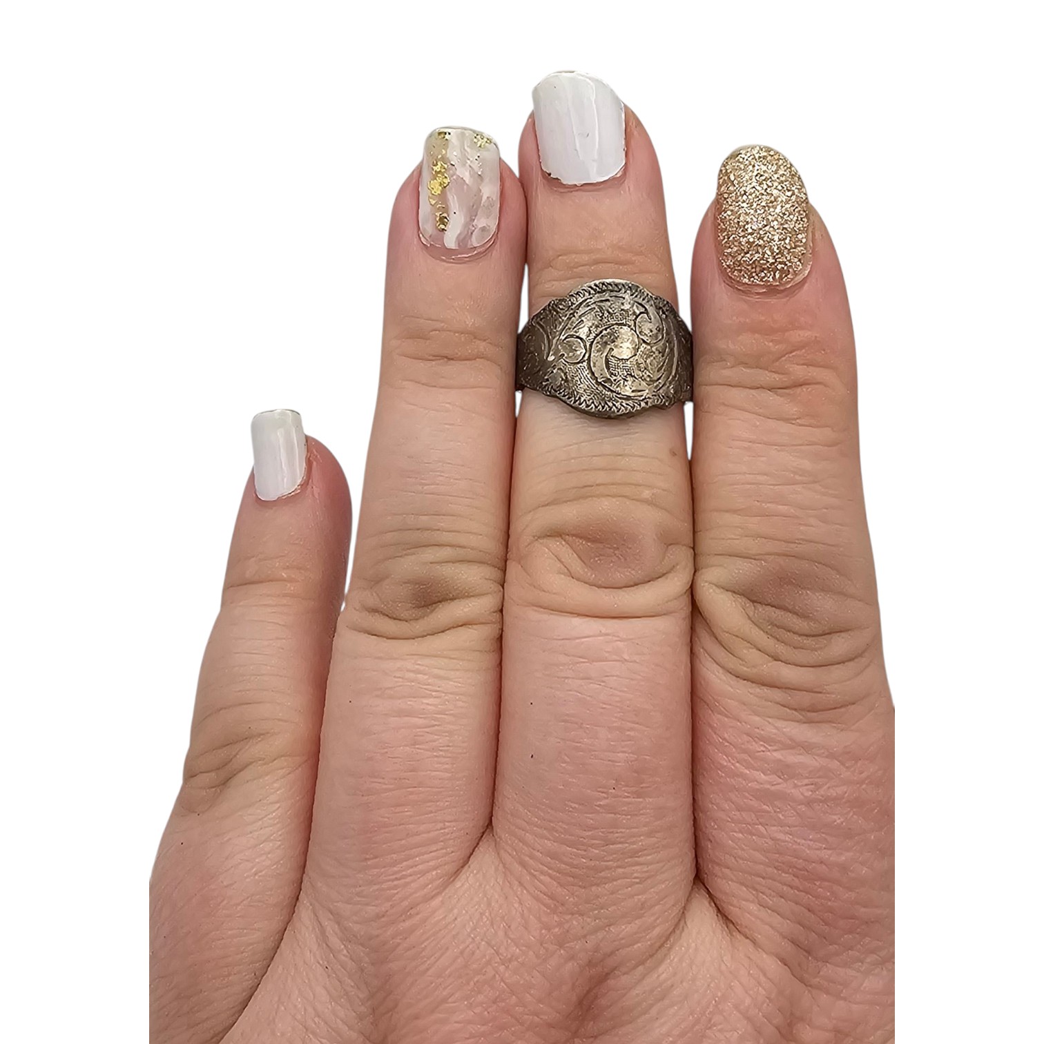 Siam Sterling Silver Etched Ring Size 6.75 4.1 G