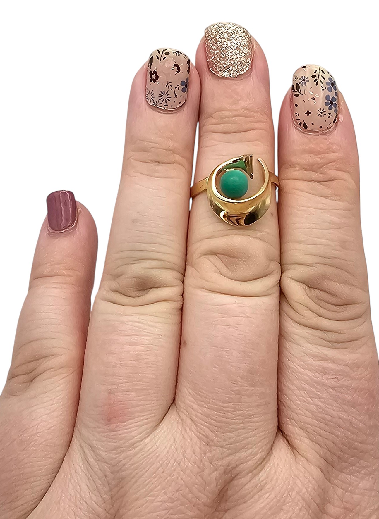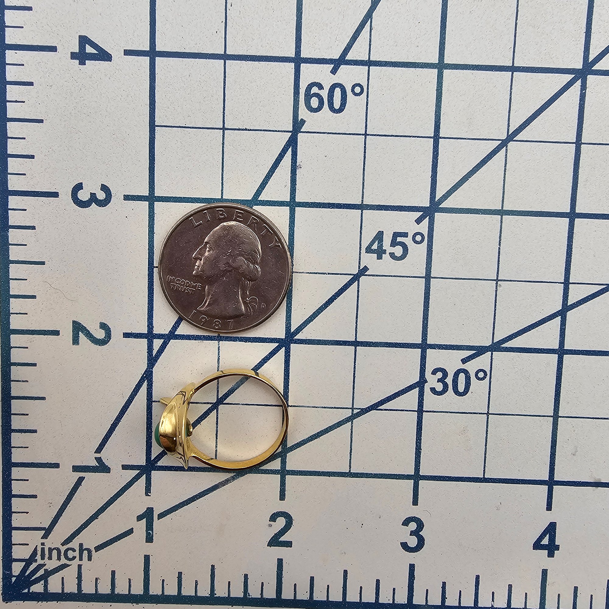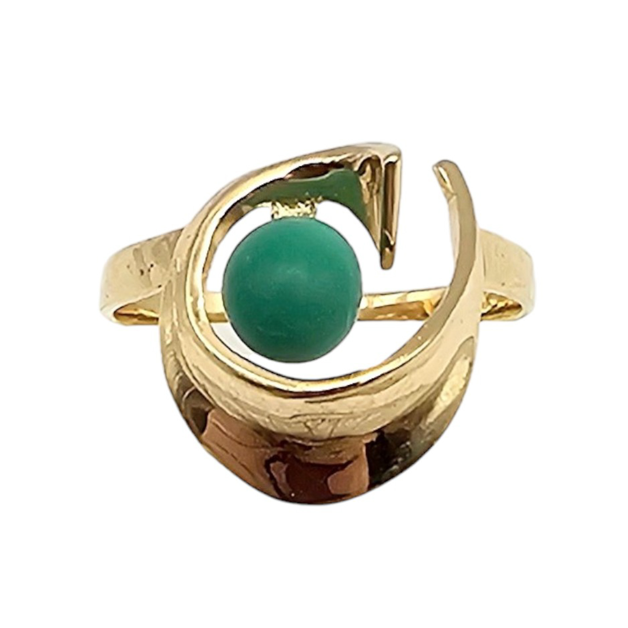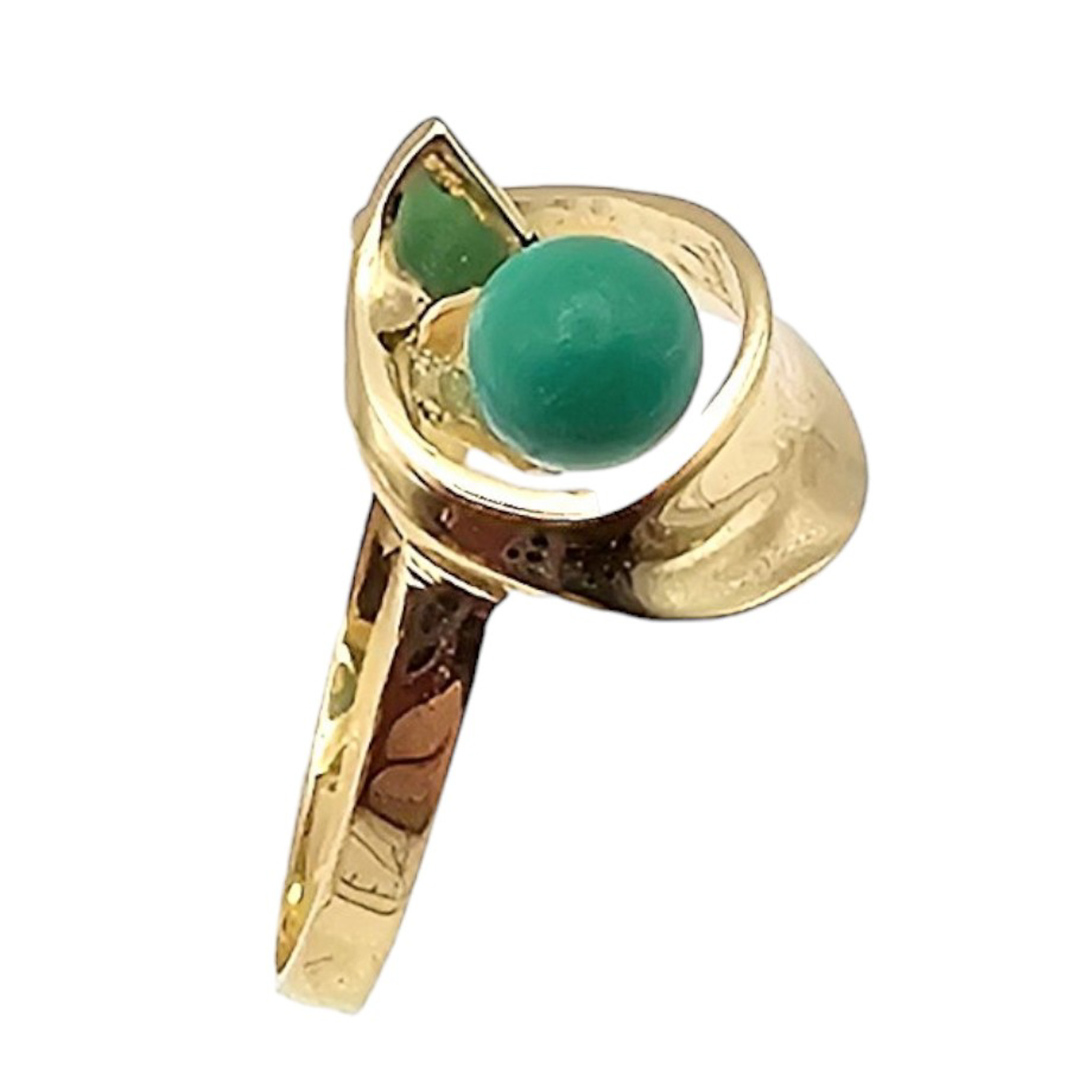 14K Gold Green ball Cocktail Ring Size 7.25, 2.7g